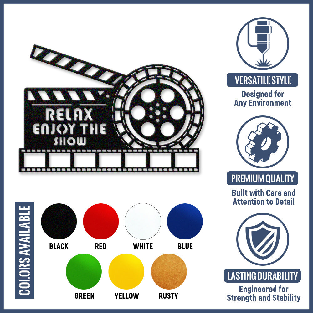 Relax Enjoy the Show Metal Wall Art – Home Theater Cinema Movie Room Decor