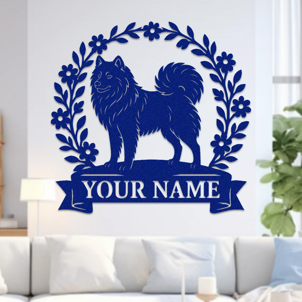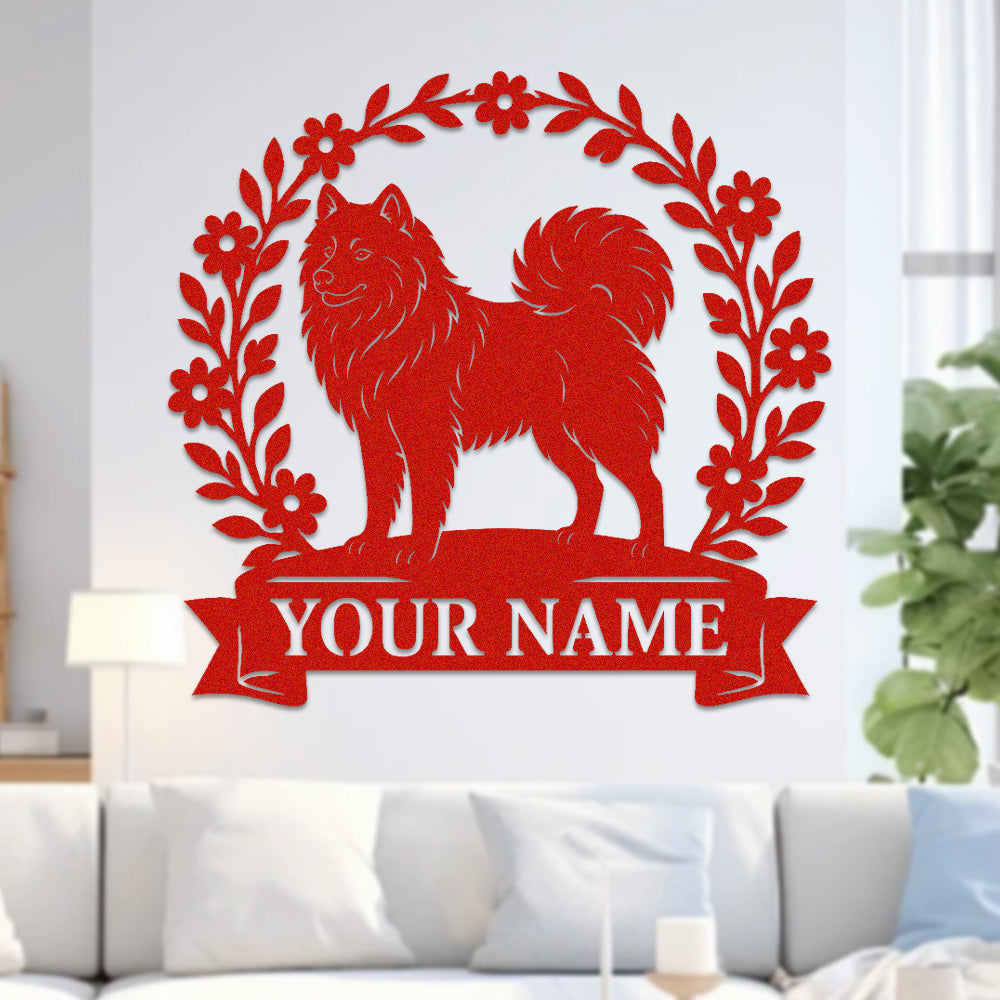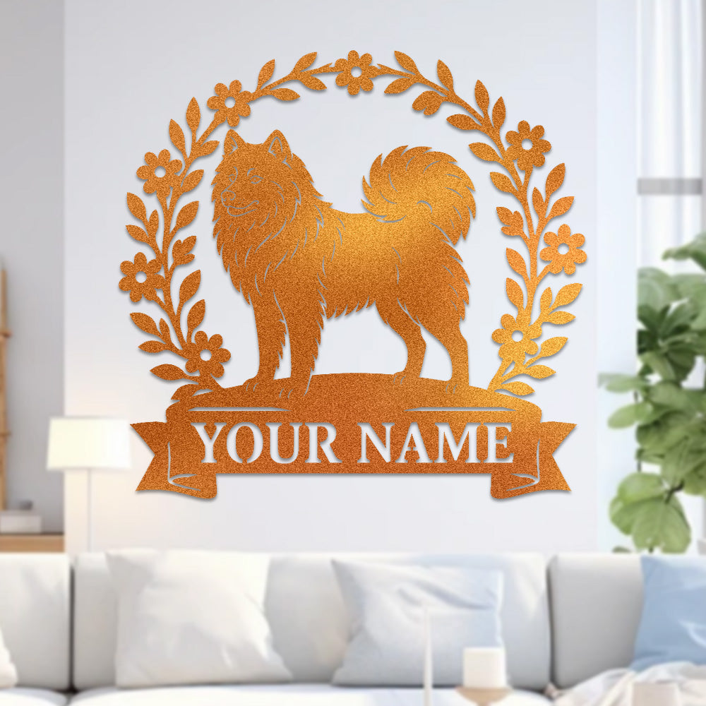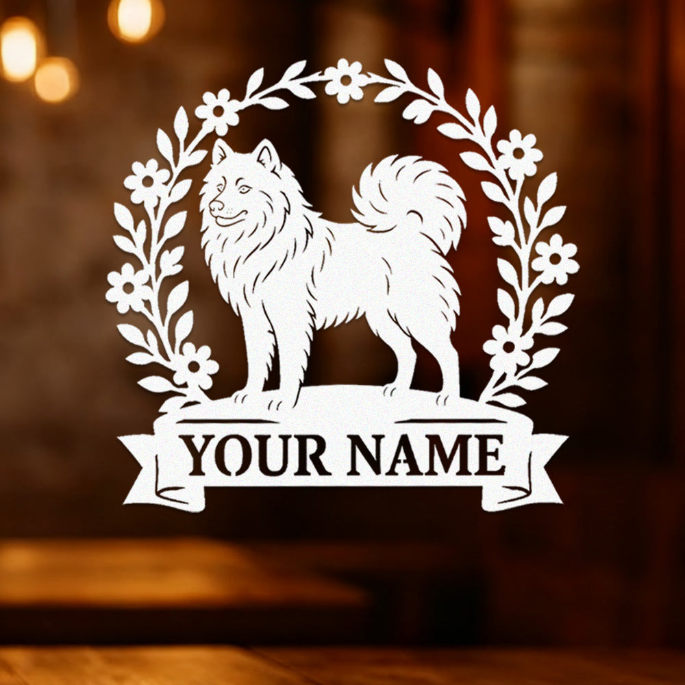 Samoyed Wreath Metal Wall Art Dog Lover Personalized Memorial Metal Sign