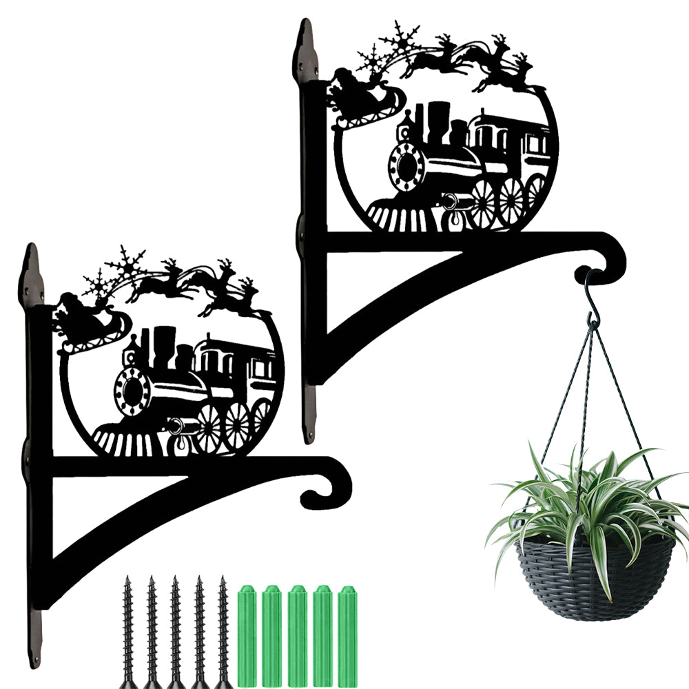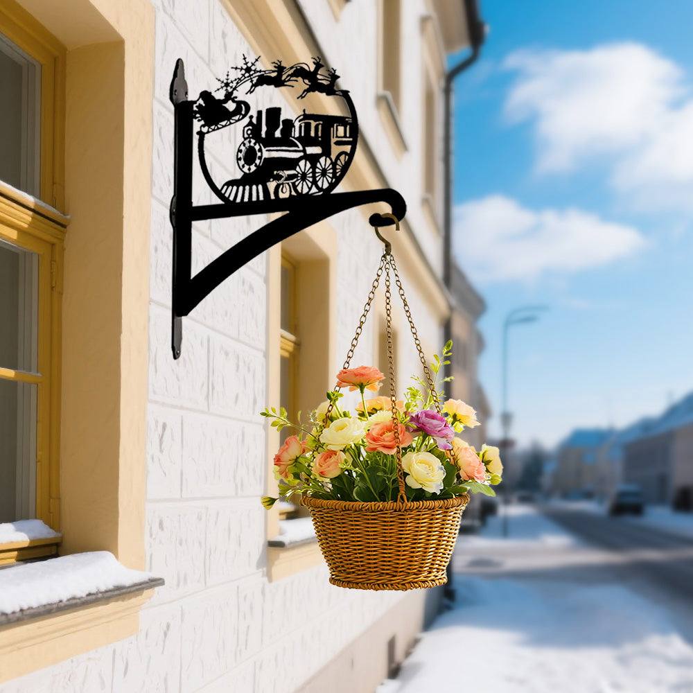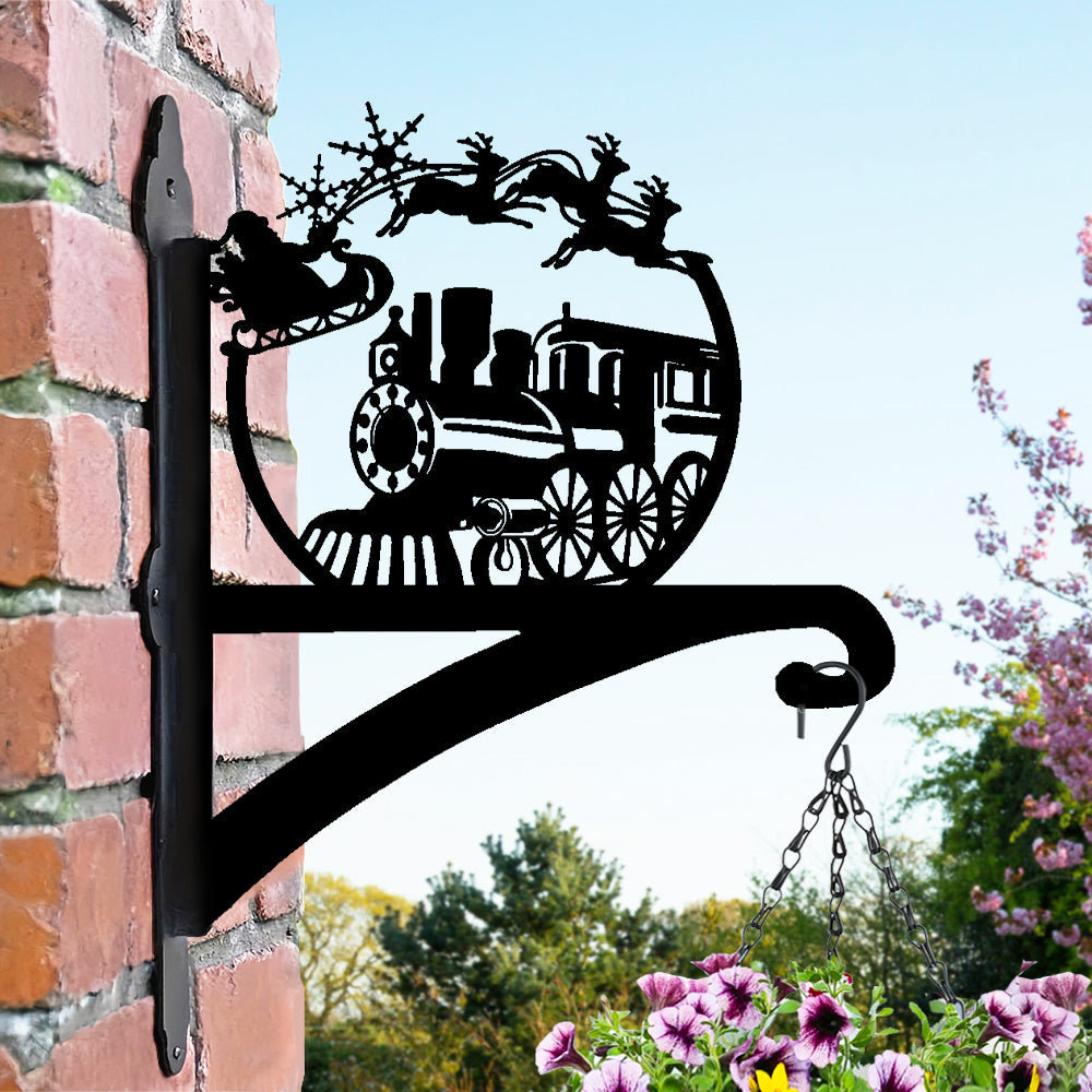 Santa Claus and Train Christmas Metal Hanging Bracket Plant Stand