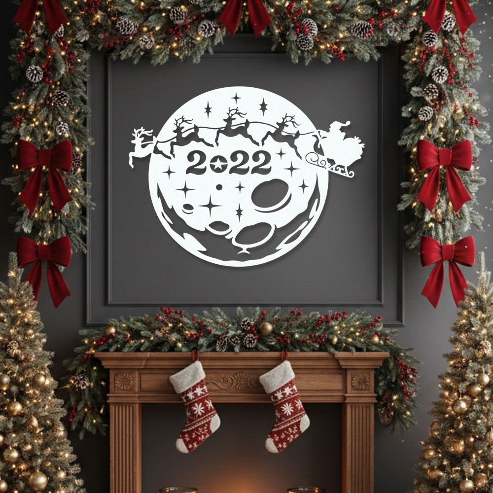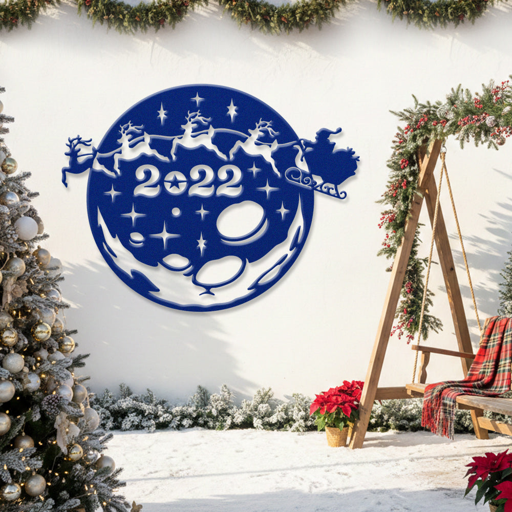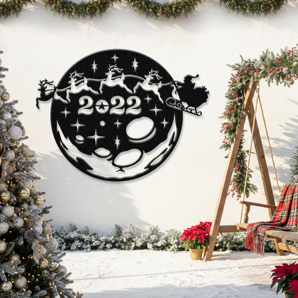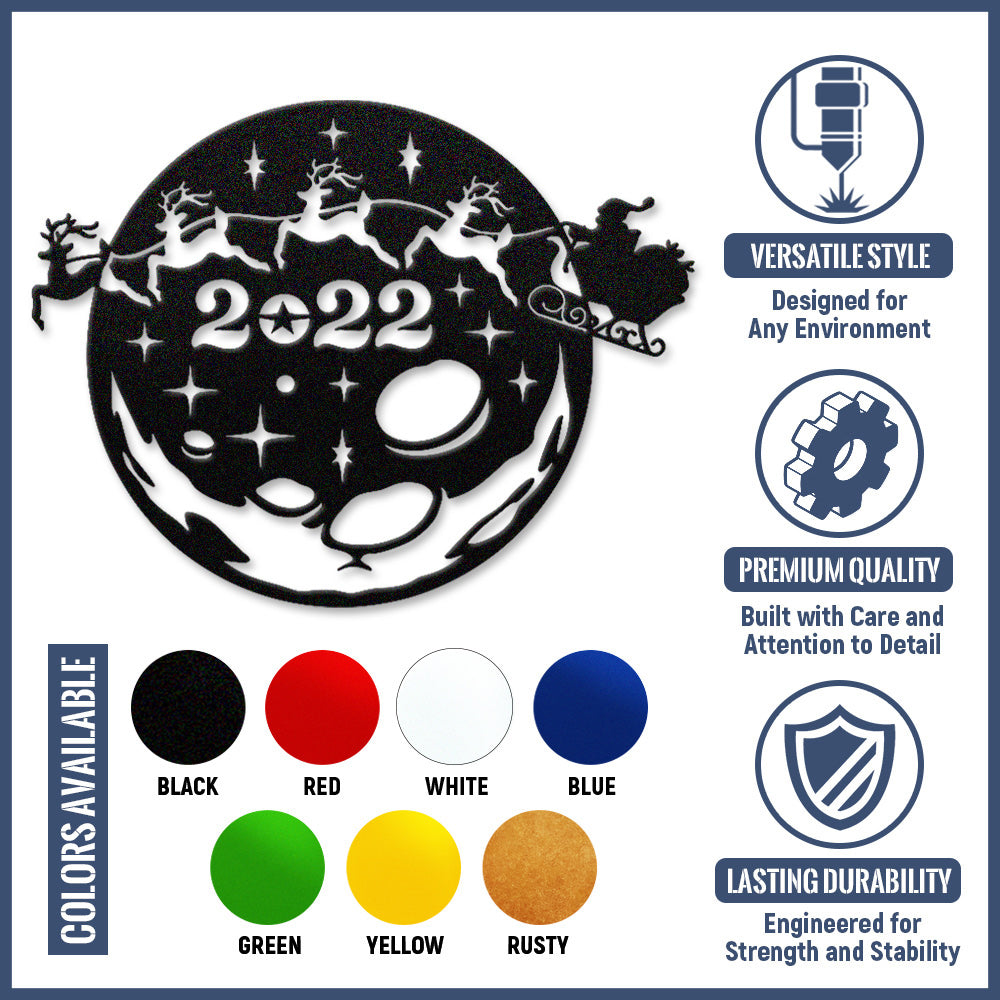 Santa Sleigh Christmas Metal Wall Art – Reindeer Night Sky Holiday Metal Decor Sign