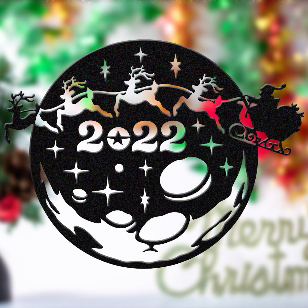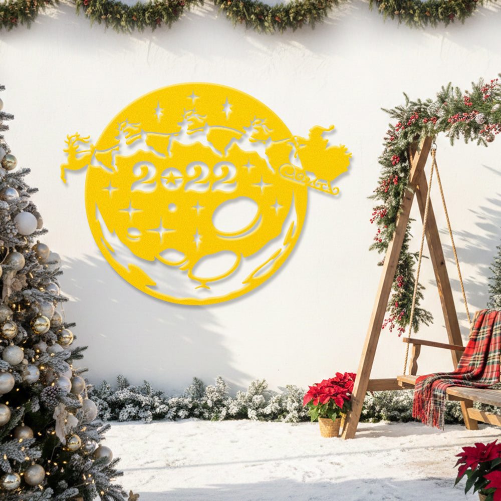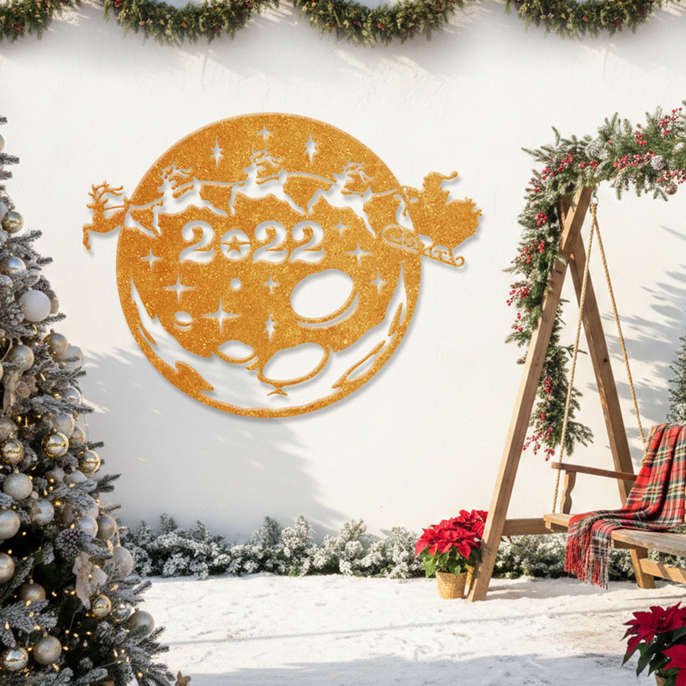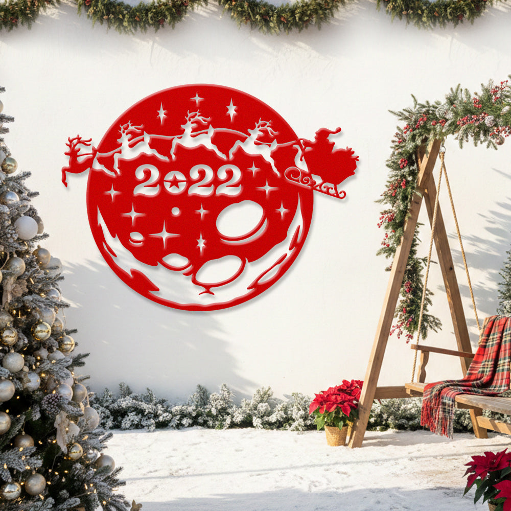Santa Sleigh Christmas Metal Wall Art – Reindeer Night Sky Holiday Metal Decor Sign
