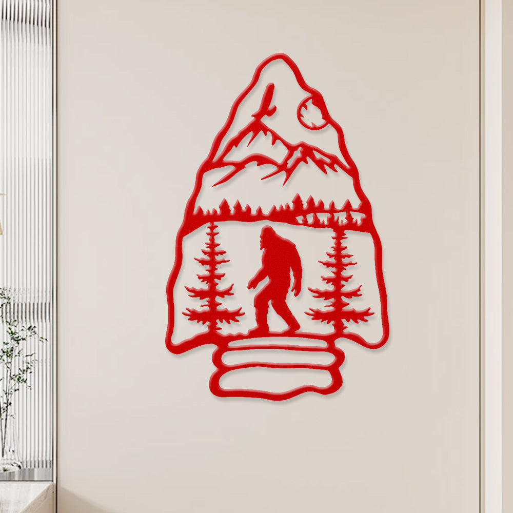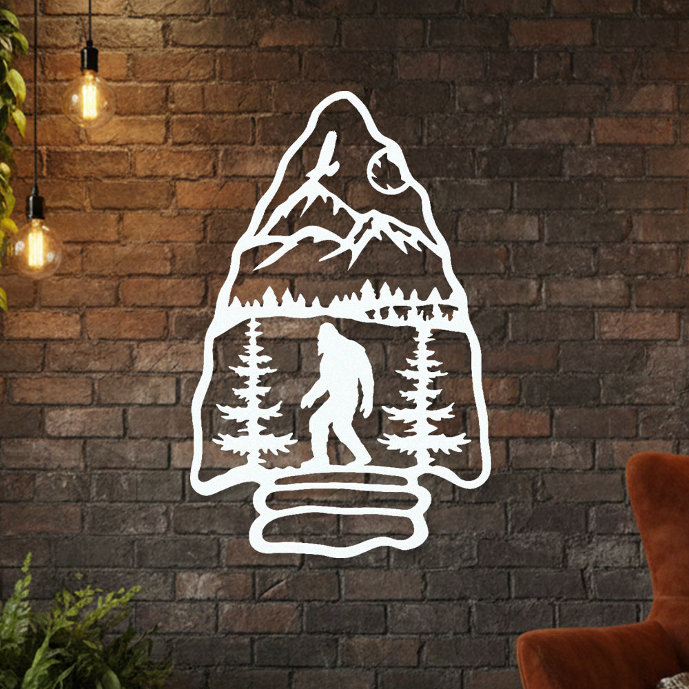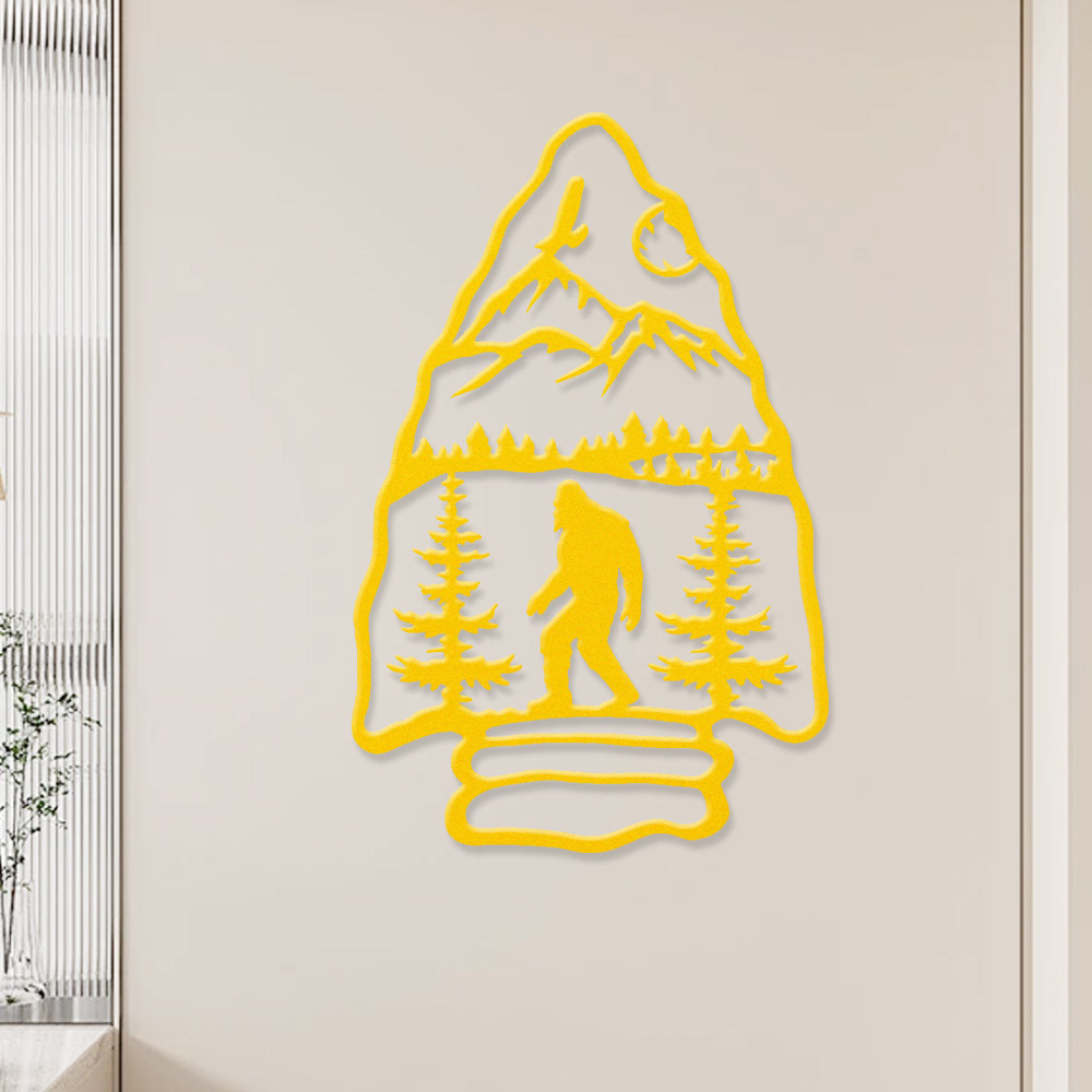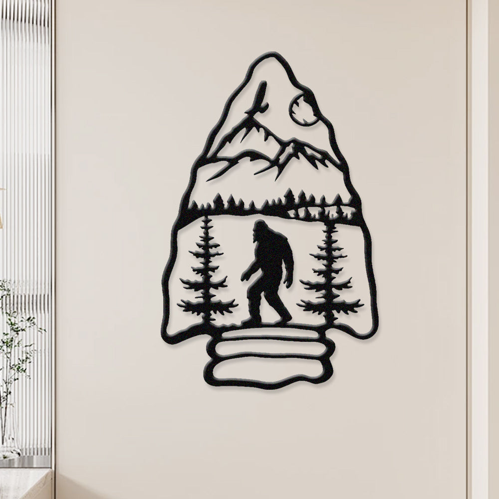 Sasquatch Mountain Arrow Metal Wall Art – Outdoor Forest Bigfoot Decor