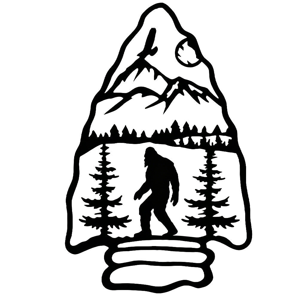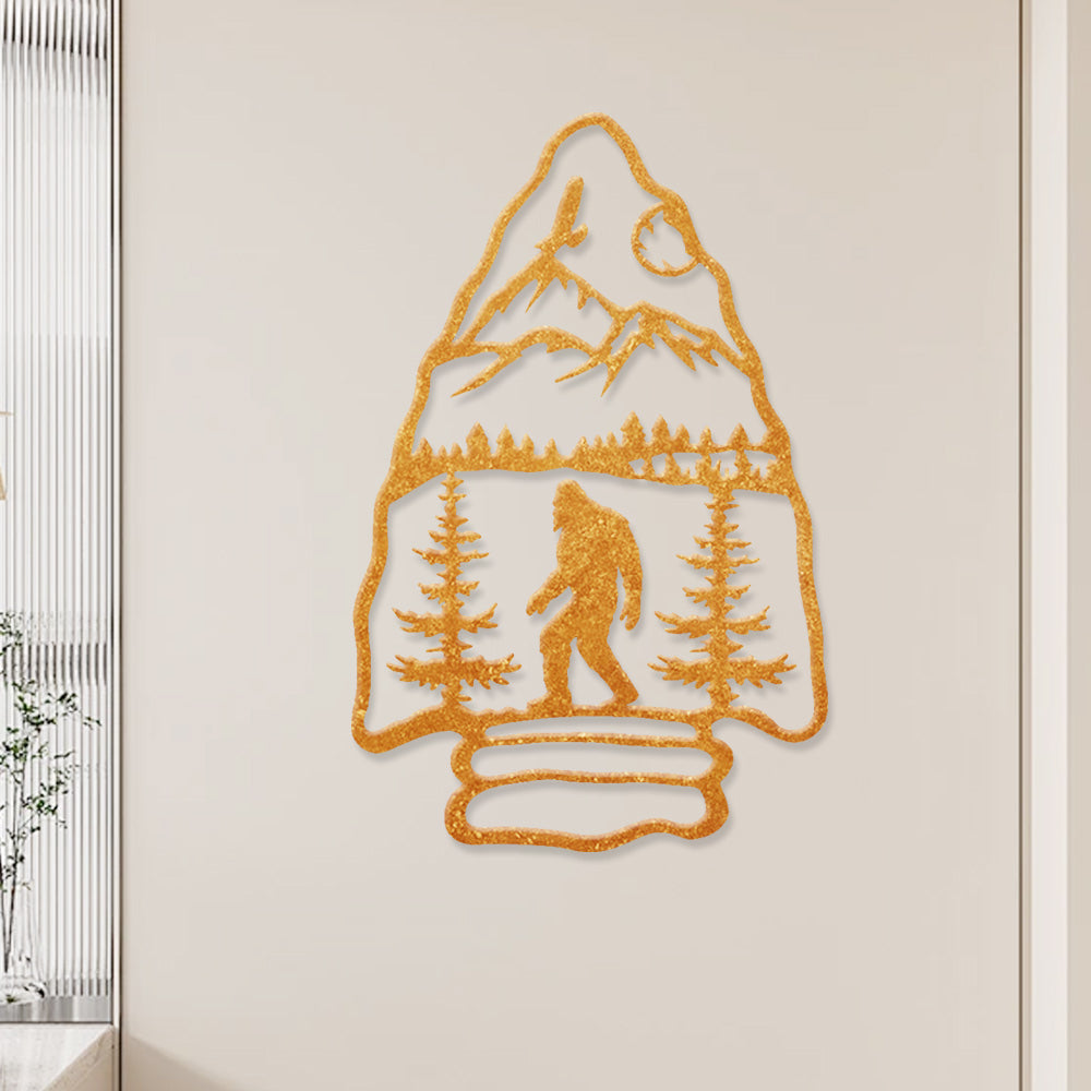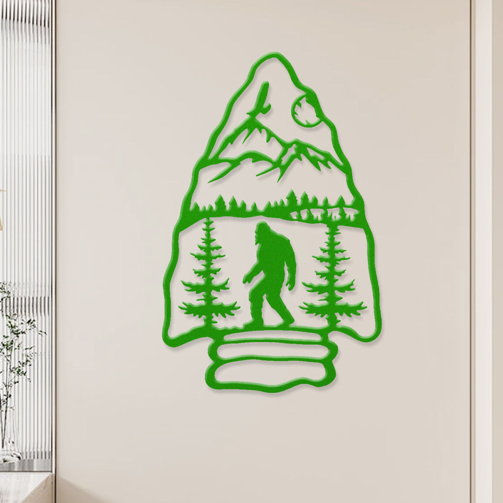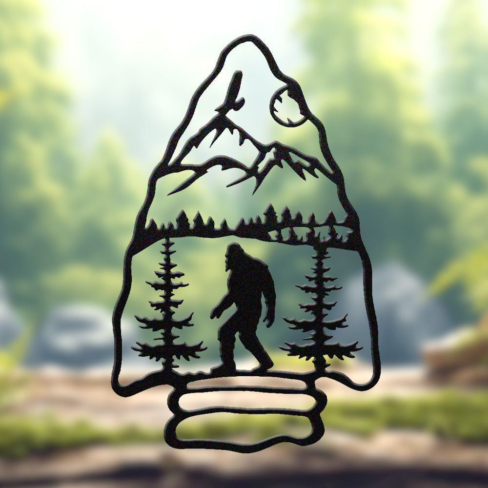 Sasquatch Mountain Arrow Metal Wall Art – Outdoor Forest Bigfoot Decor