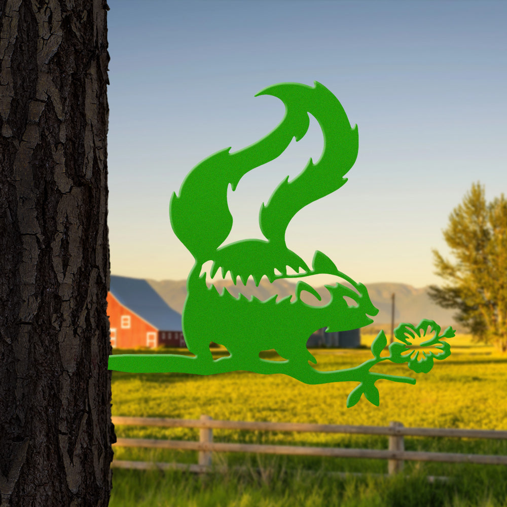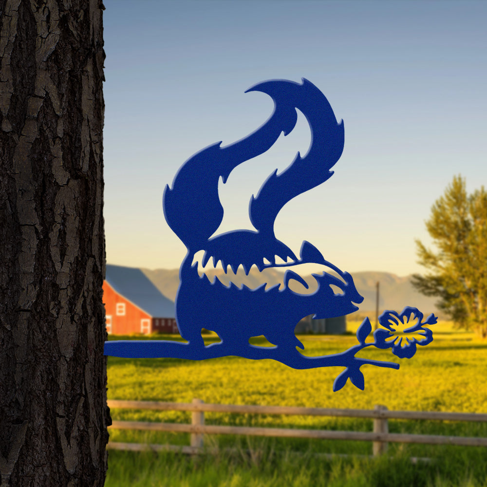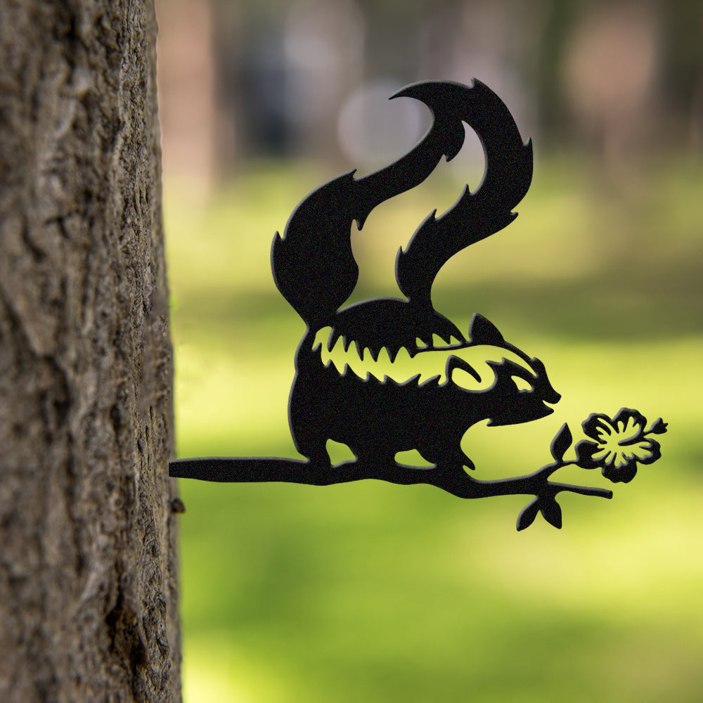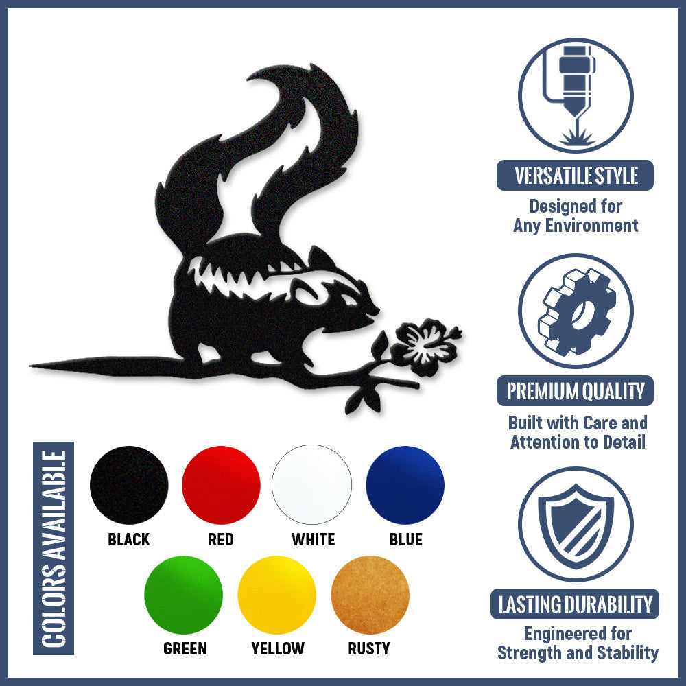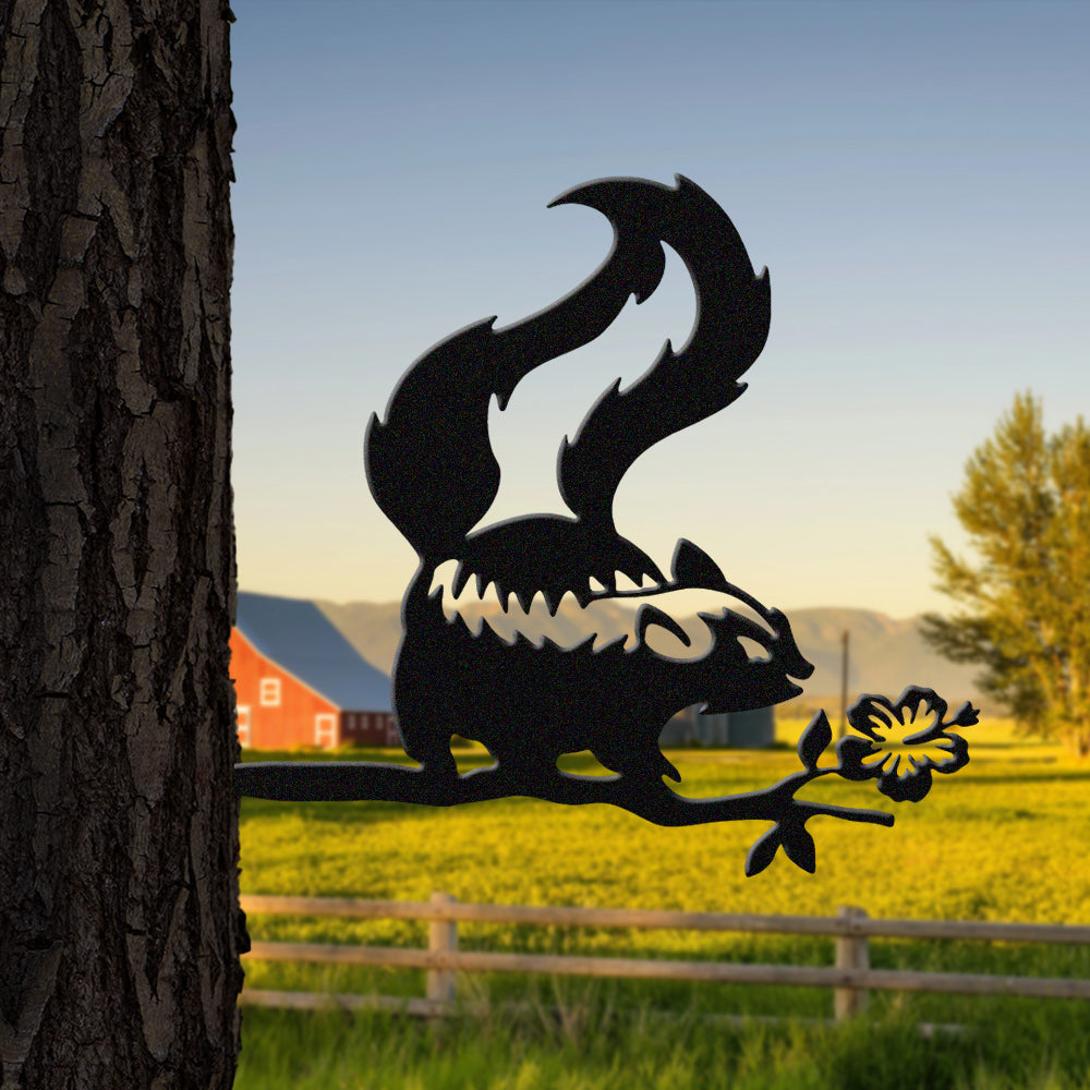 Skunk and Flower Metal Wall Art – Rustic Wildlife Iron Metal Decor