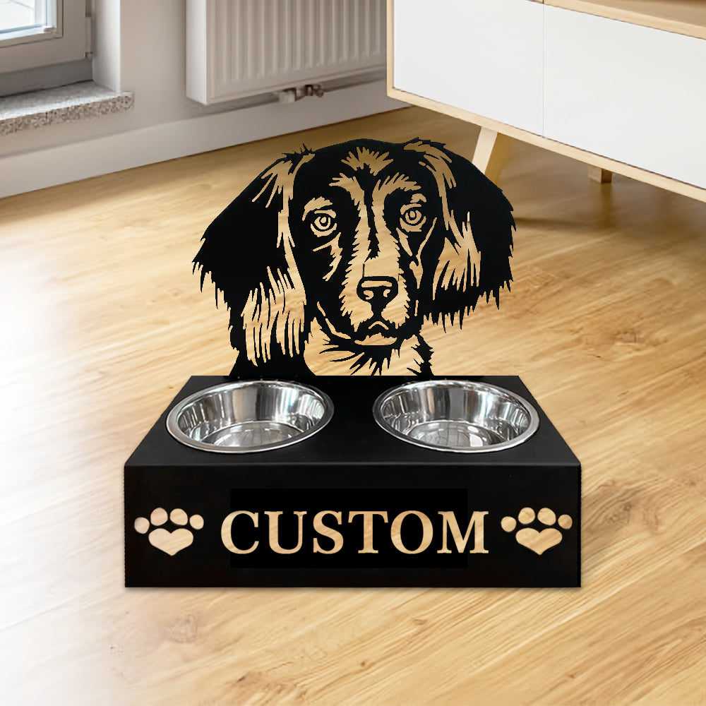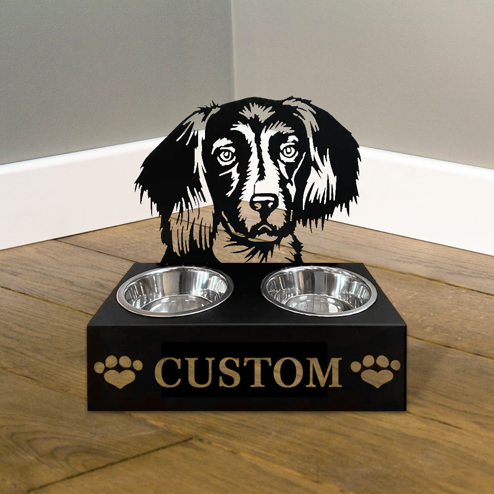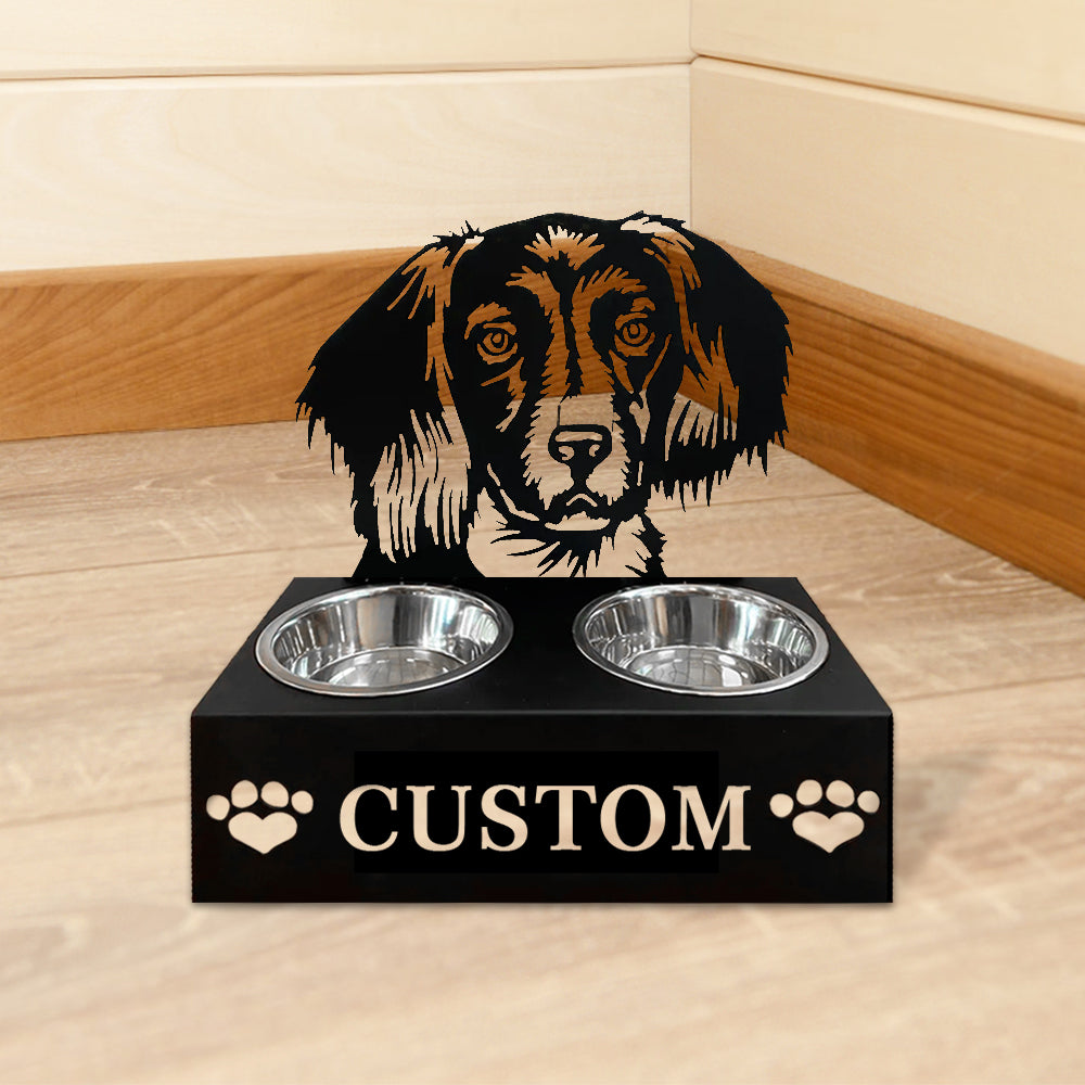 Small Munsterlander Personalized Name Pet Food Bowl Holder