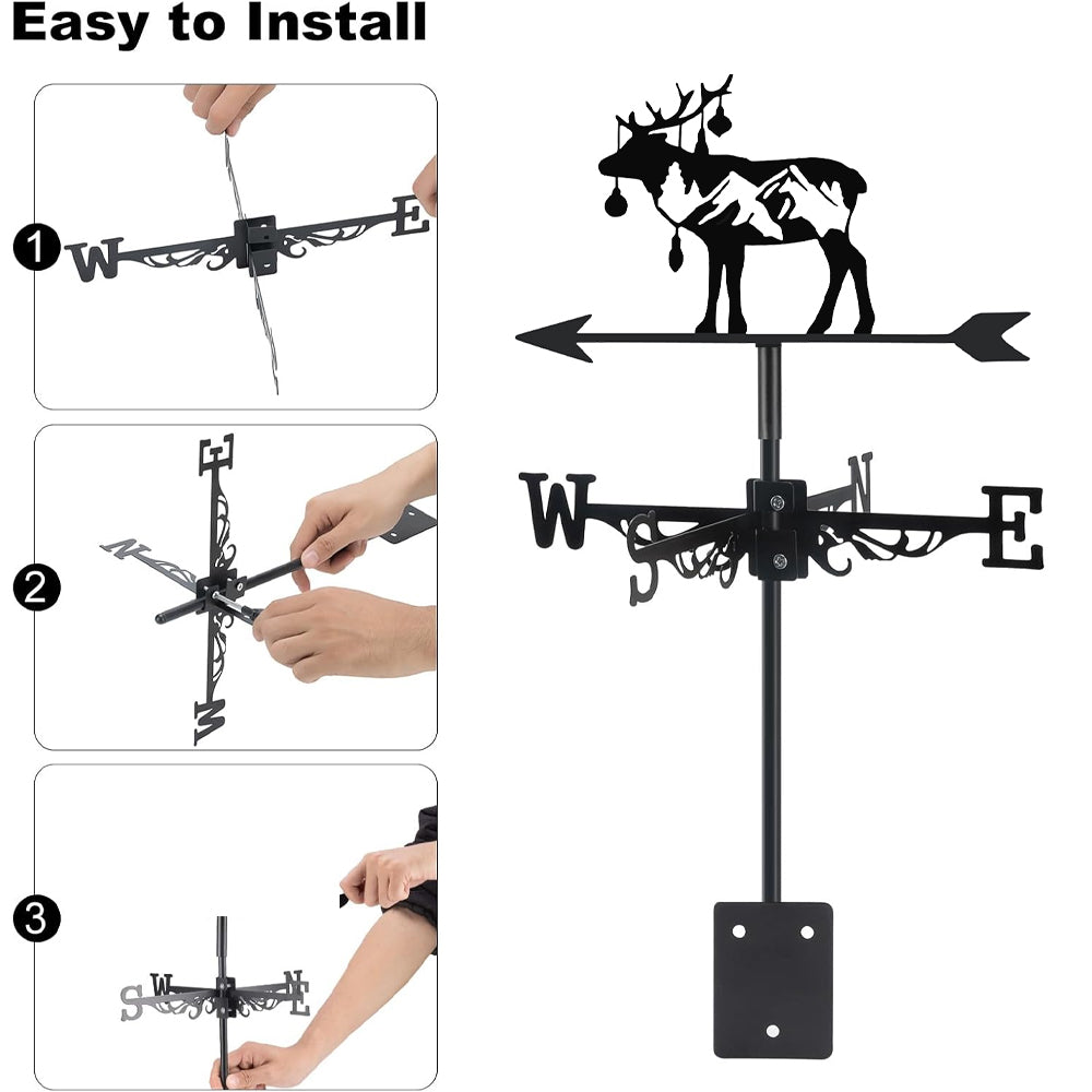 💕Creative design: This Weathervane is made of high-quality Stainless Steel. With stylish straight lines and satin black finishes. This anti-rust iron weather vane is decorated with exquisite patterns.