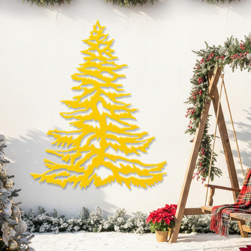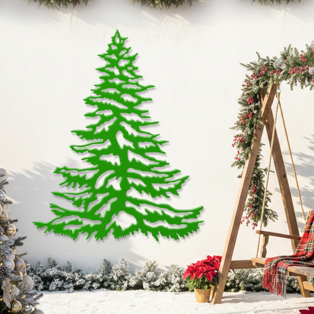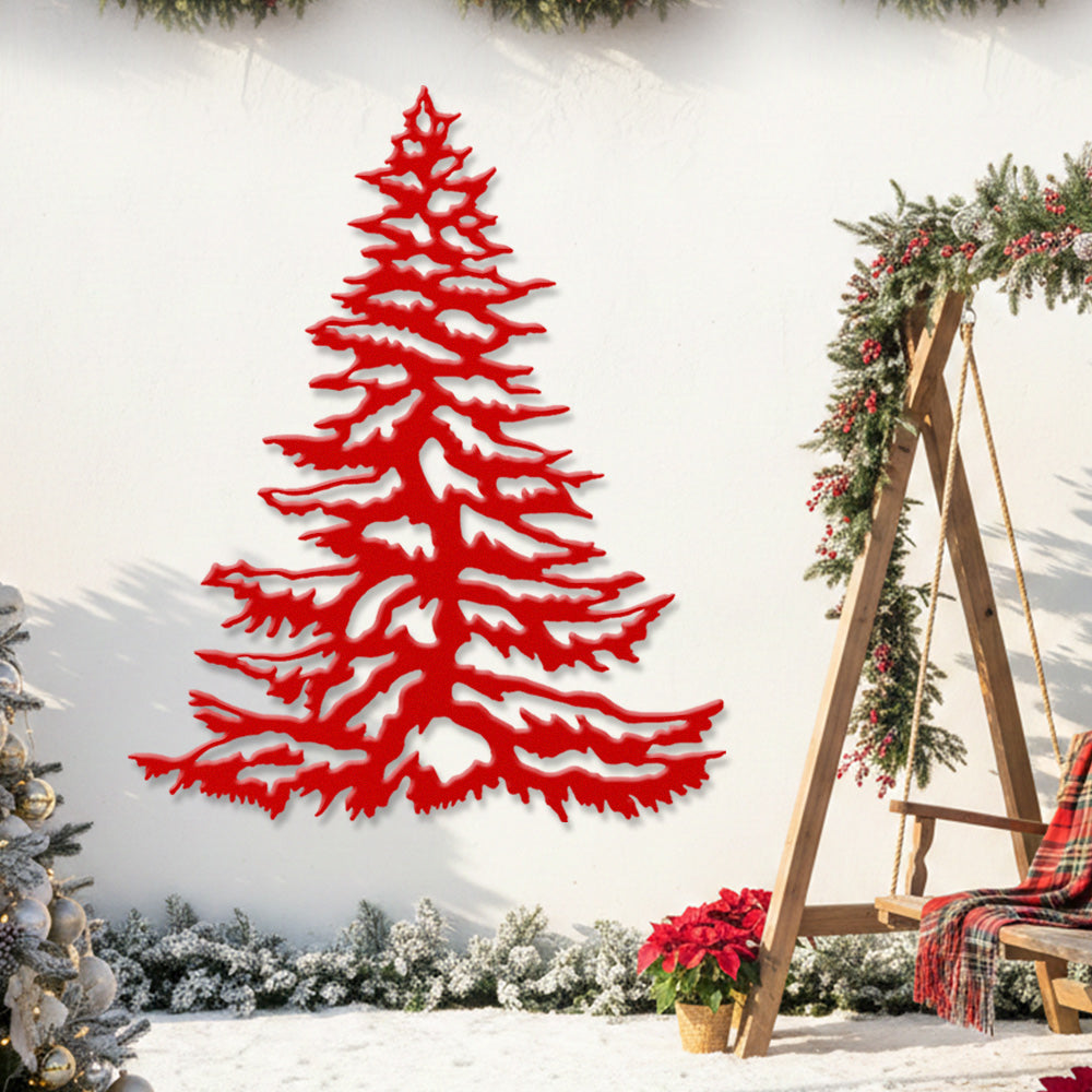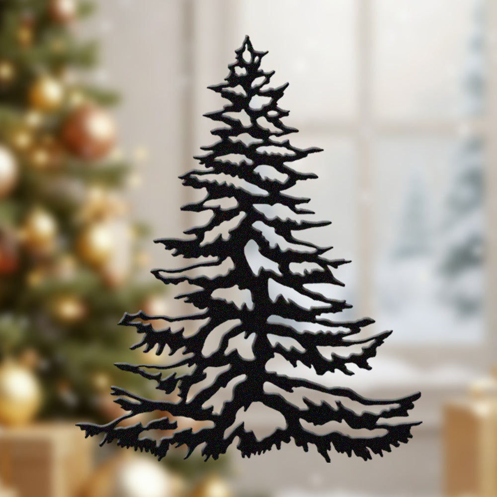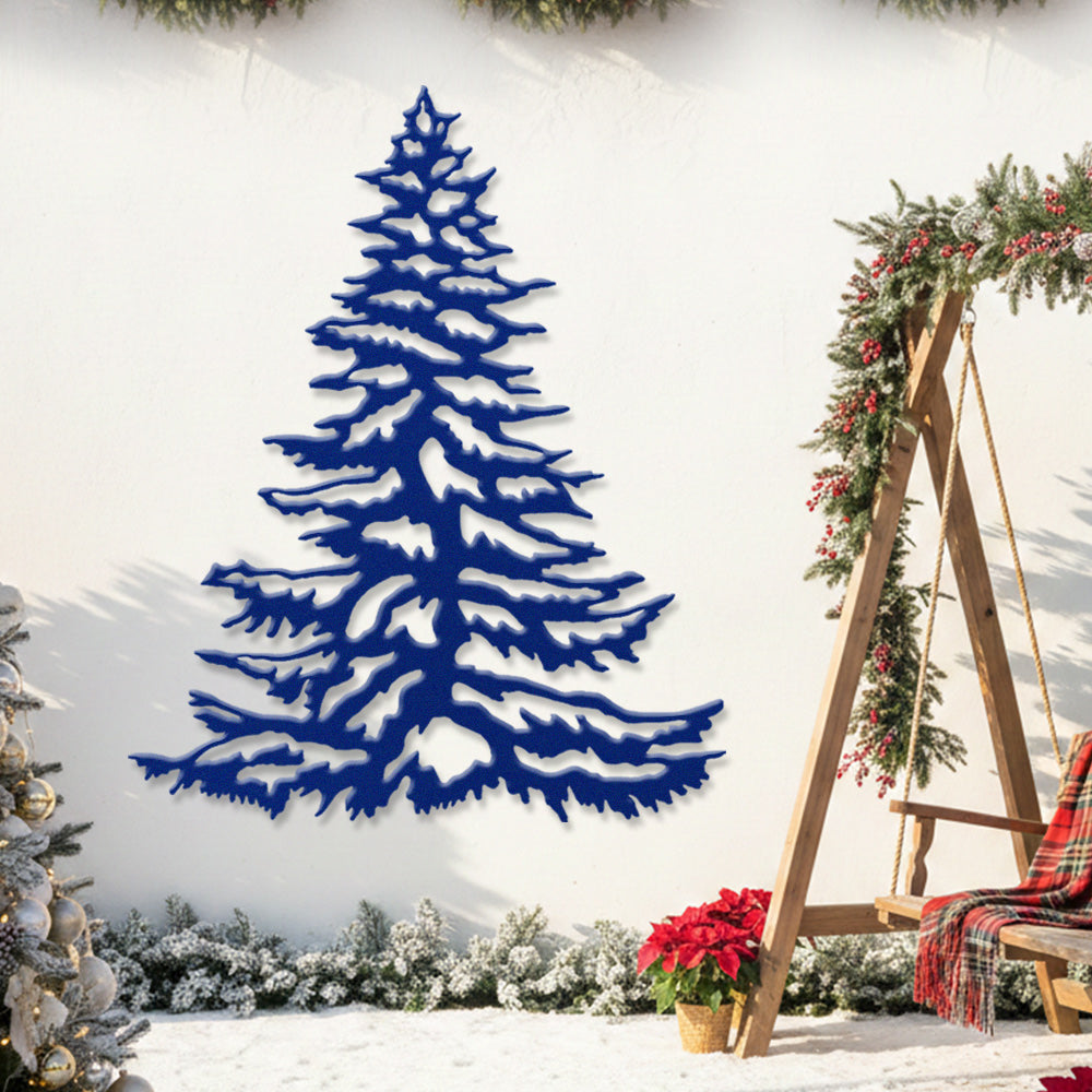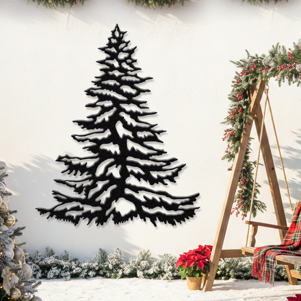 Snowy Pine Tree Metal Wall Art – Winter Christmas Tree Metal Decor for Home