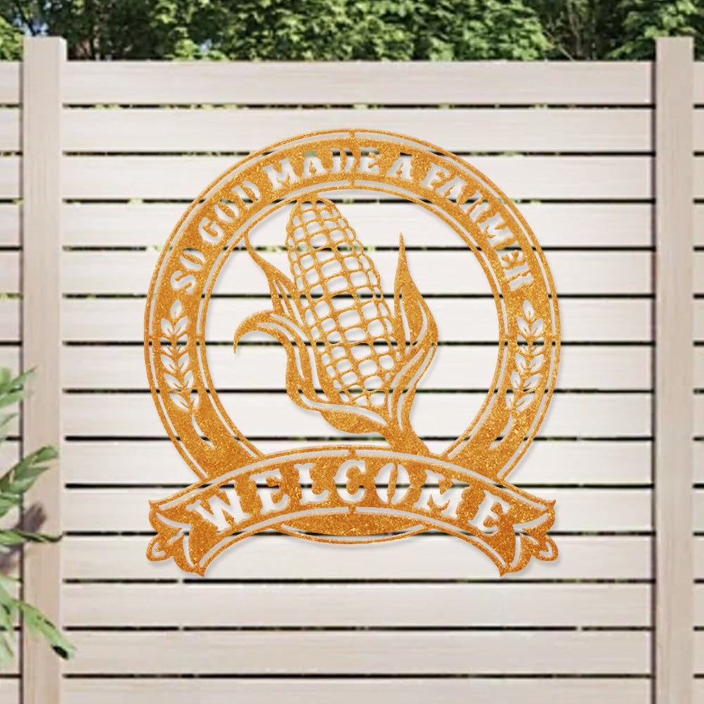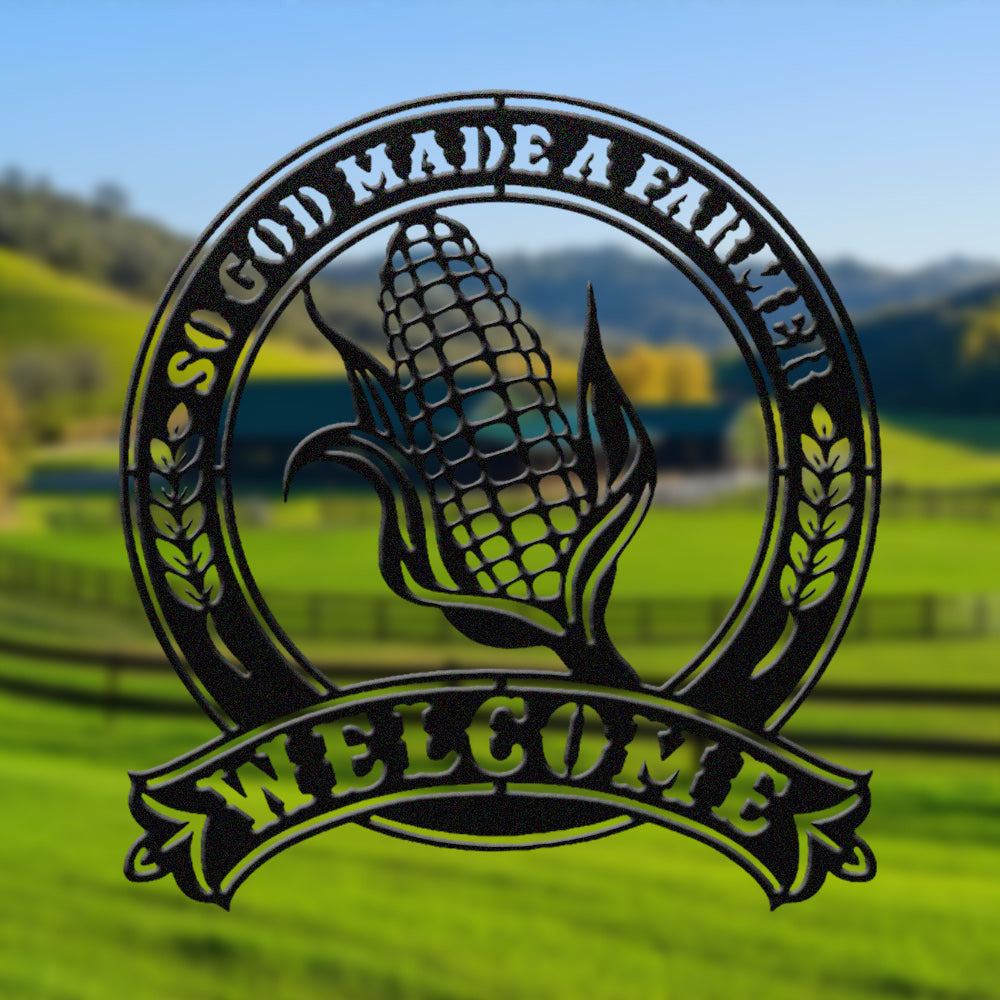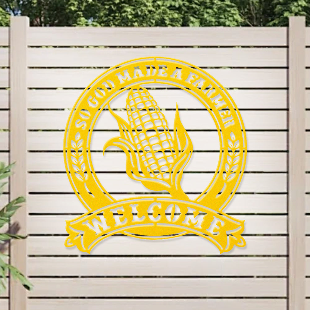 So God Made a Farmer Corn Welcome Metal Wall Art Sign
