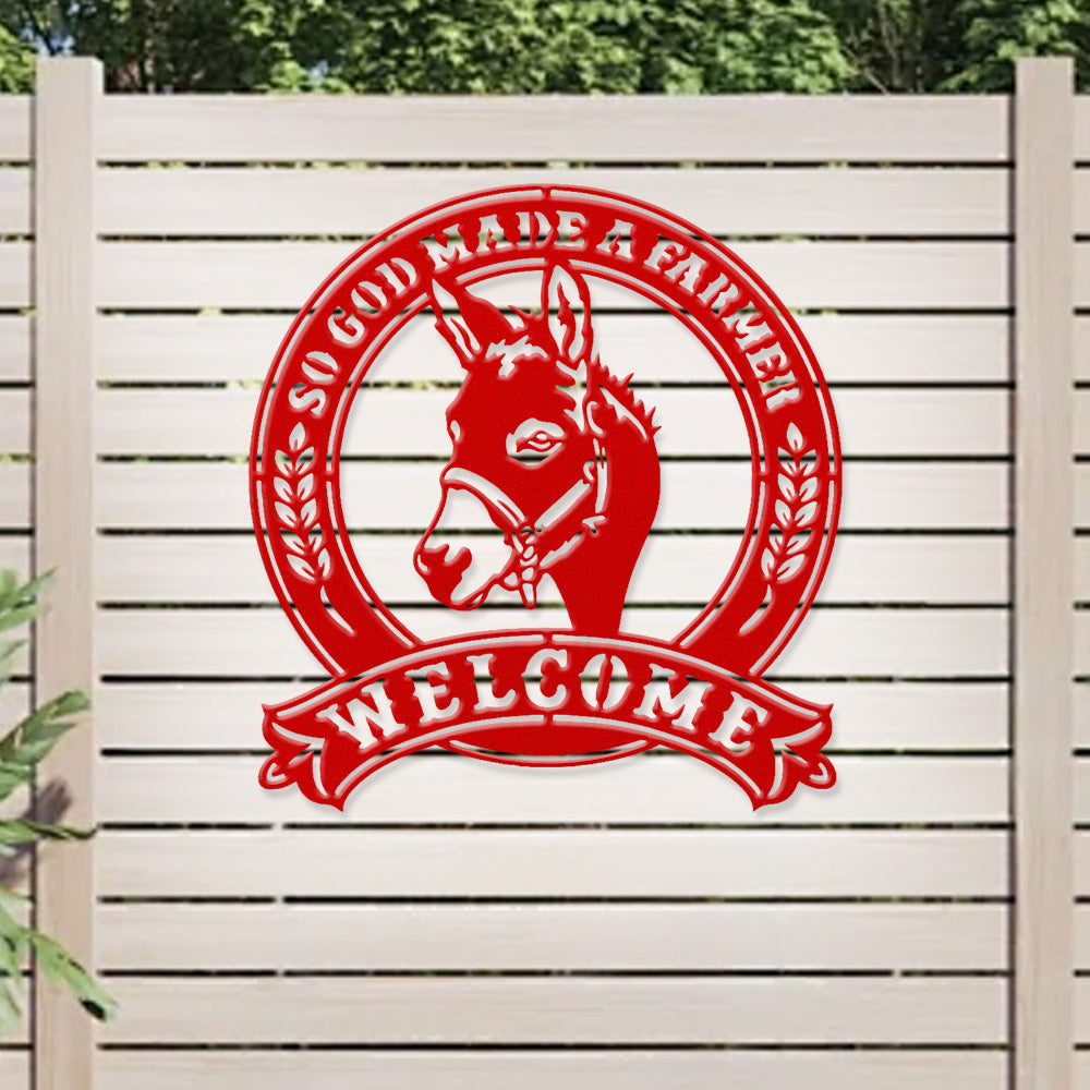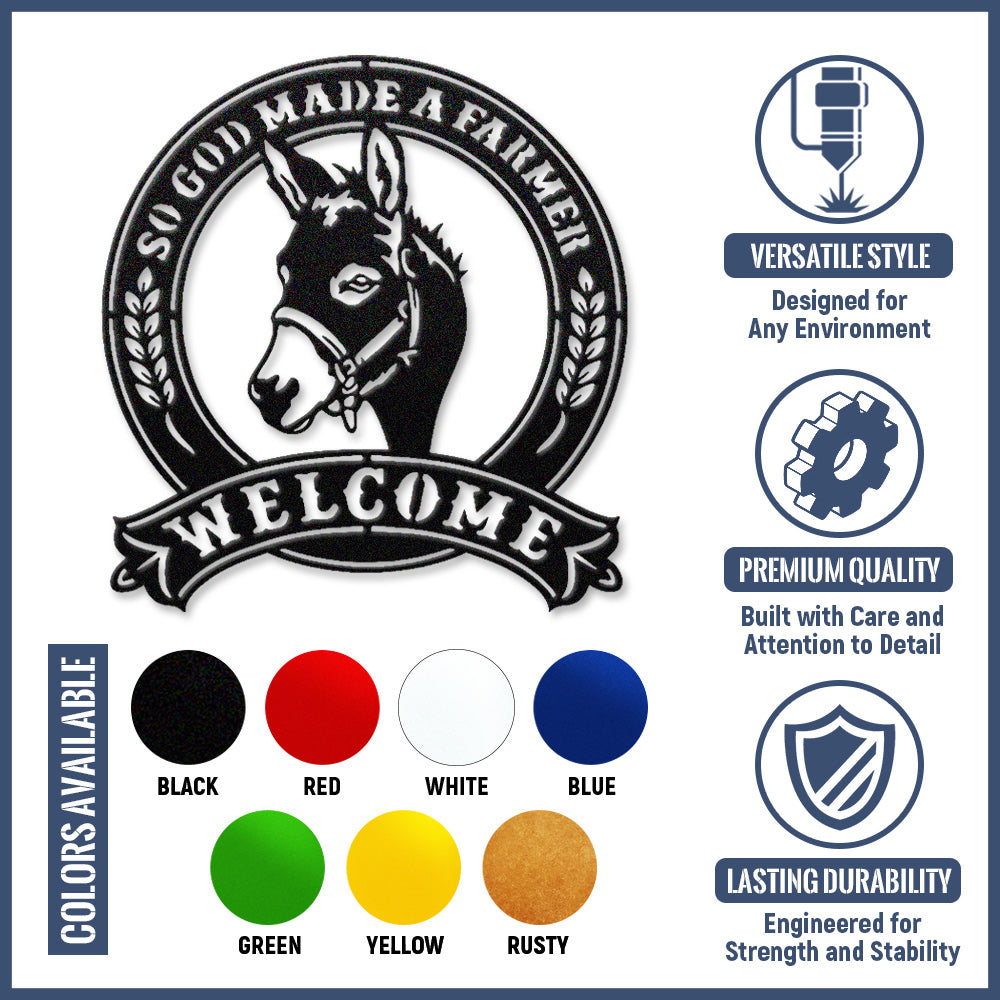 So God Made a Farmer Donkey Welcome Metal Wall Art