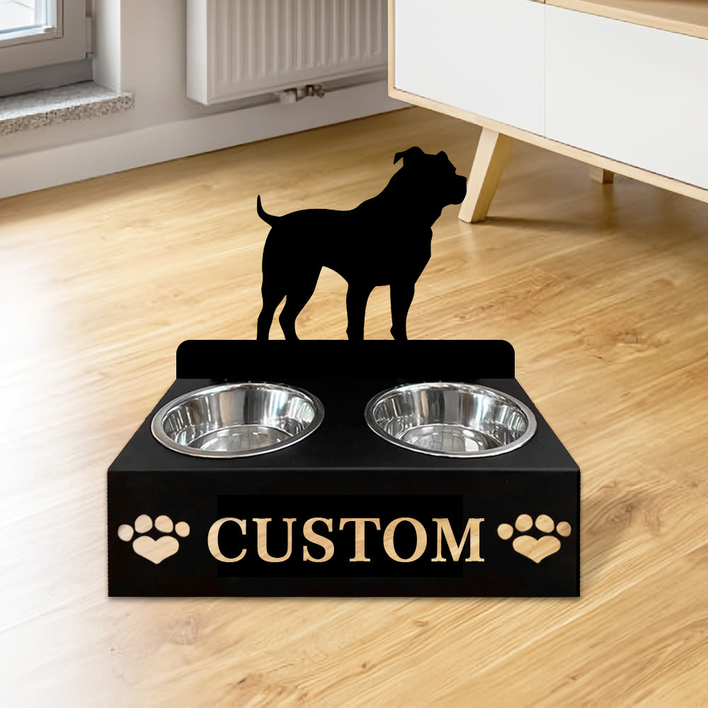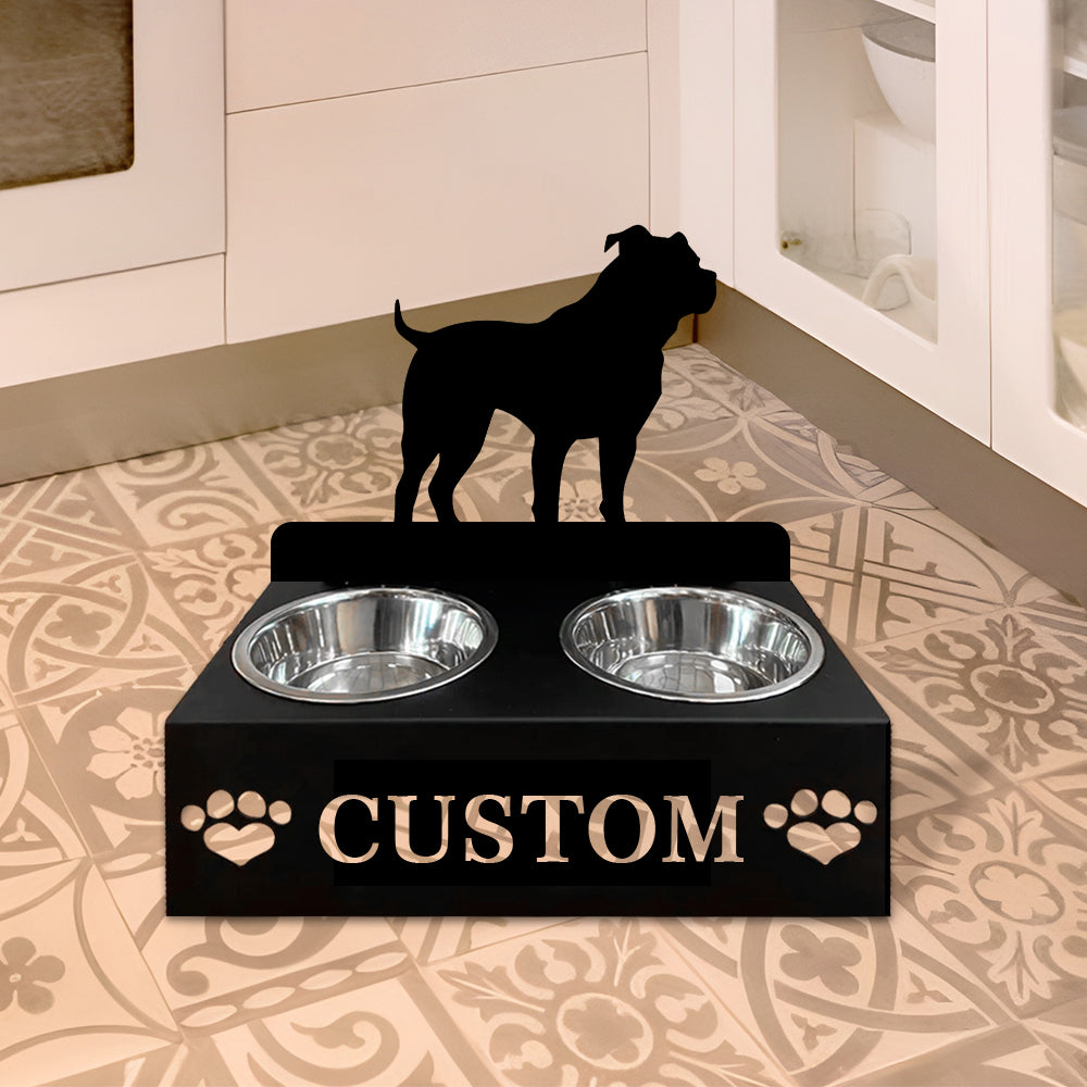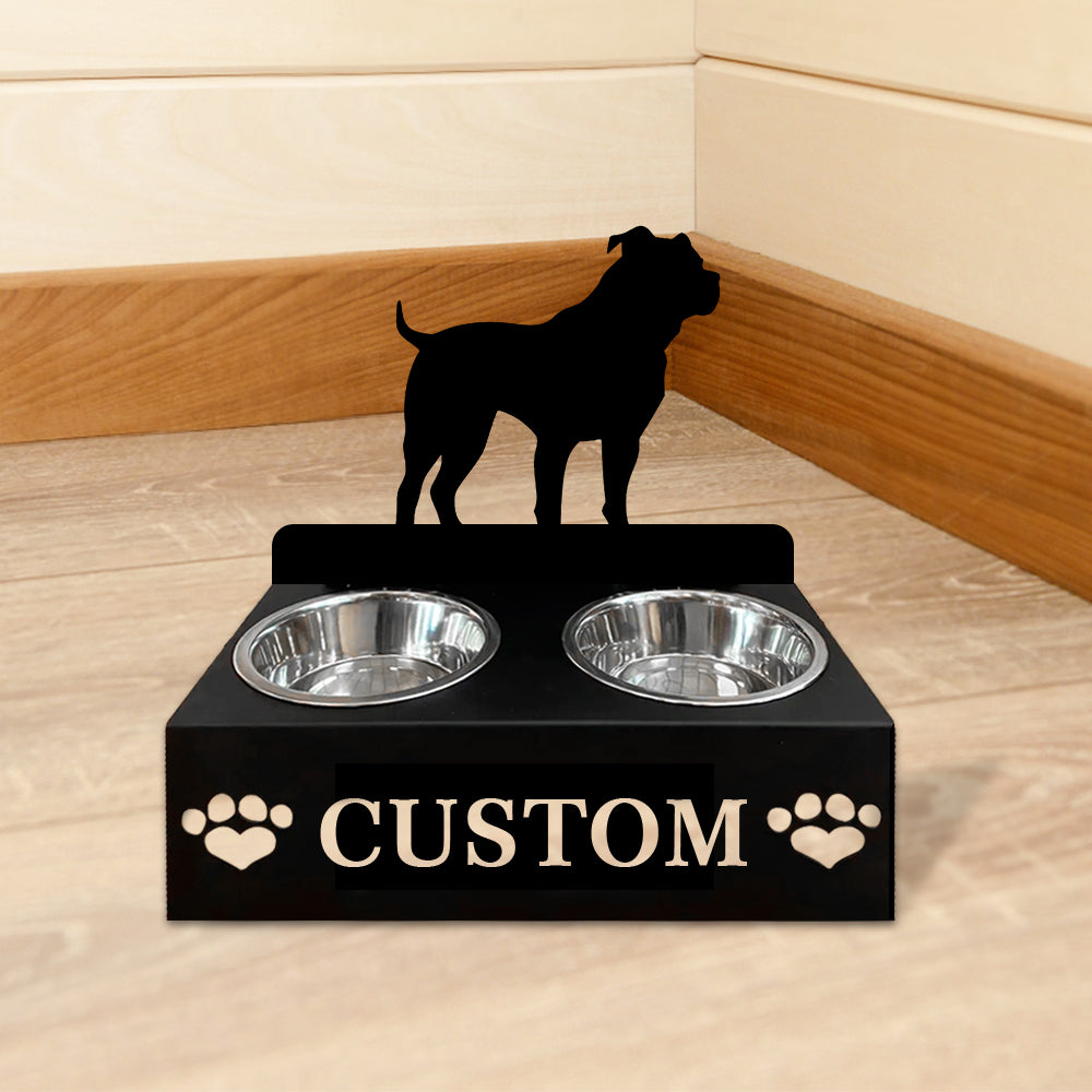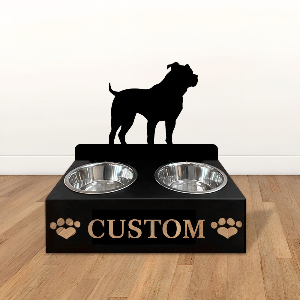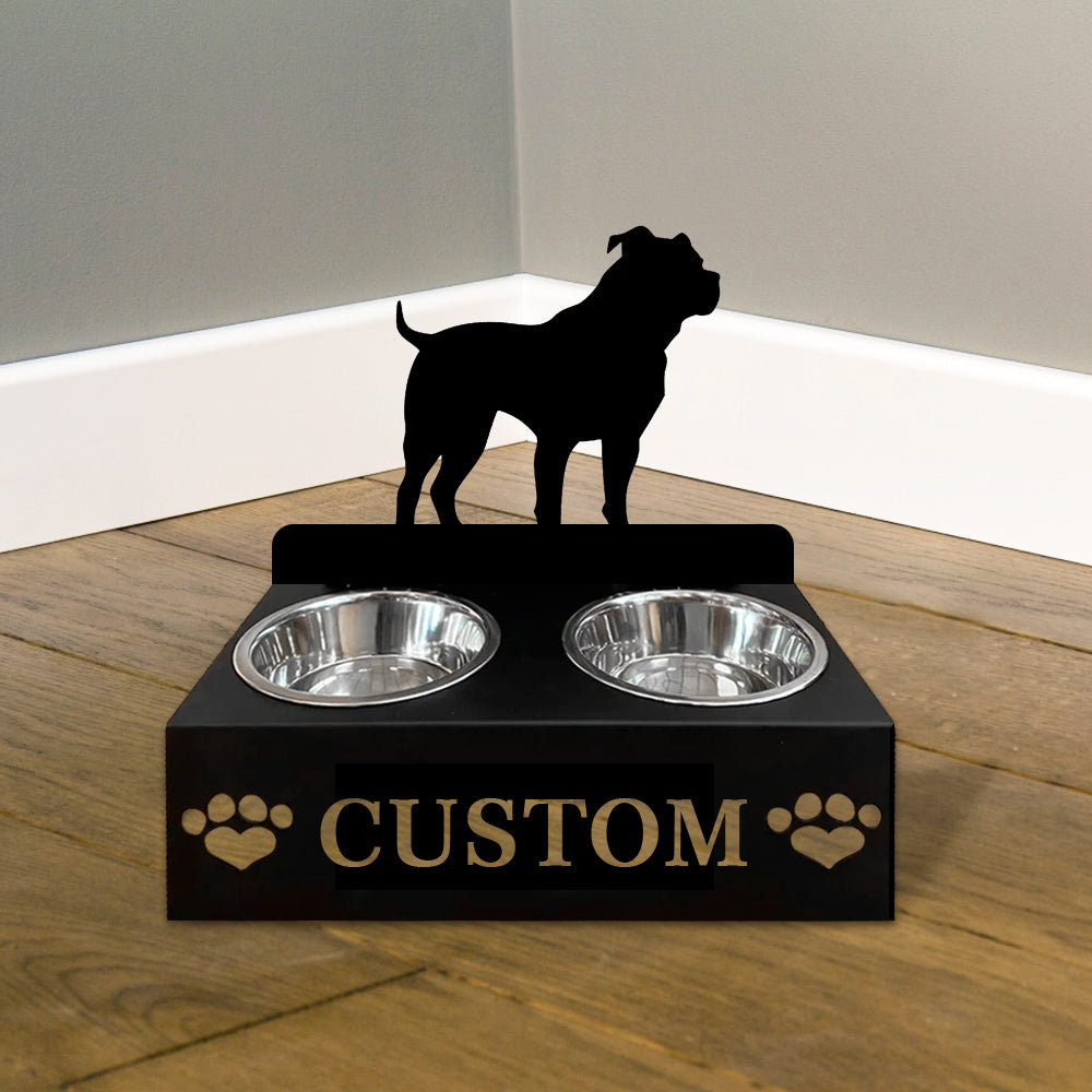 Staffordshire Bull Terrier Dog Personalized Name Pet Food Bowl Holder