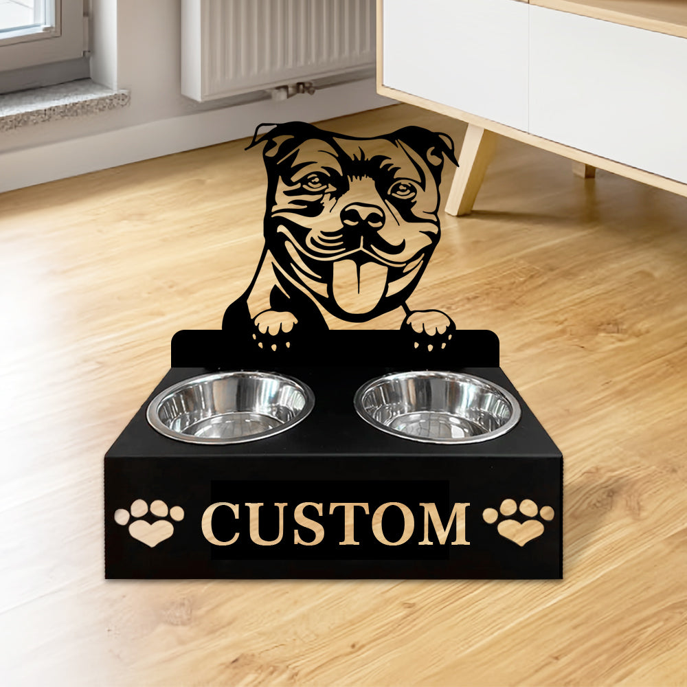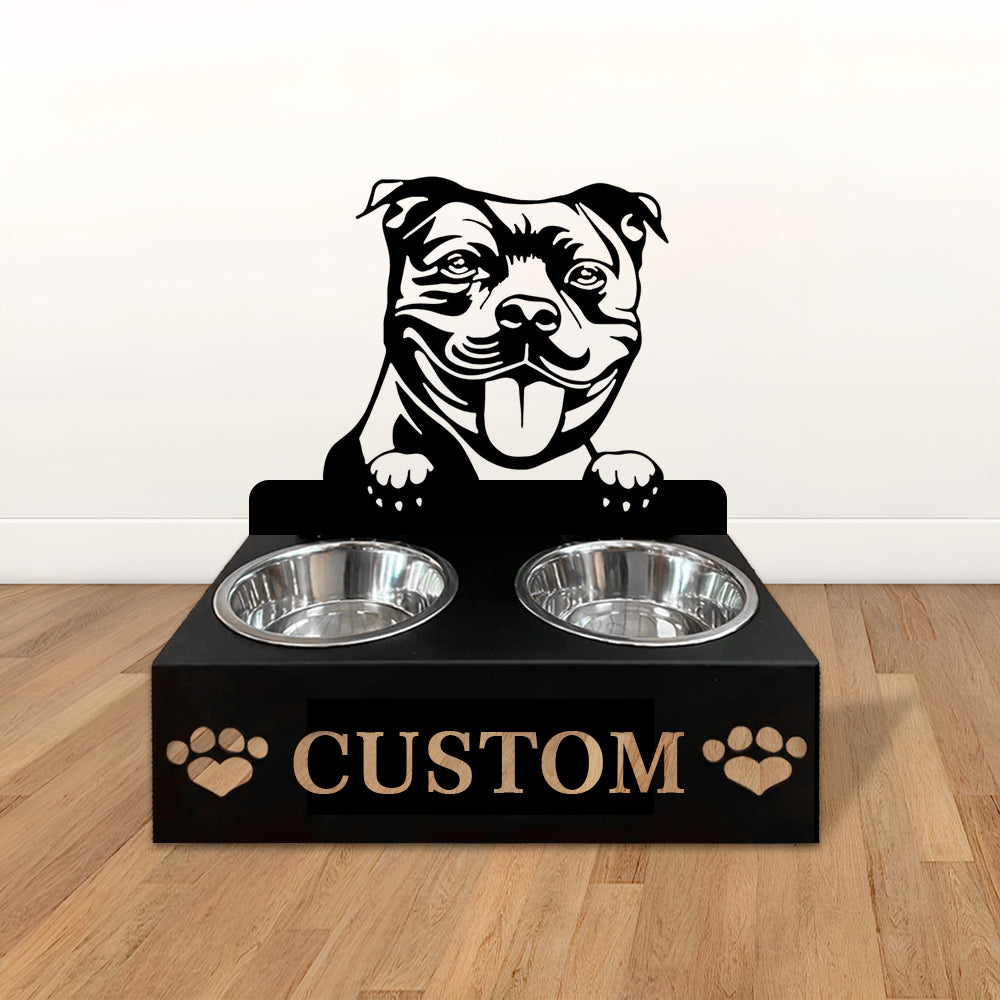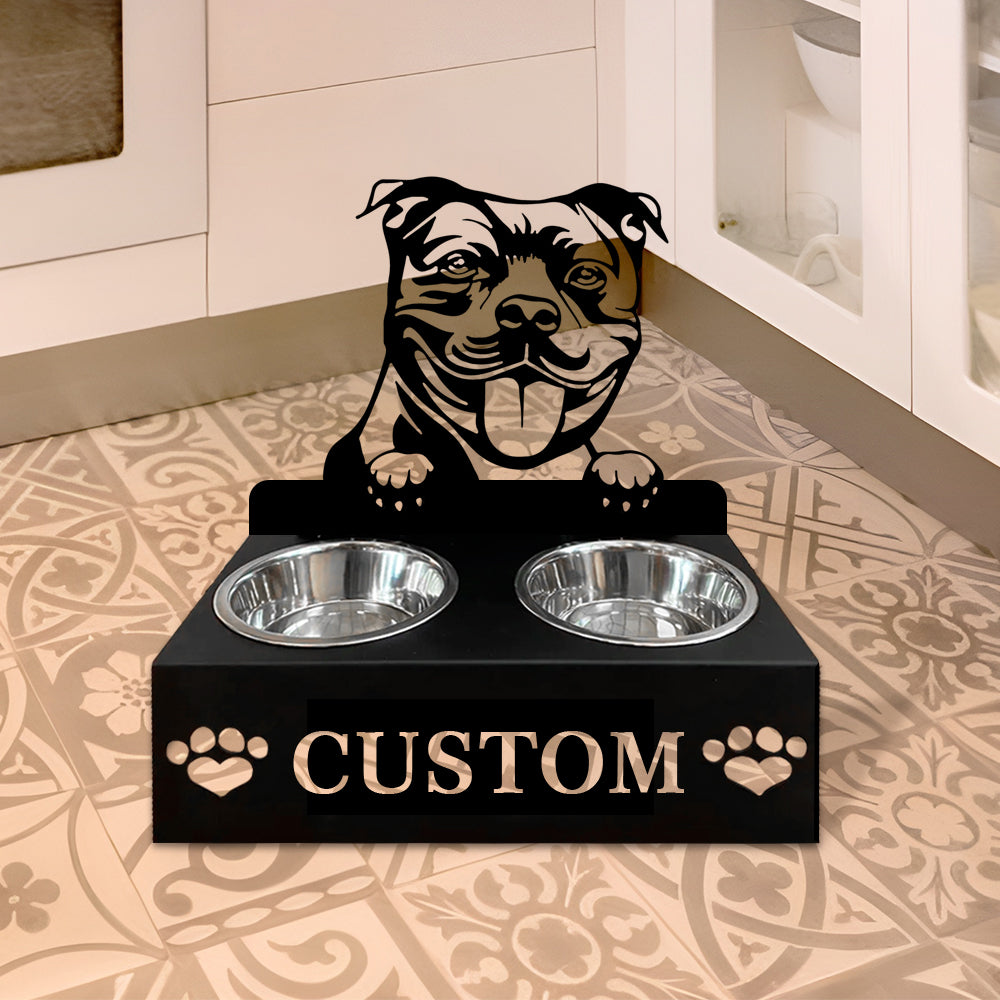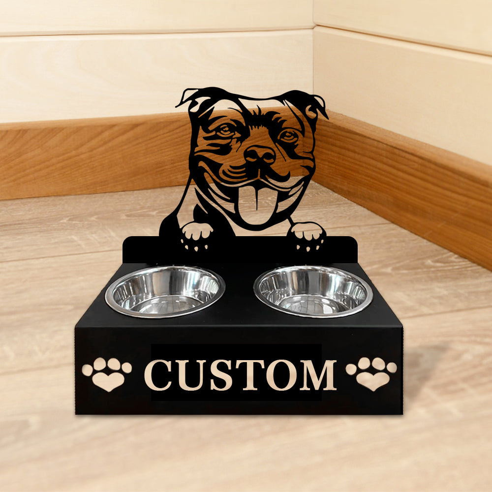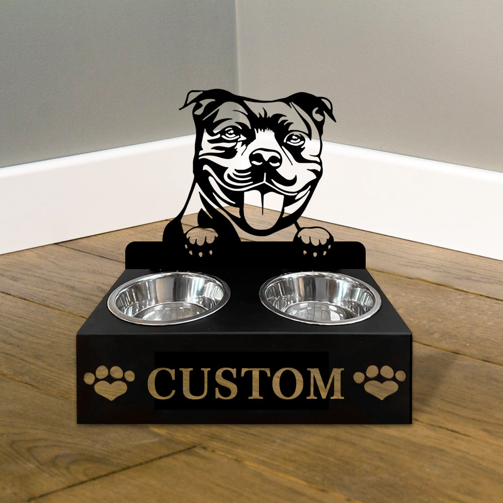 Staffordshire Bull Terrier Personalized Name Pet Food Bowl Holder