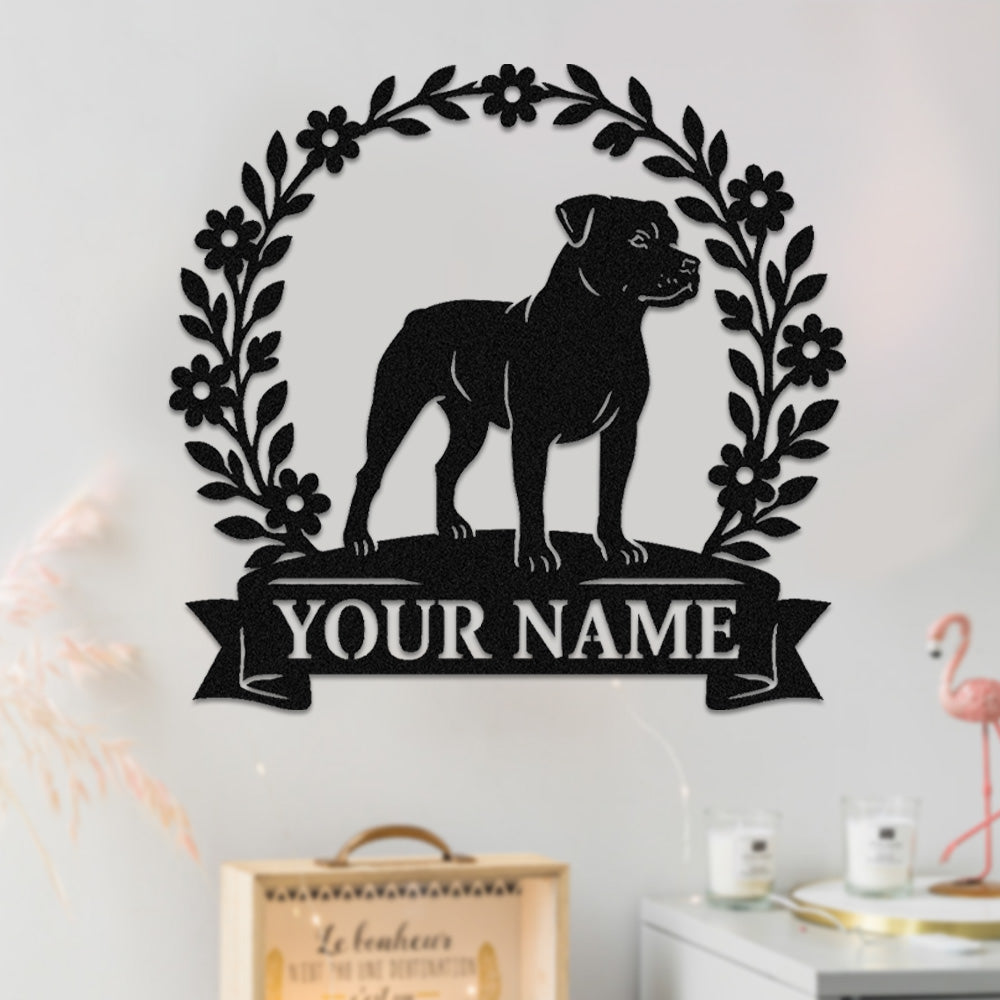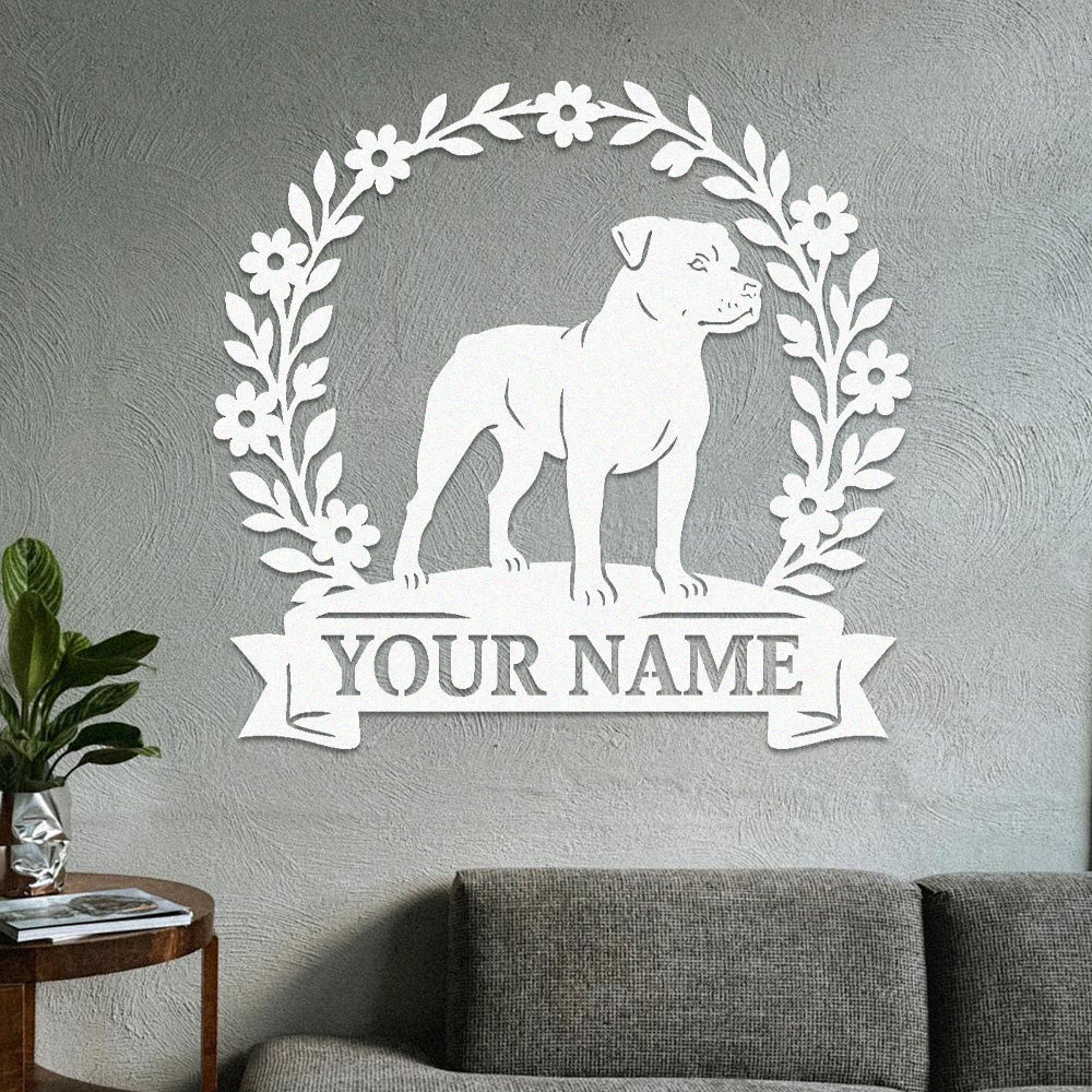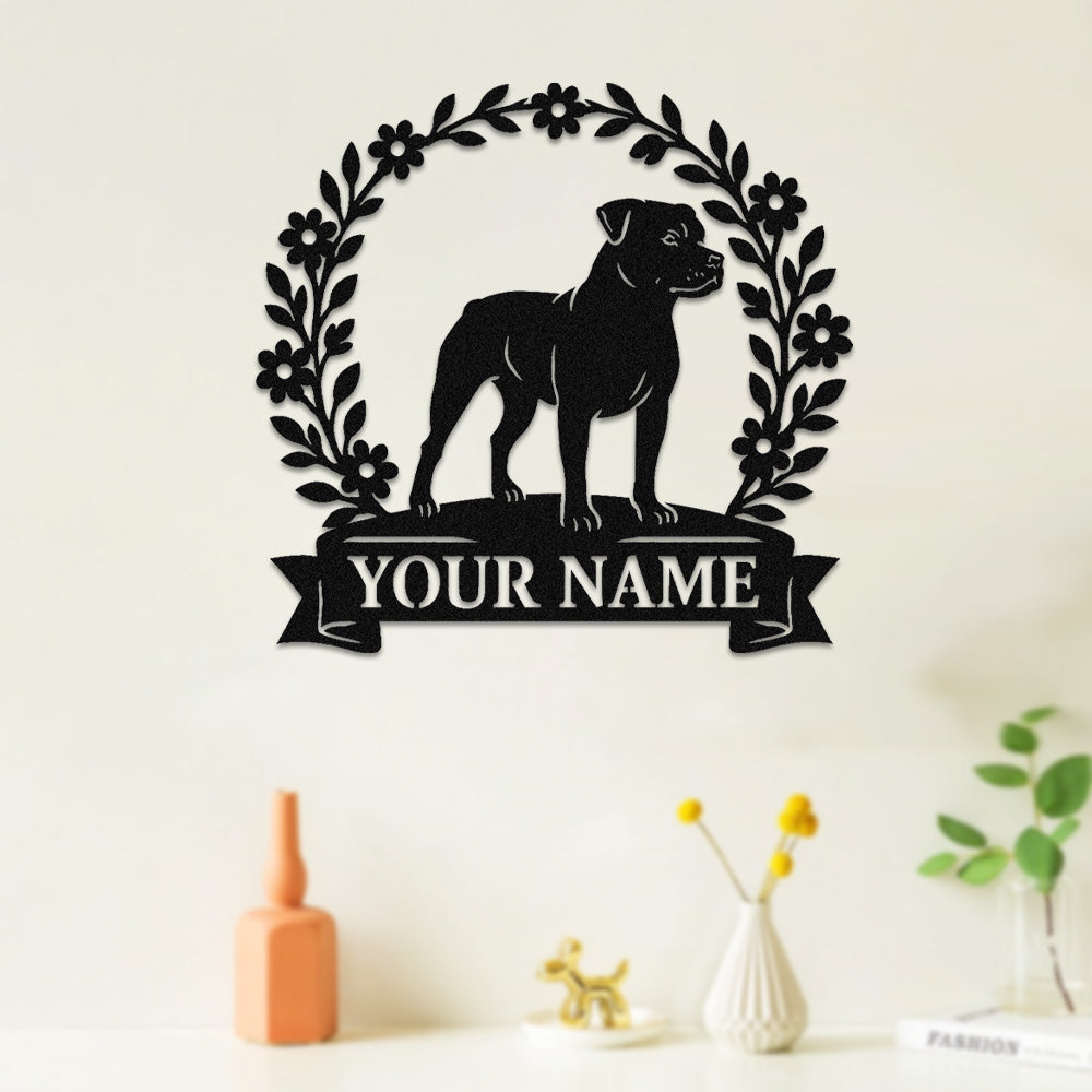 Staffordshire Bull Terrier Wreath Metal Wall Art Dog Lover Personalized Memorial Metal Sign