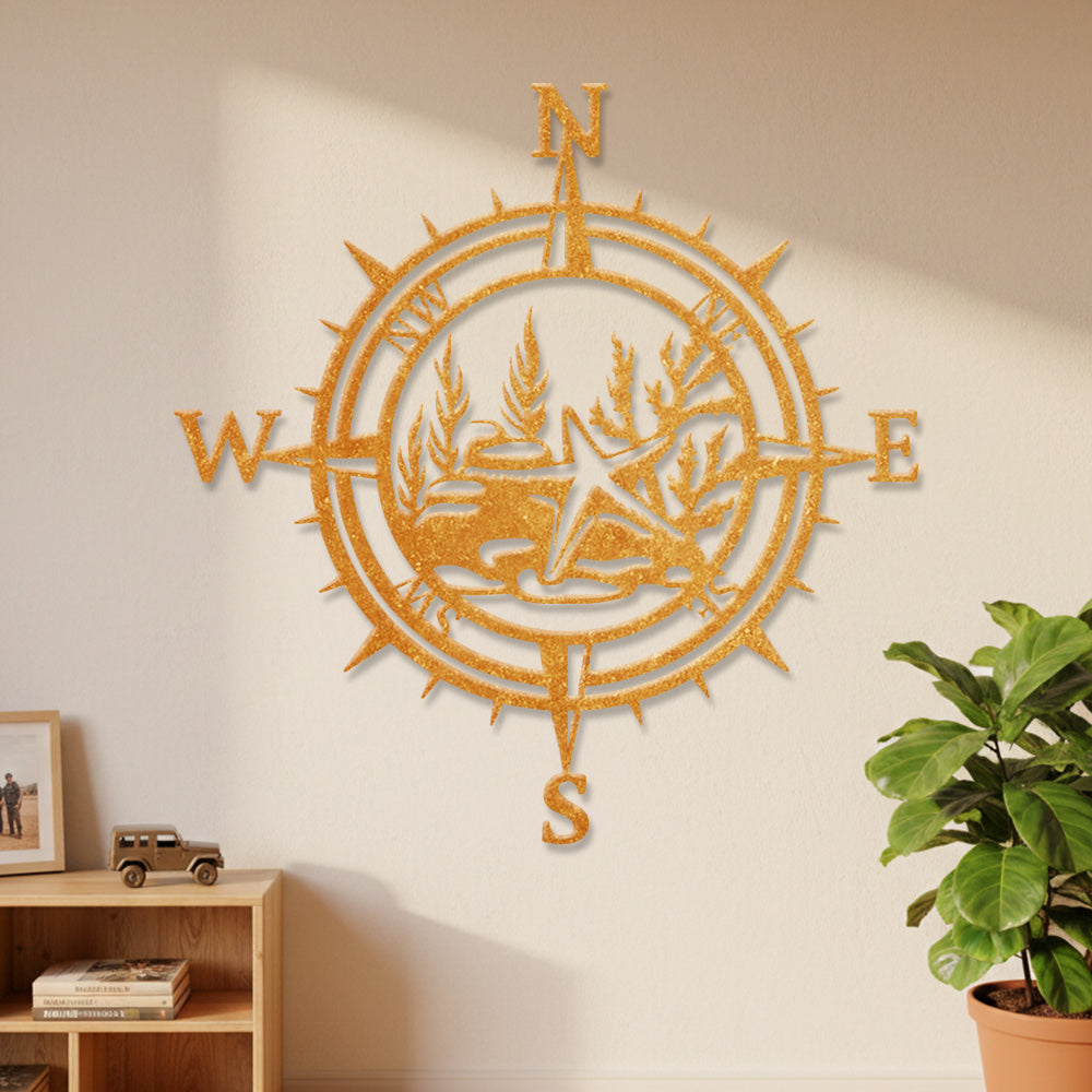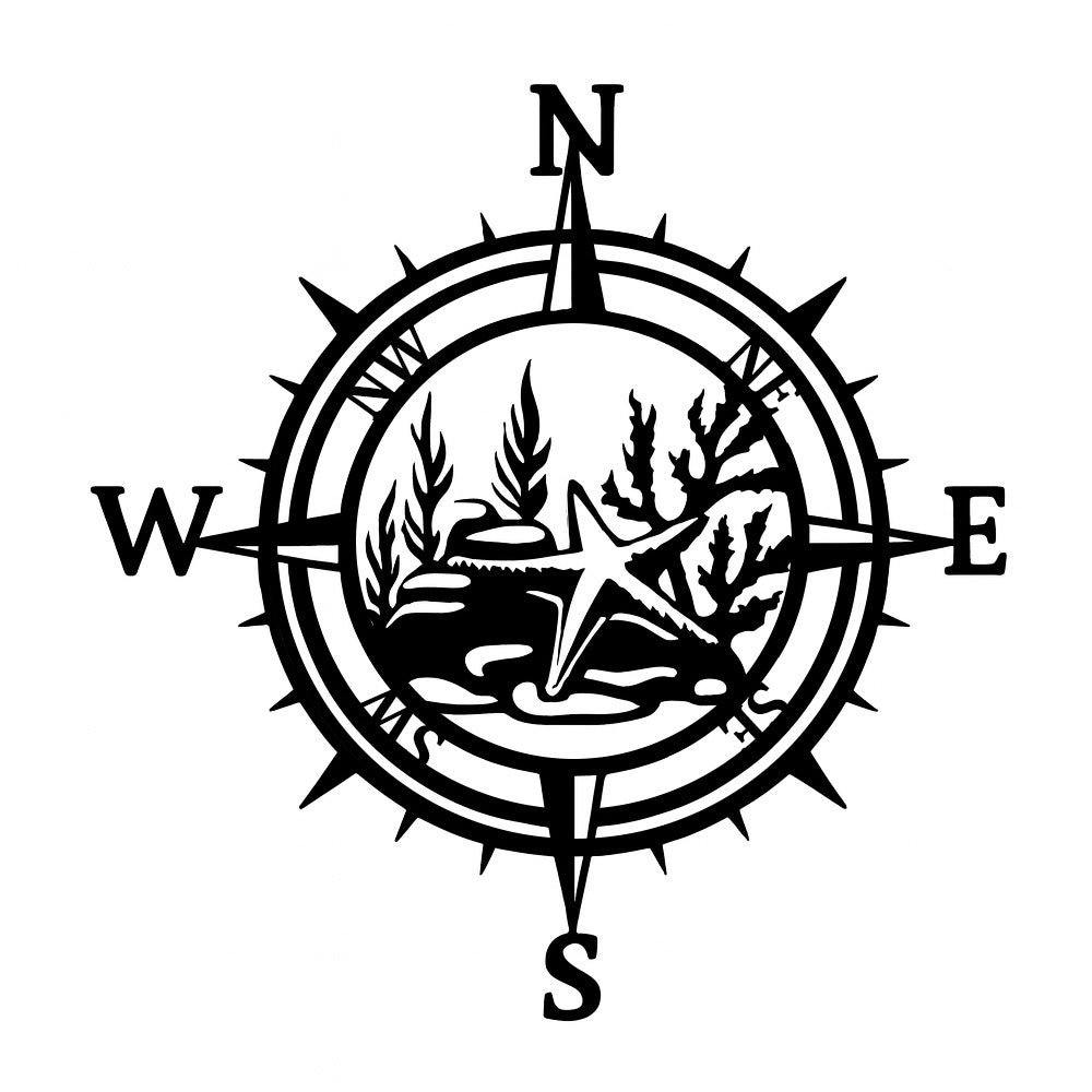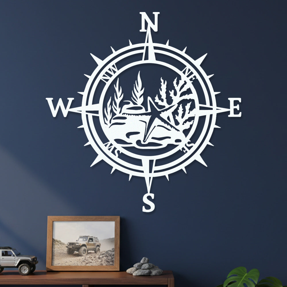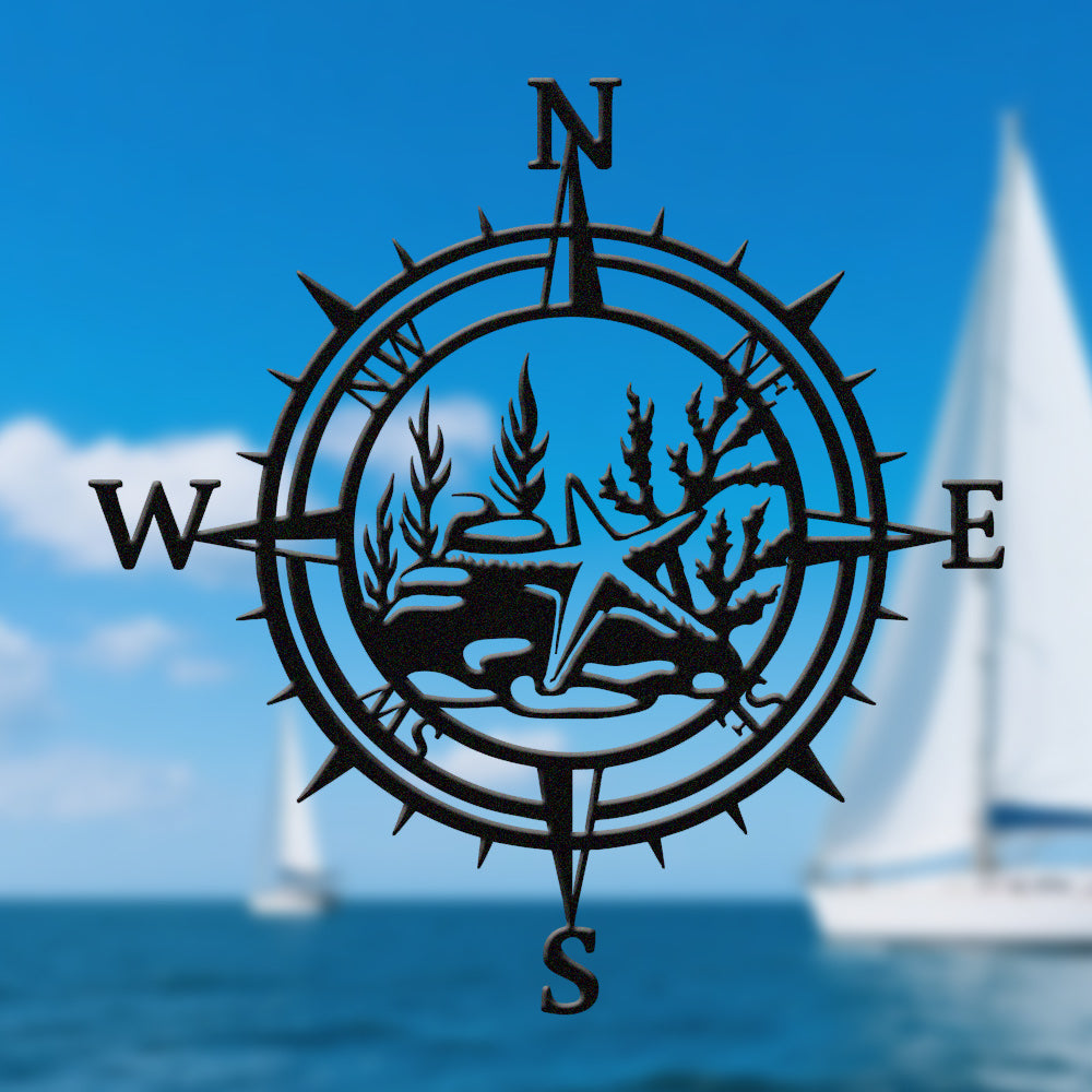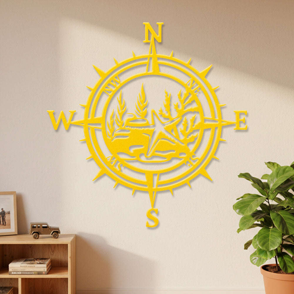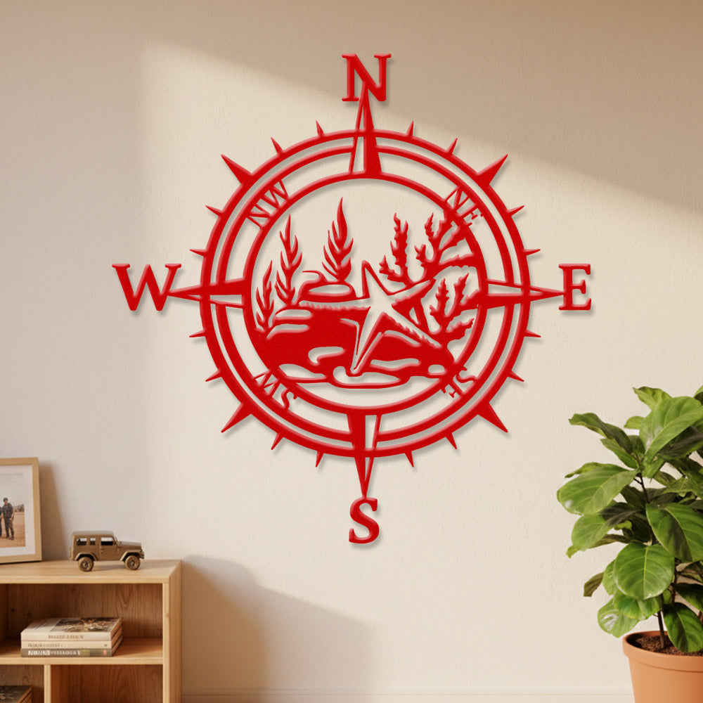 Starfish Compass Metal Wall Art – Coastal Ocean Iron Decor