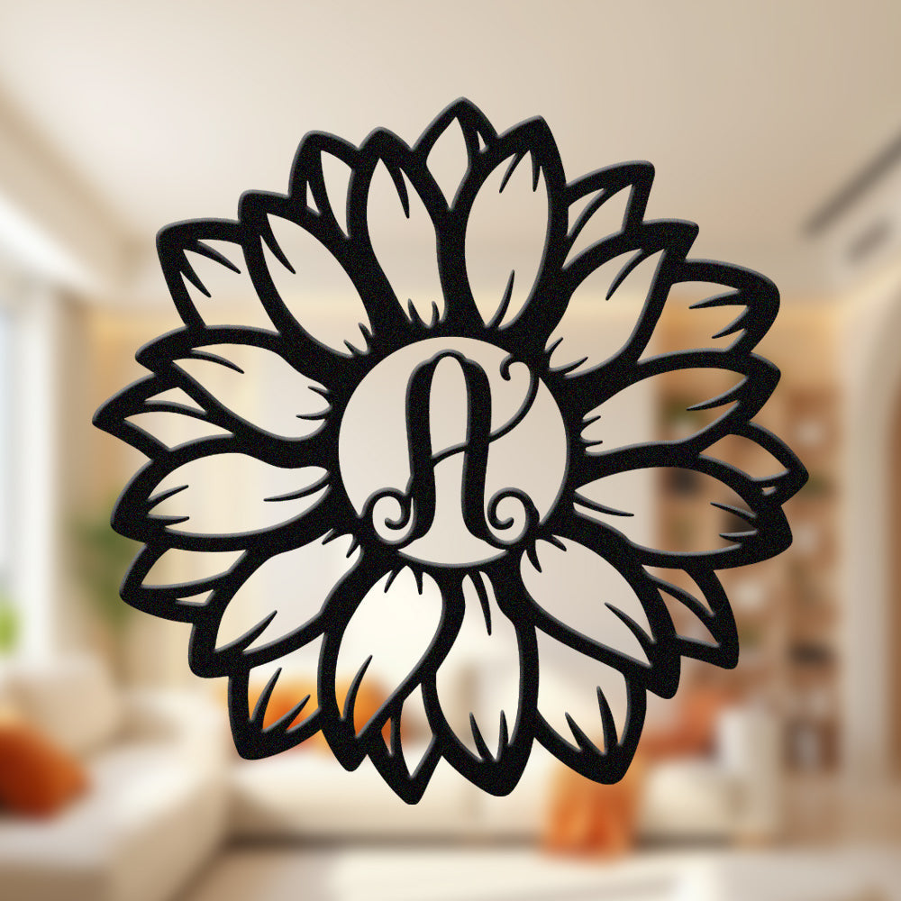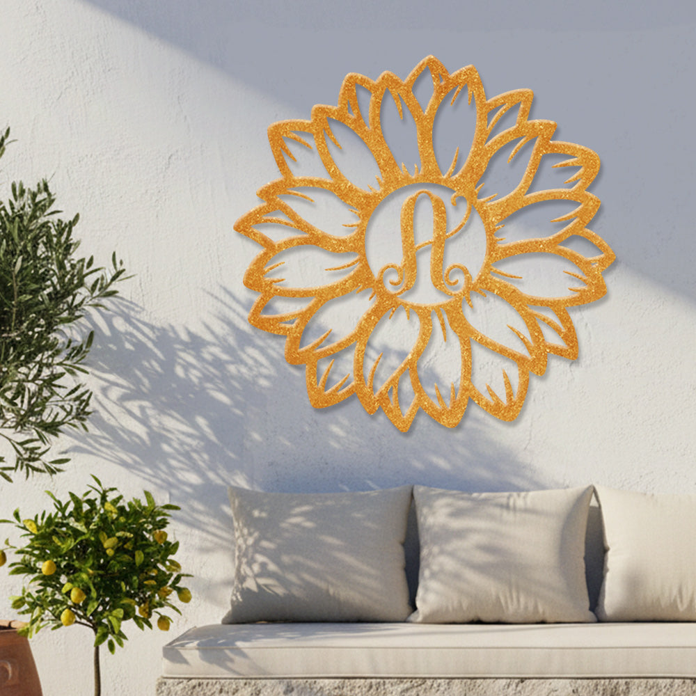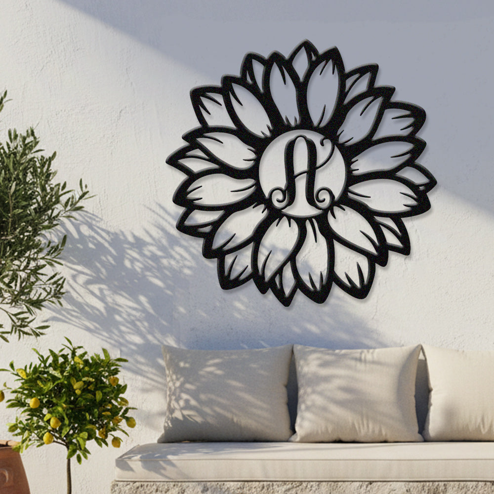 Sunflower Letter A Metal Wall Art – Floral Home Decor Sign