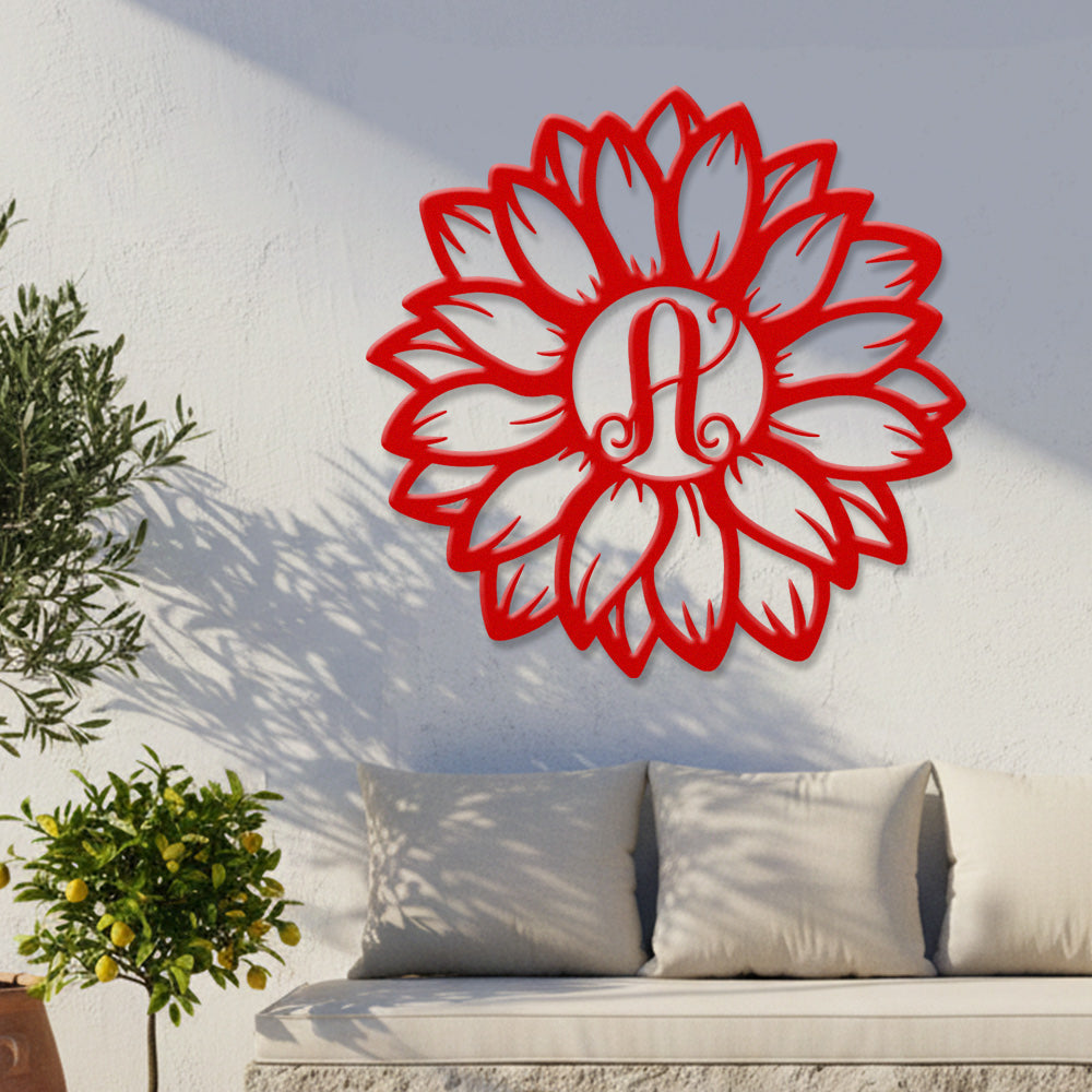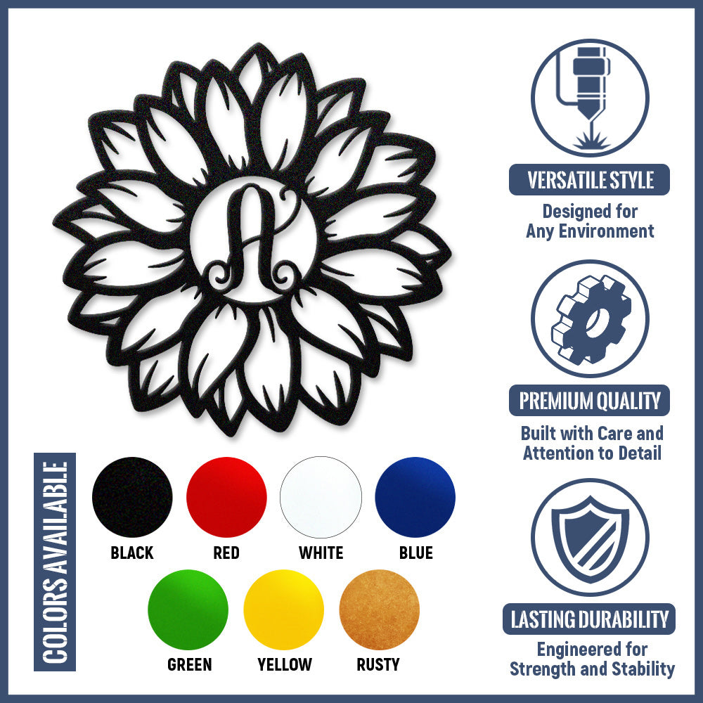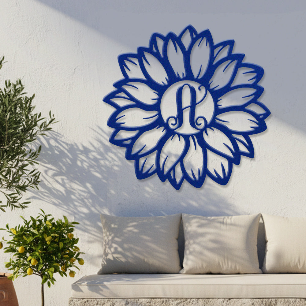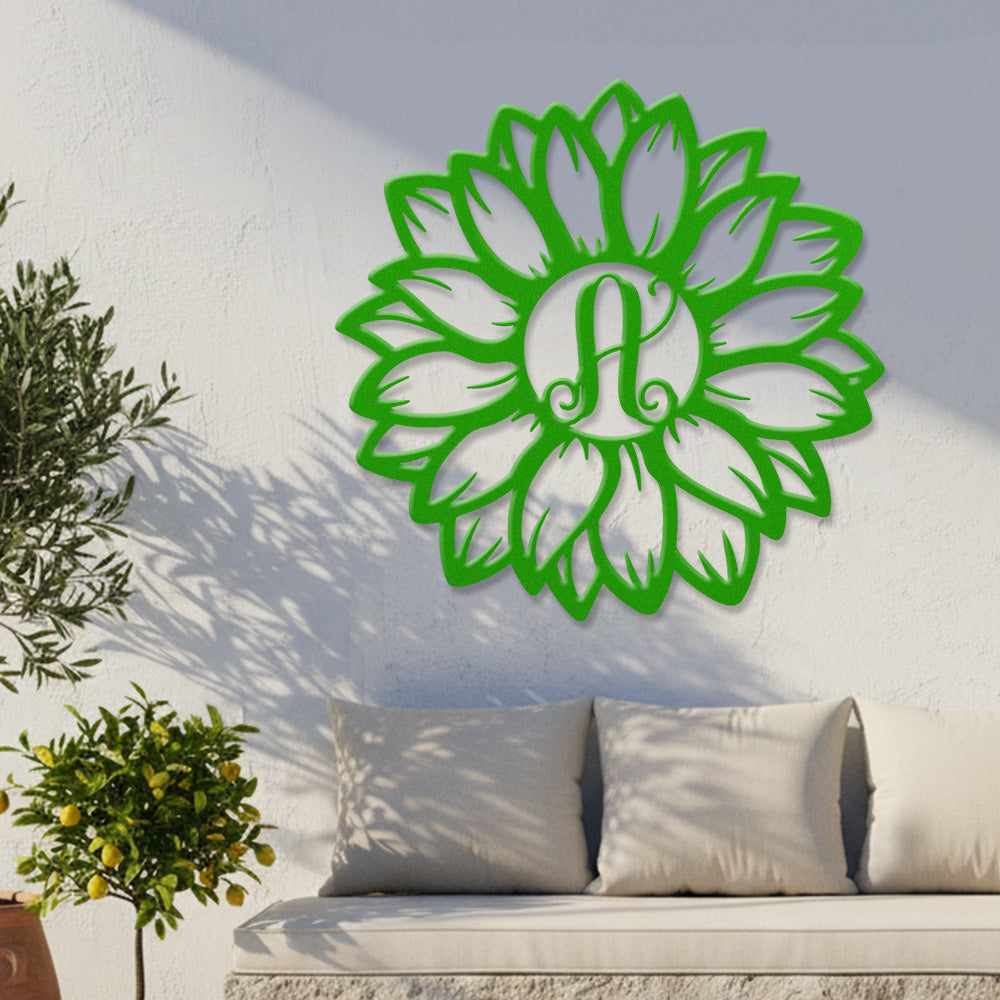 Sunflower Letter A Metal Wall Art – Floral Home Decor Sign