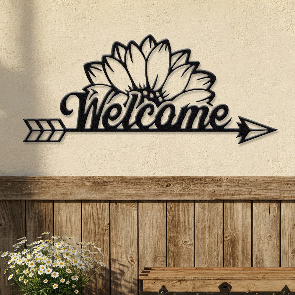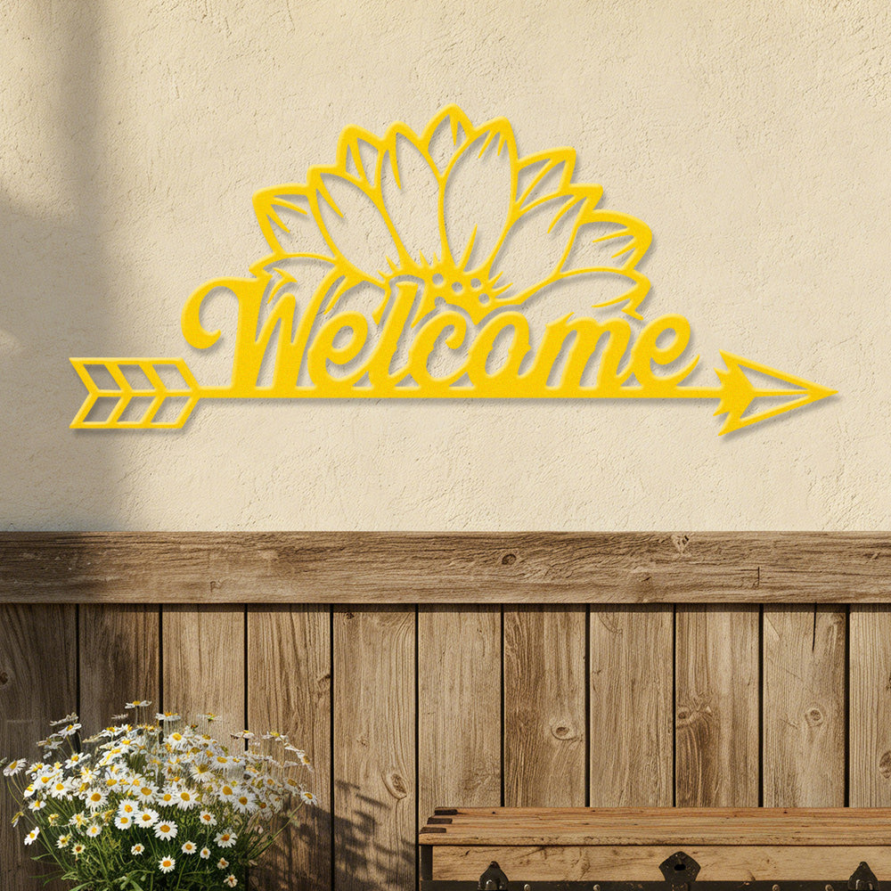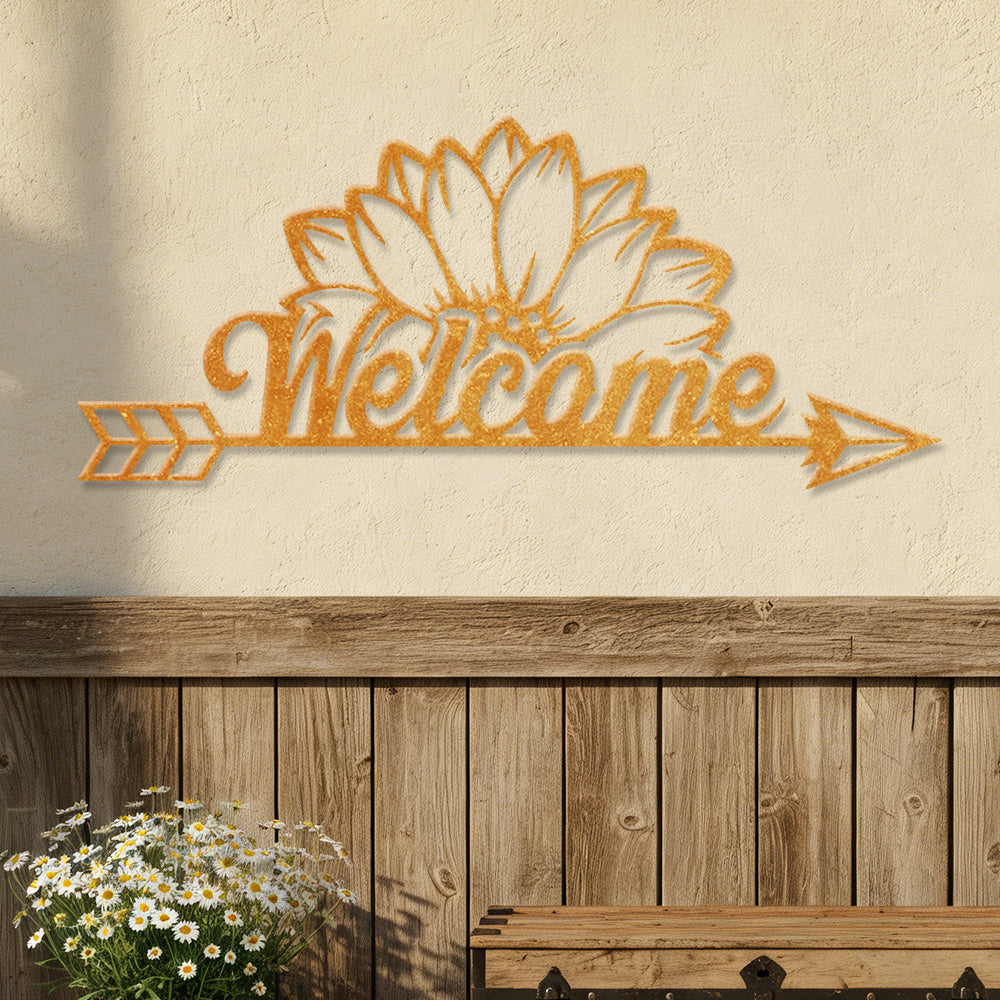 Sunflower Welcome Arrow Metal Wall Art – Farmhouse Floral Door Decor Sign