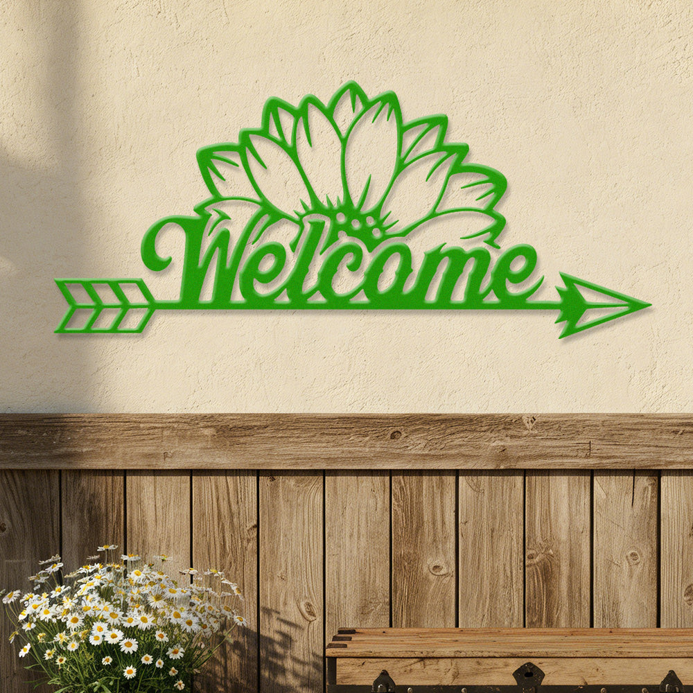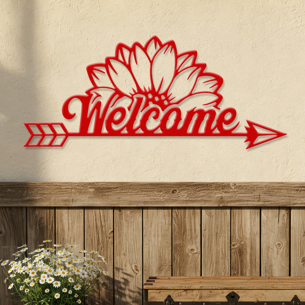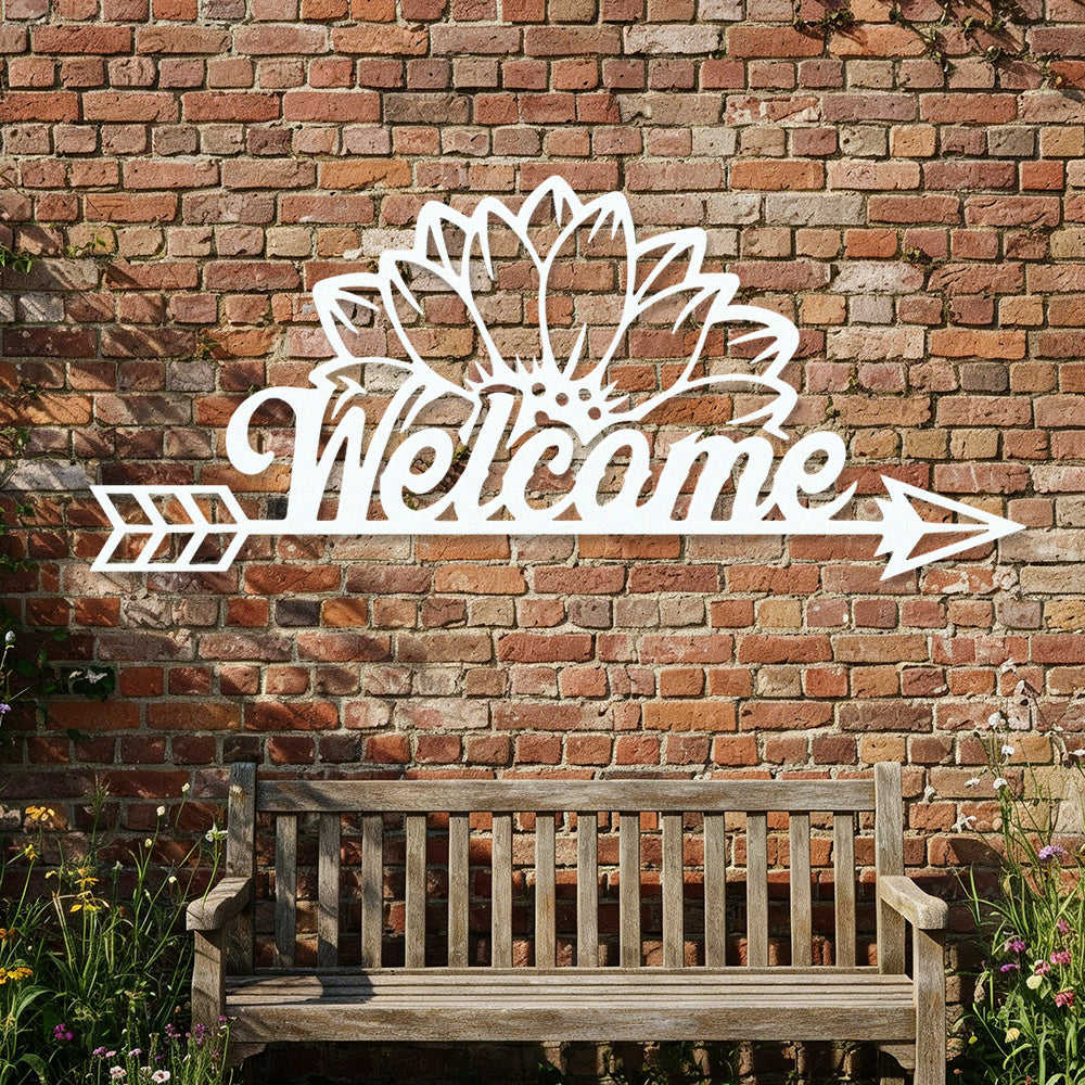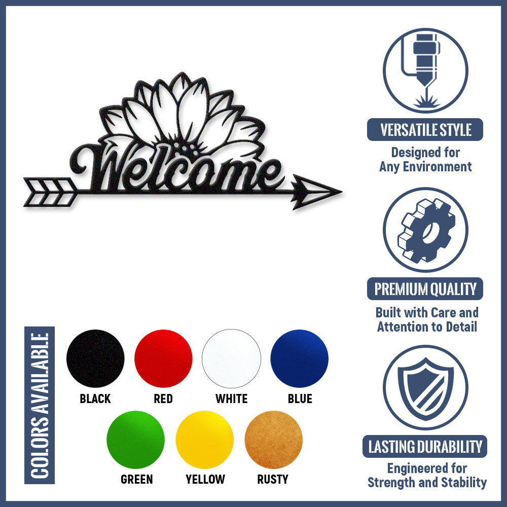 Sunflower Welcome Arrow Metal Wall Art – Farmhouse Floral Door Decor Sign