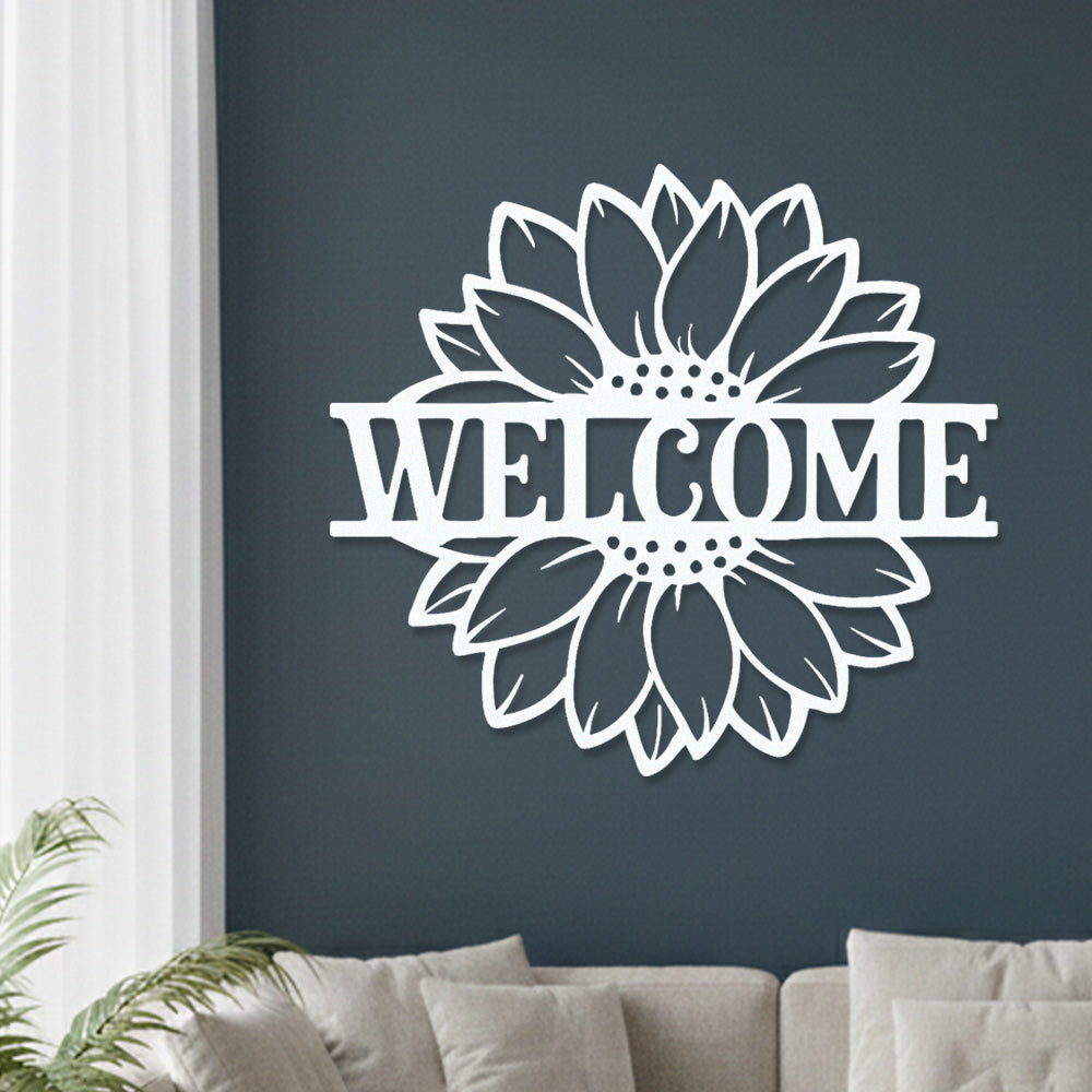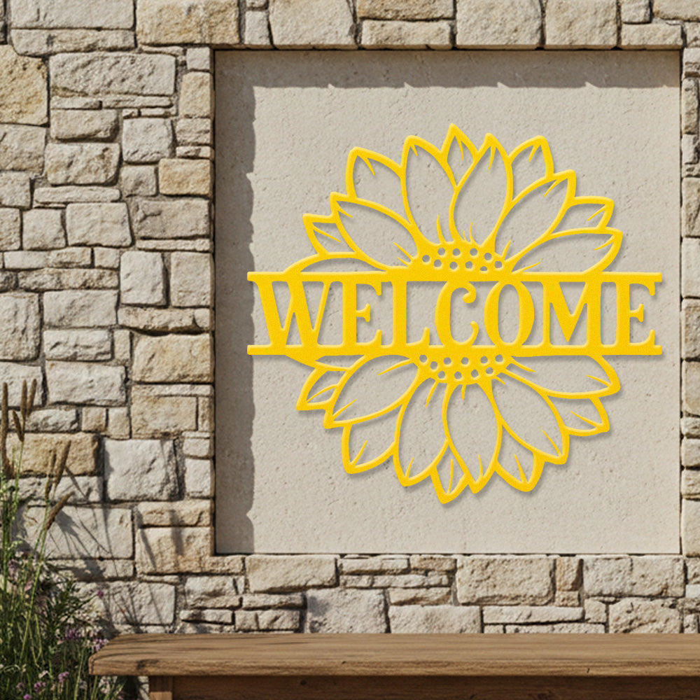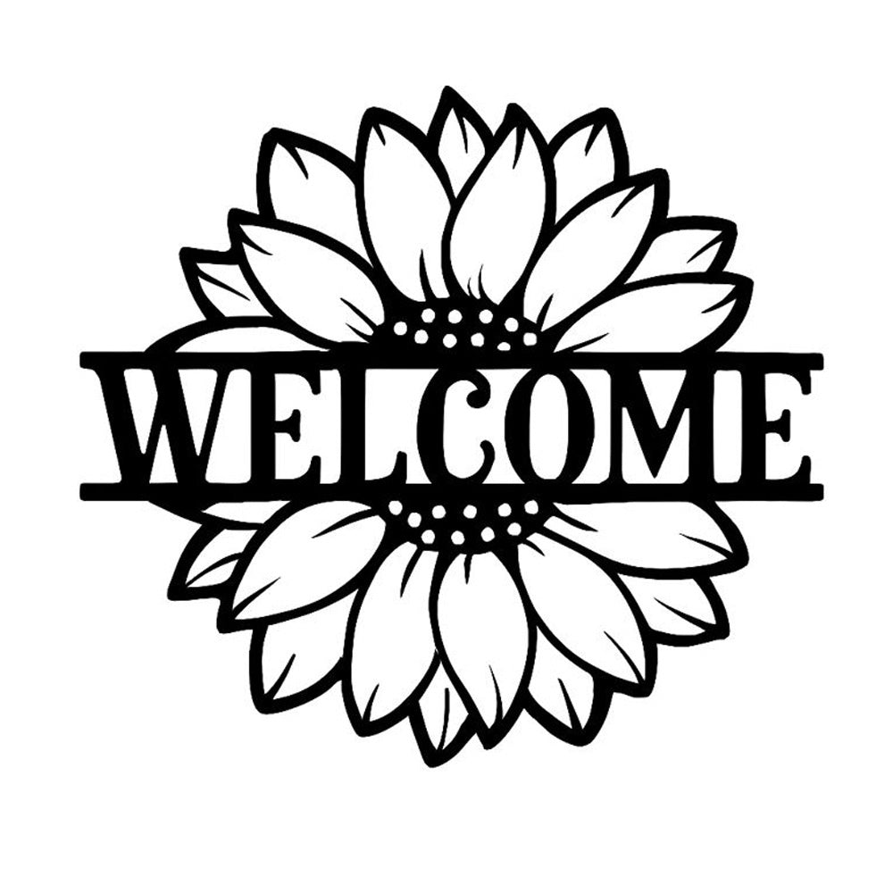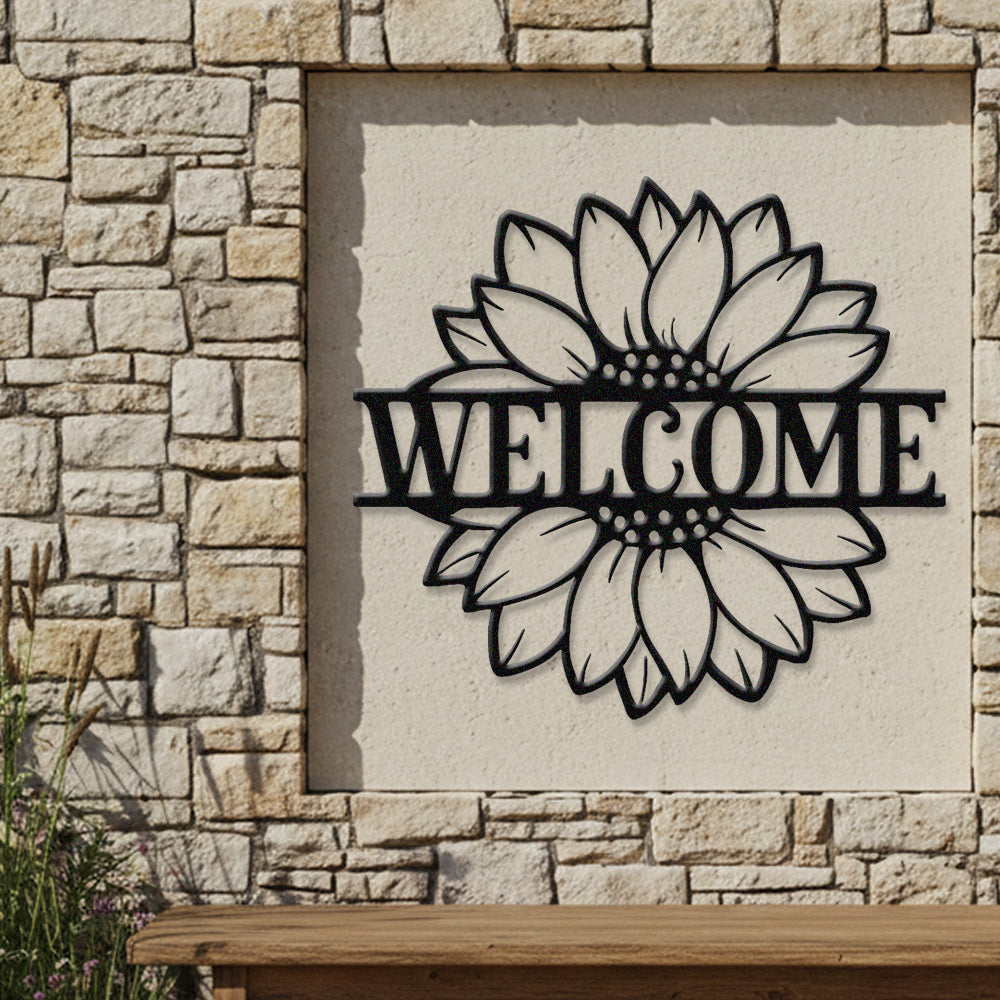 Sunflower Welcome Metal Wall Art – Floral Farmhouse Door Decor Sign