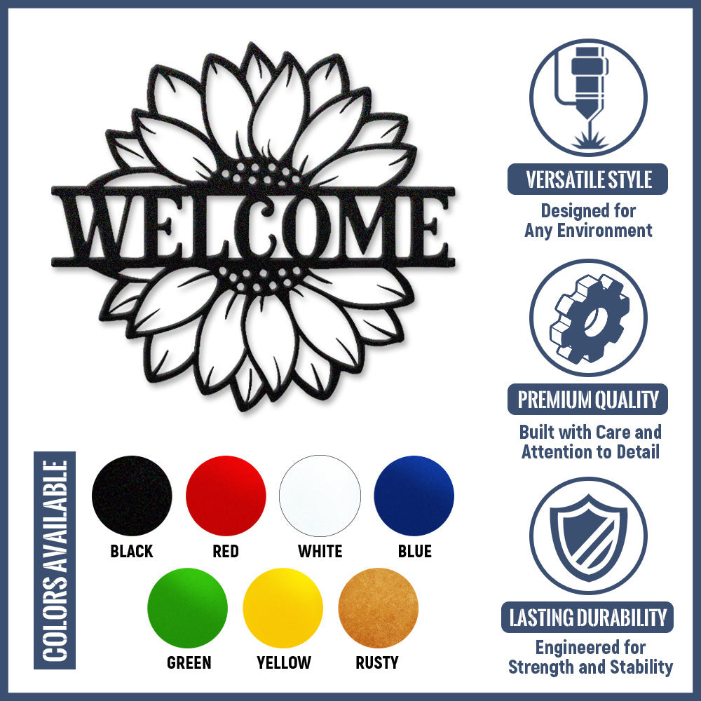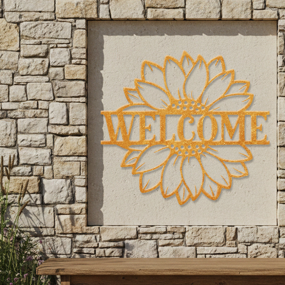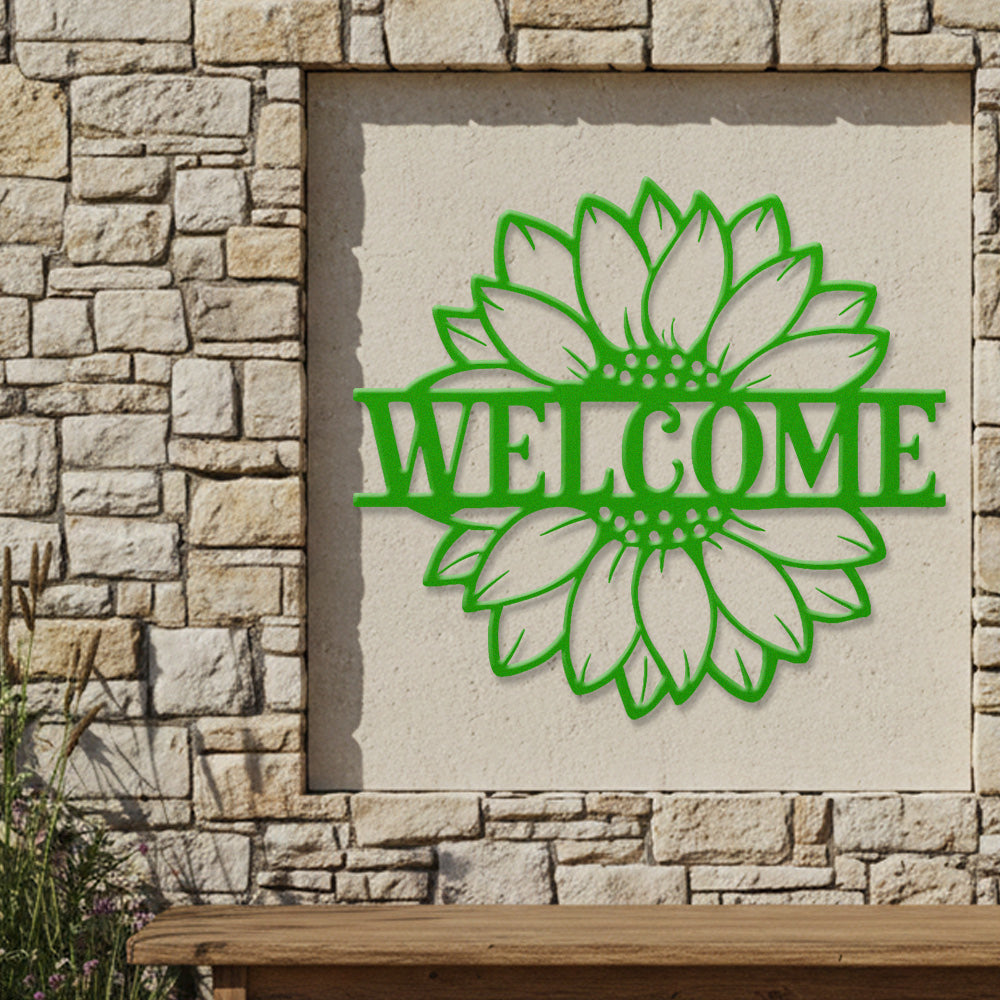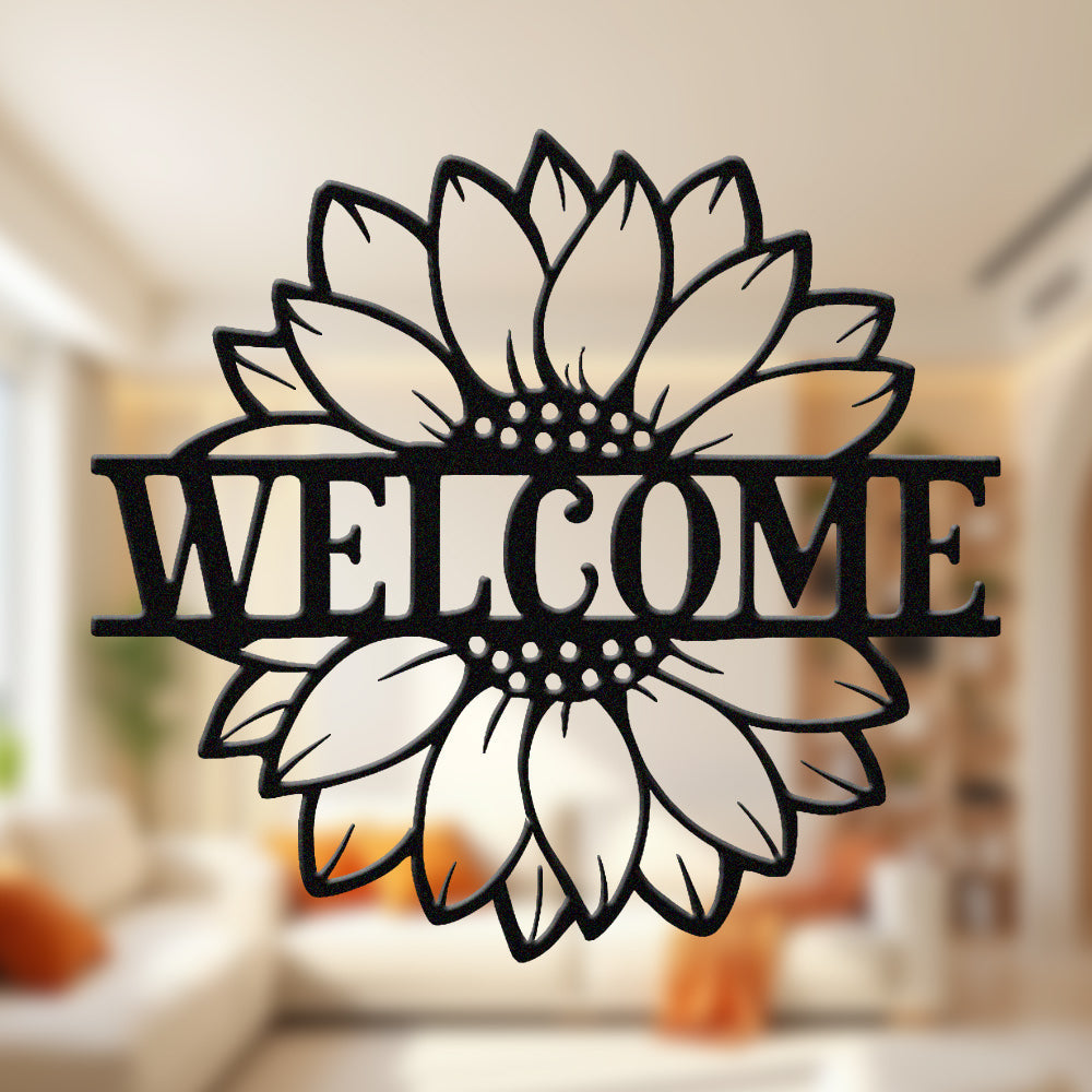 Sunflower Welcome Metal Wall Art – Floral Farmhouse Door Decor Sign