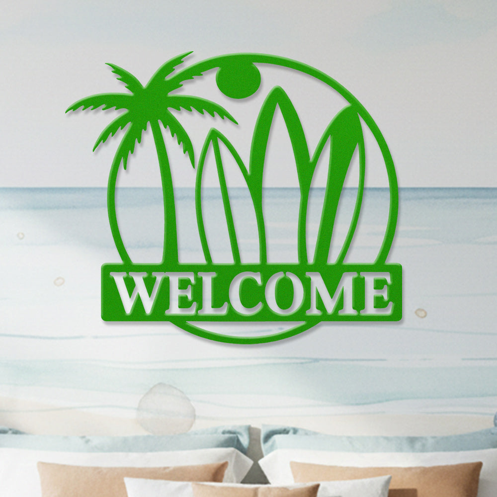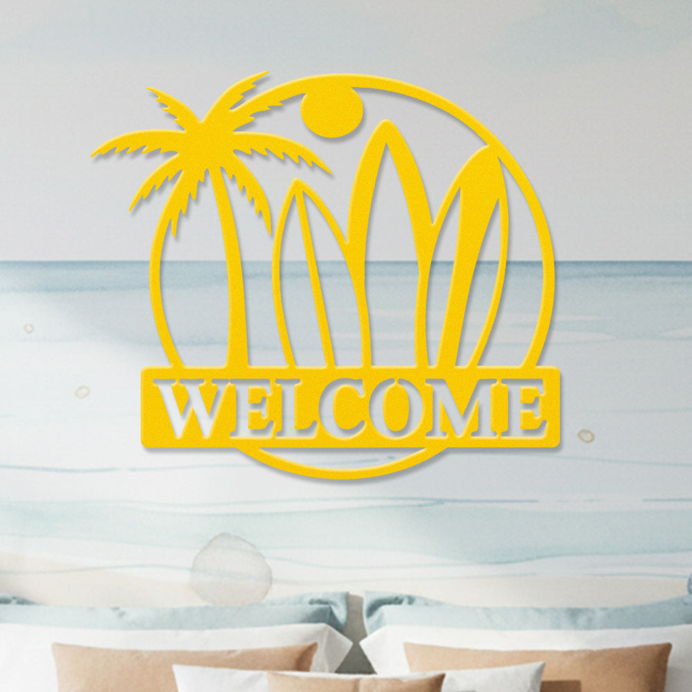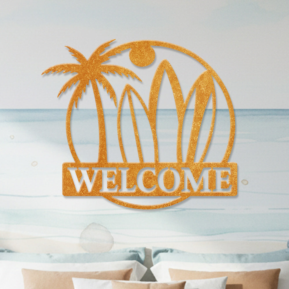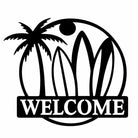 Surfboard Beach Welcome Metal Wall Art – Tropical Palm Iron Metal Door Sign