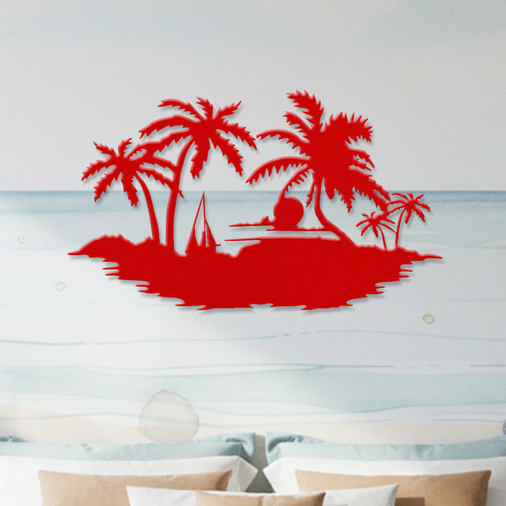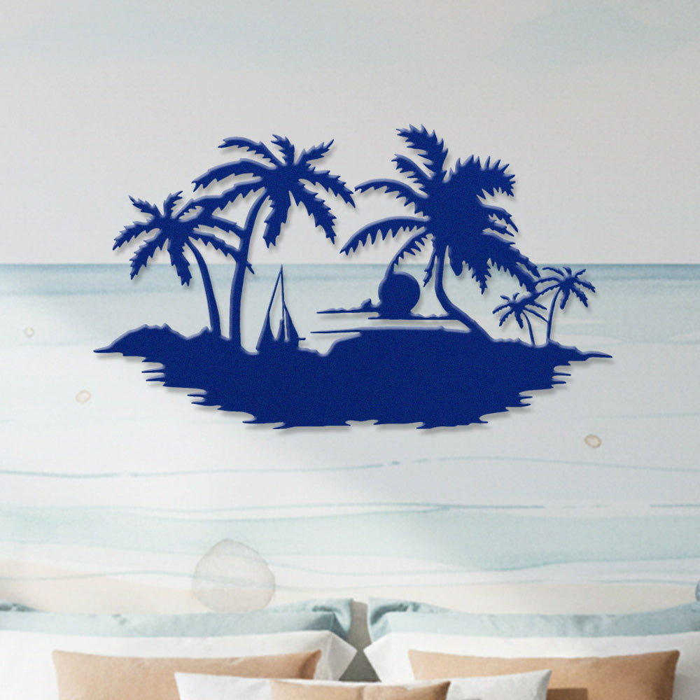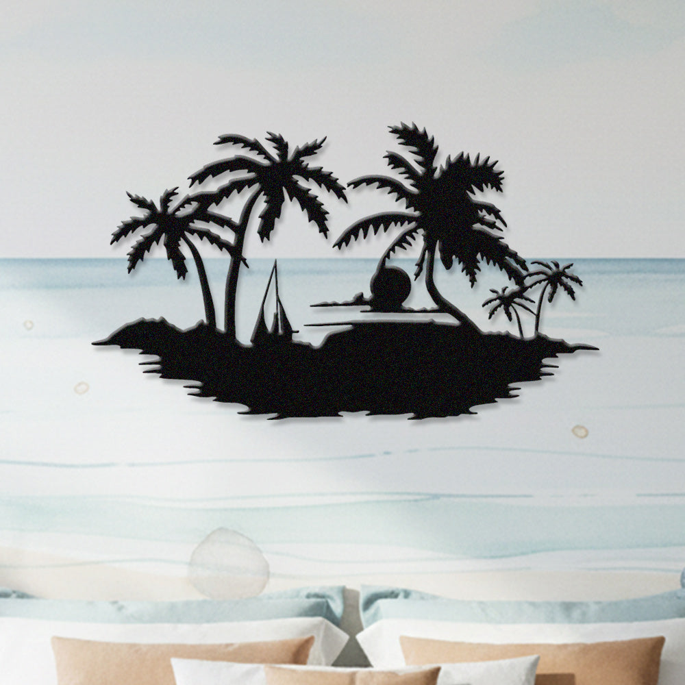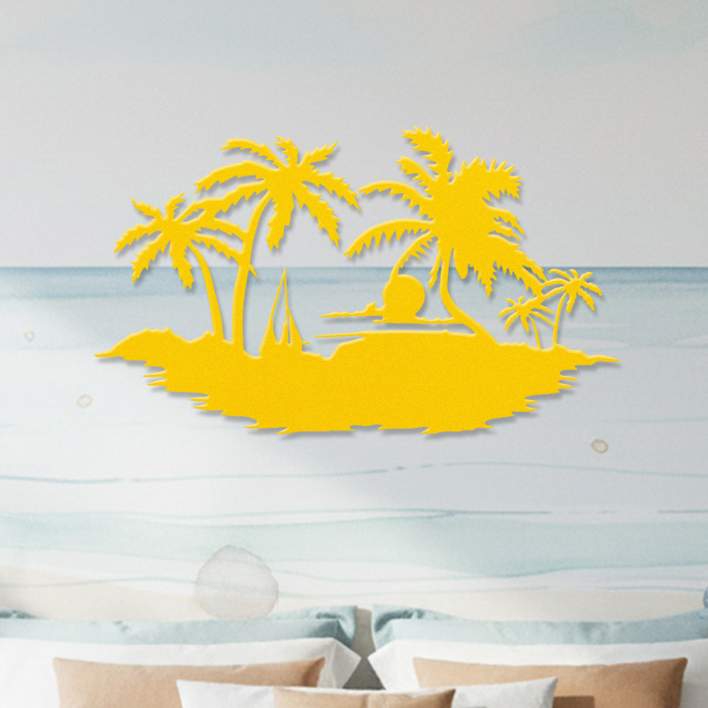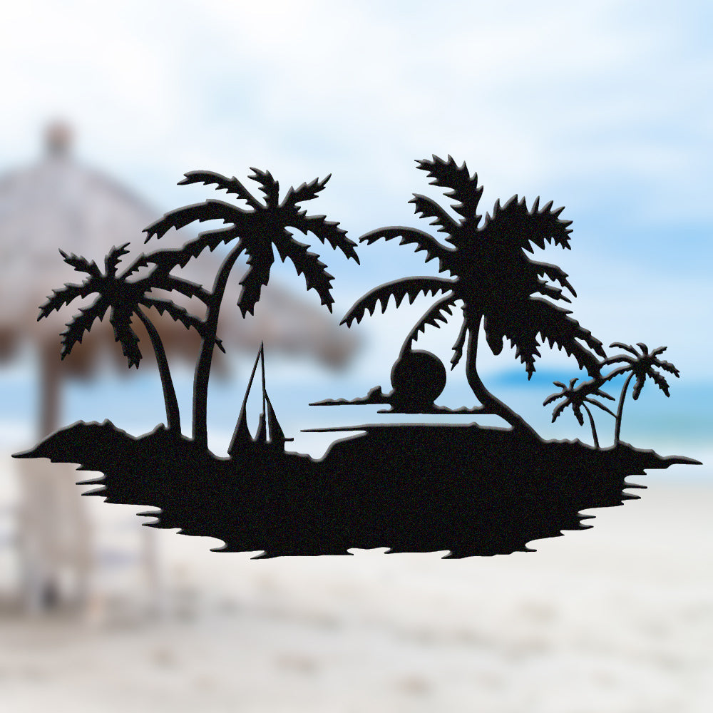 Tropical Island Sunset Metal Wall Art – Palm Tree Ocean Iron Metal Decor