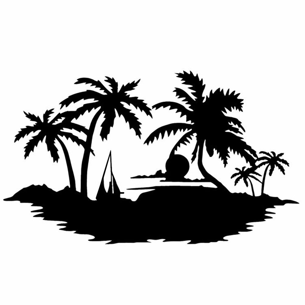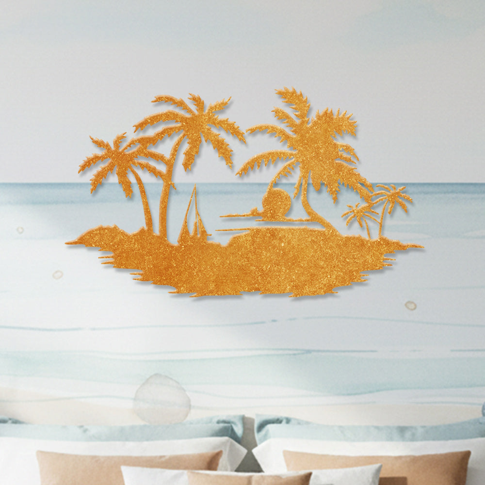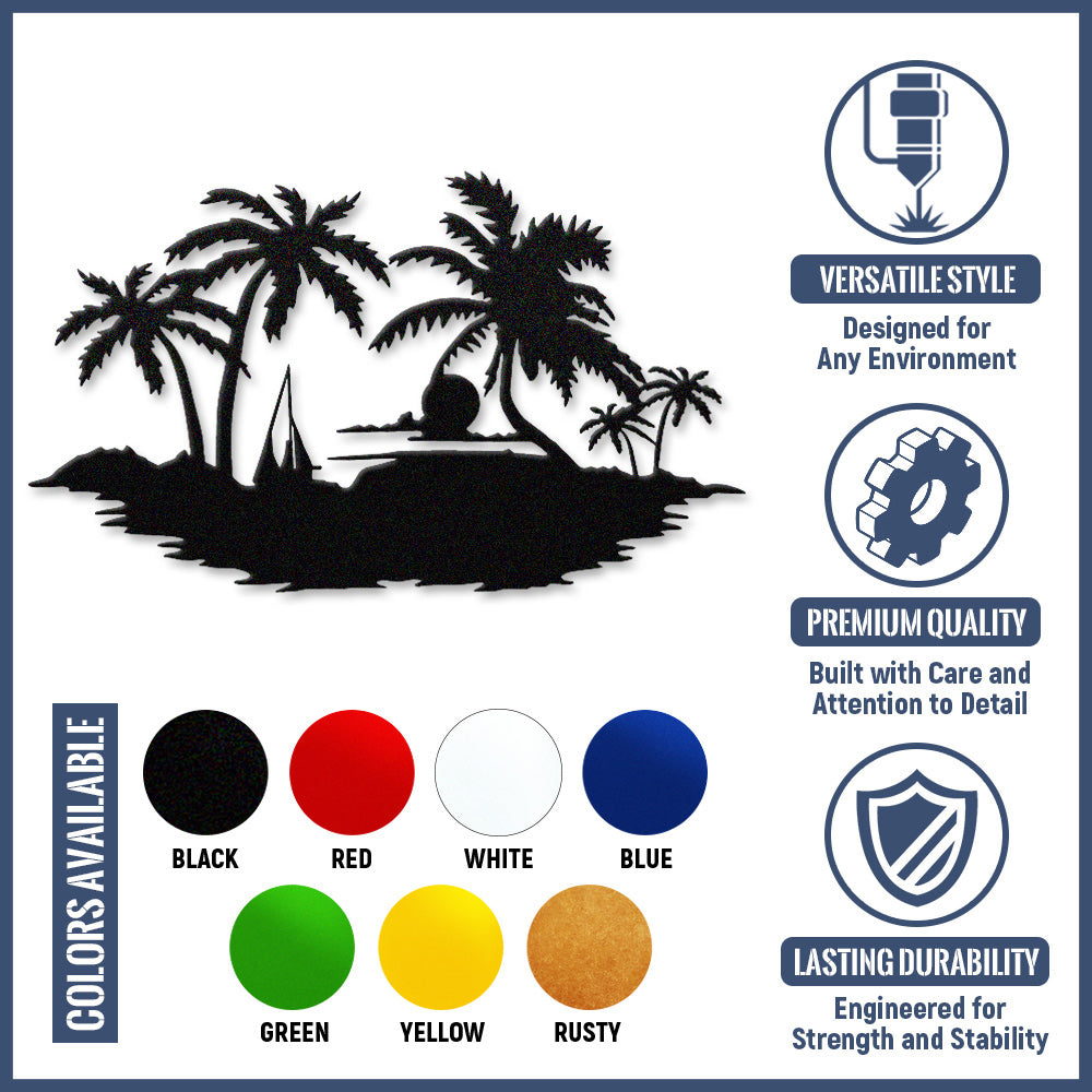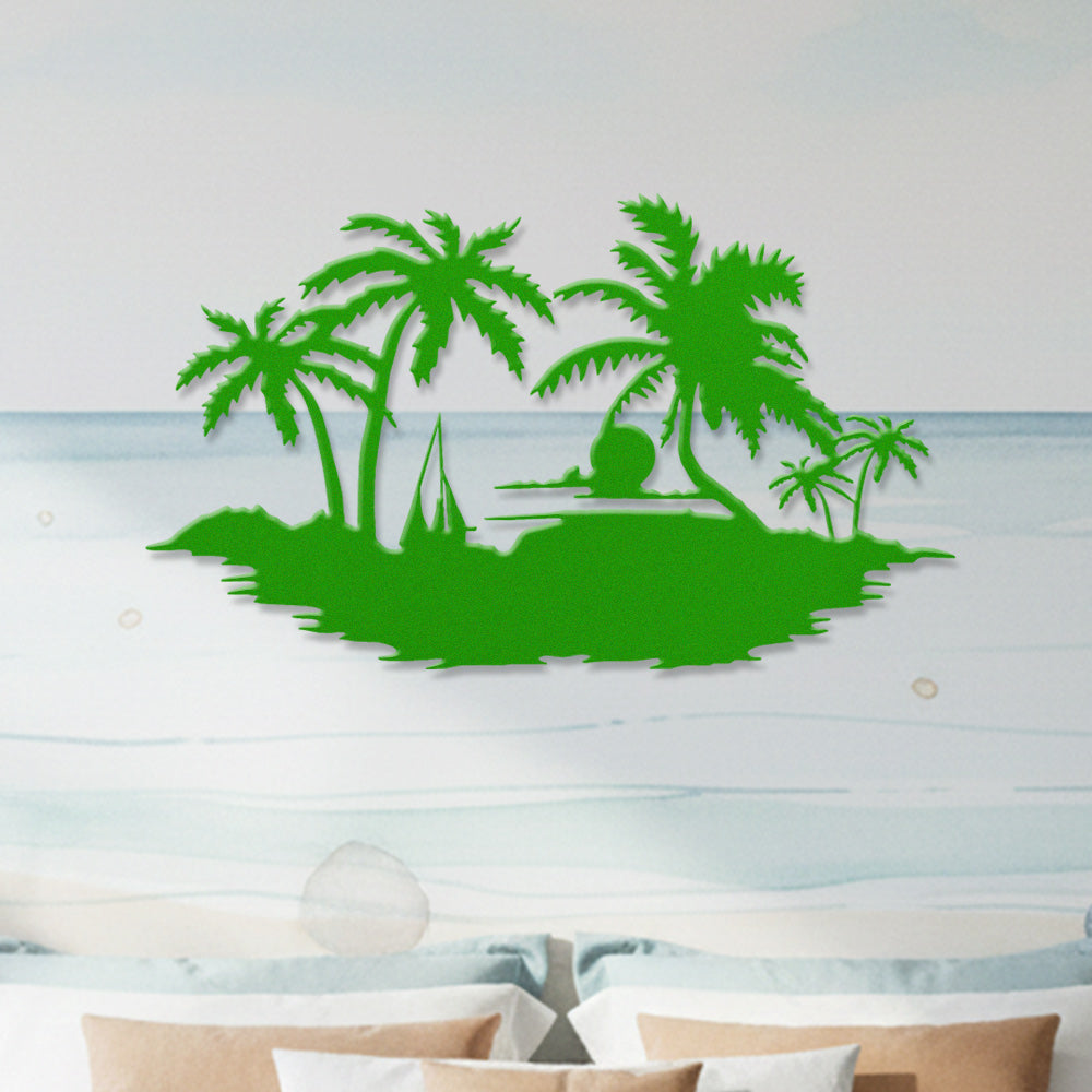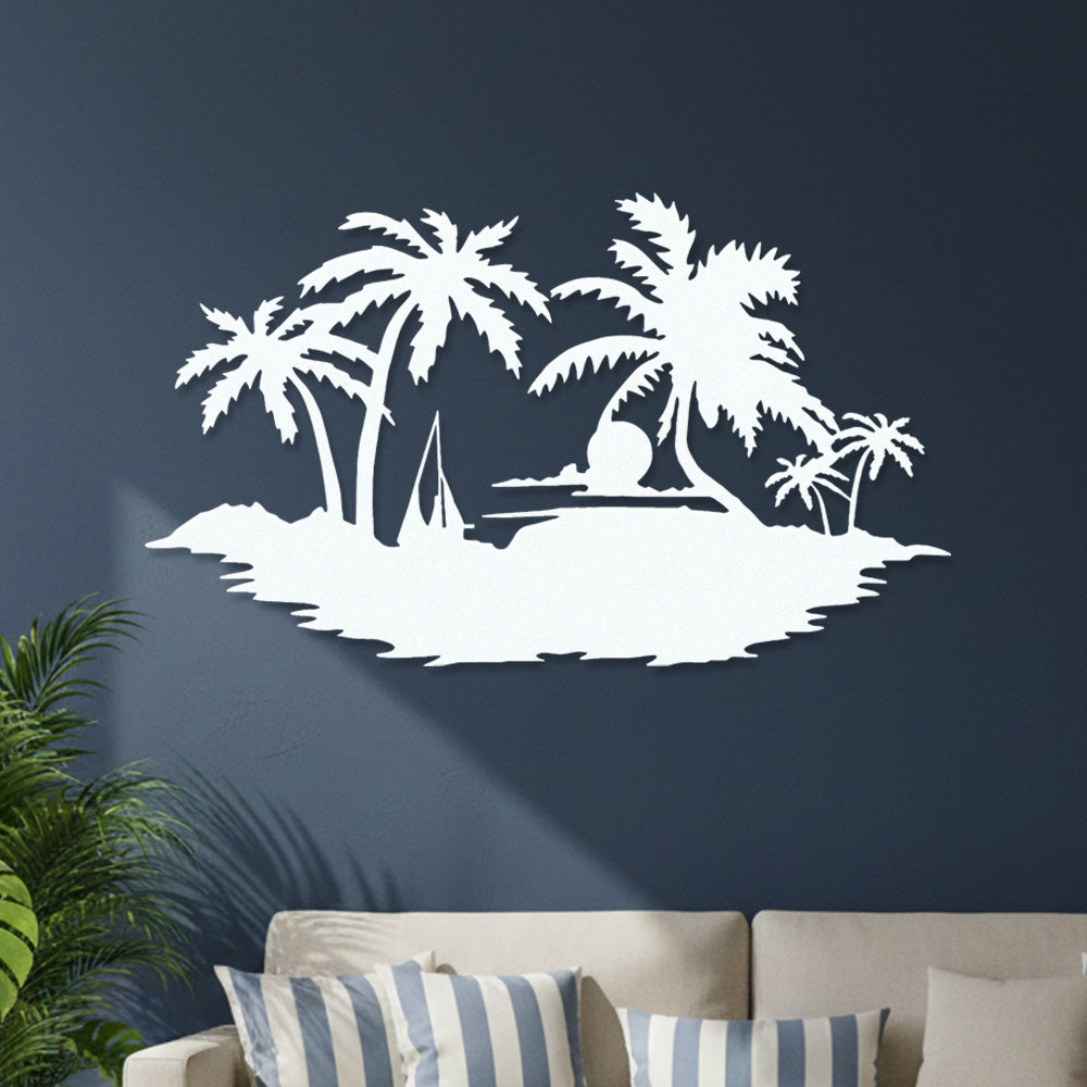 Tropical Island Sunset Metal Wall Art – Palm Tree Ocean Iron Metal Decor