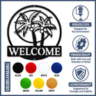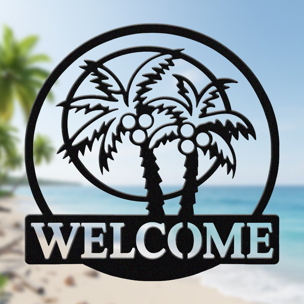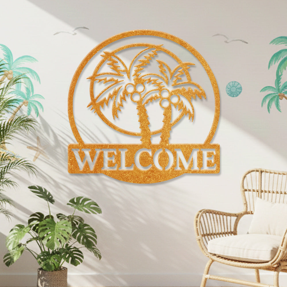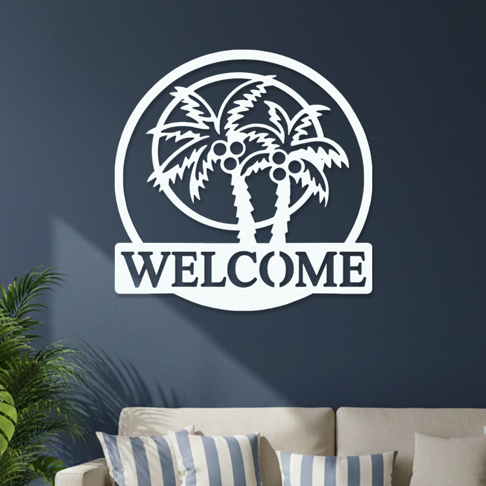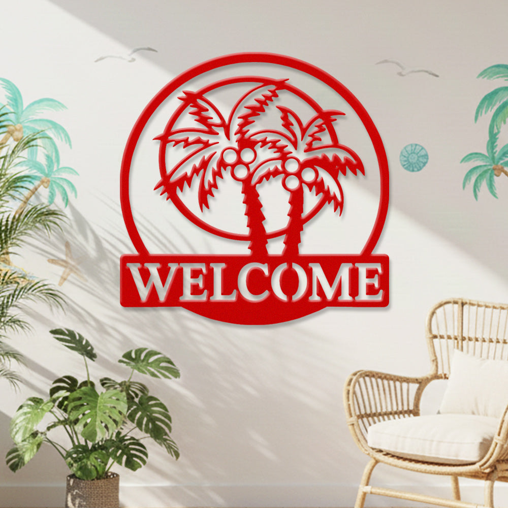 Tropical Palm Welcome Metal Wall Art – Round Coconut Tree Iron Metal Door Decor