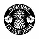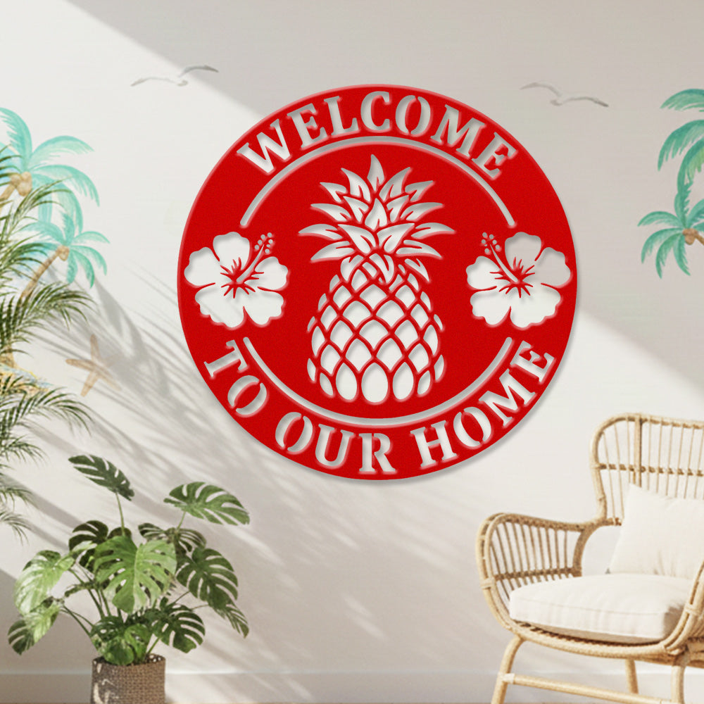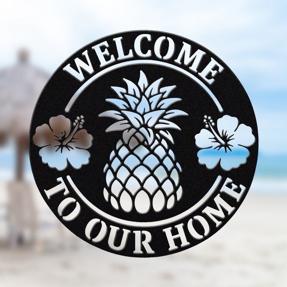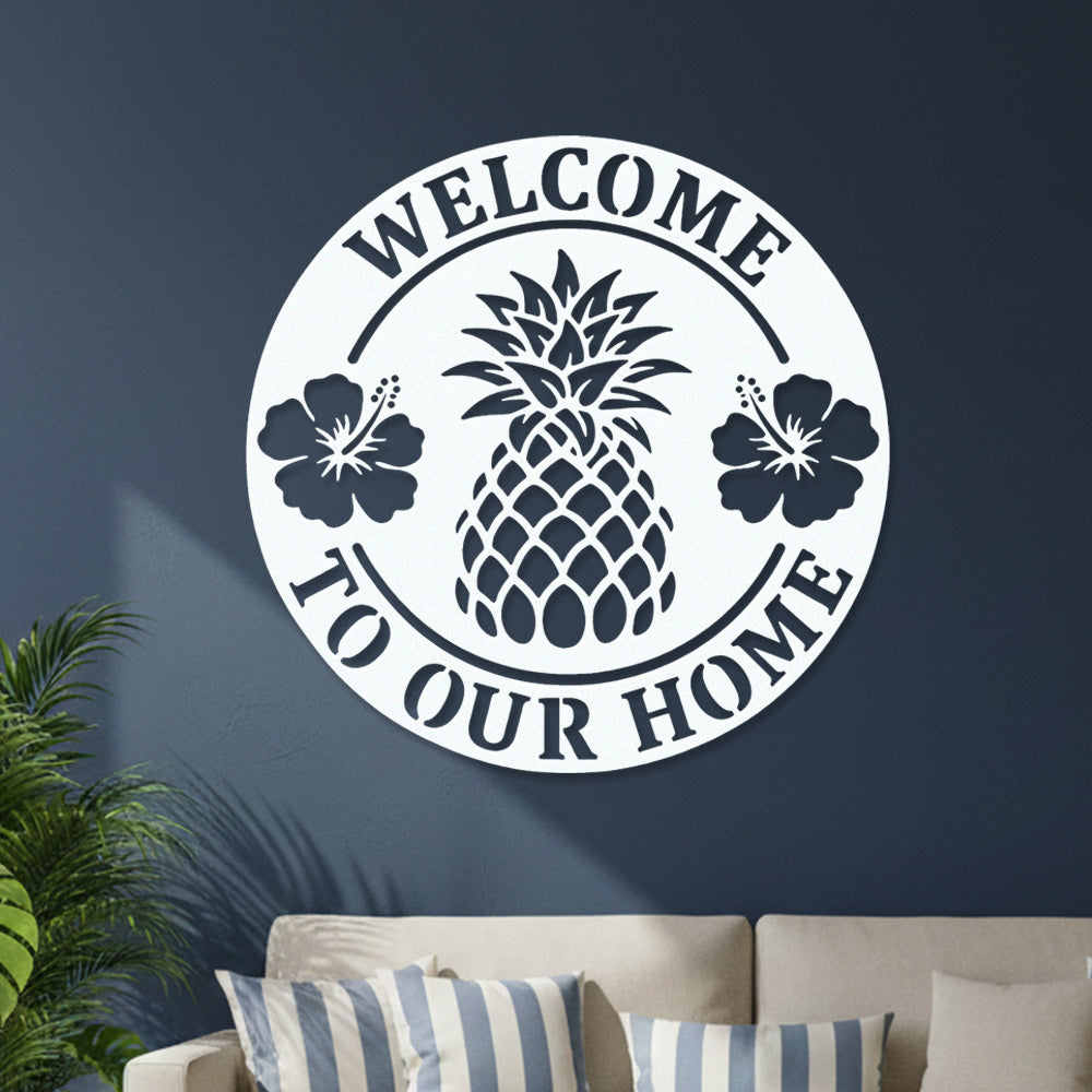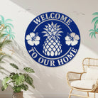 Tropical Pineapple Welcome Metal Wall Art – Round Iron Metal Home Door Sign