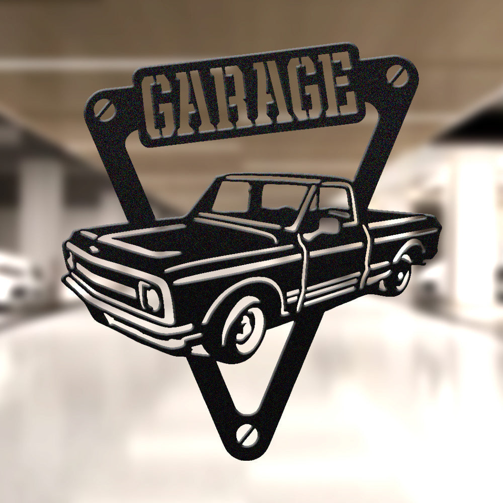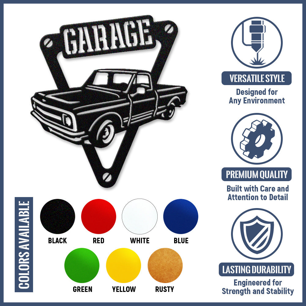 Vintage Garage Pickup Truck Metal Wall Art Sign
