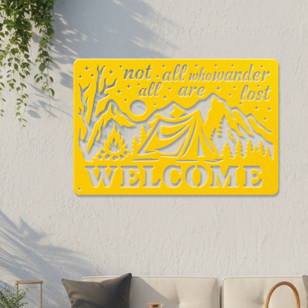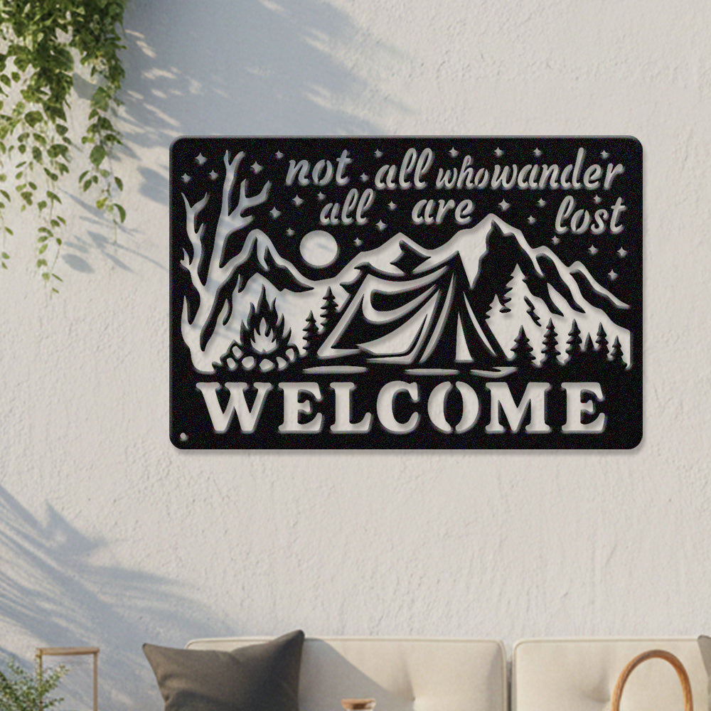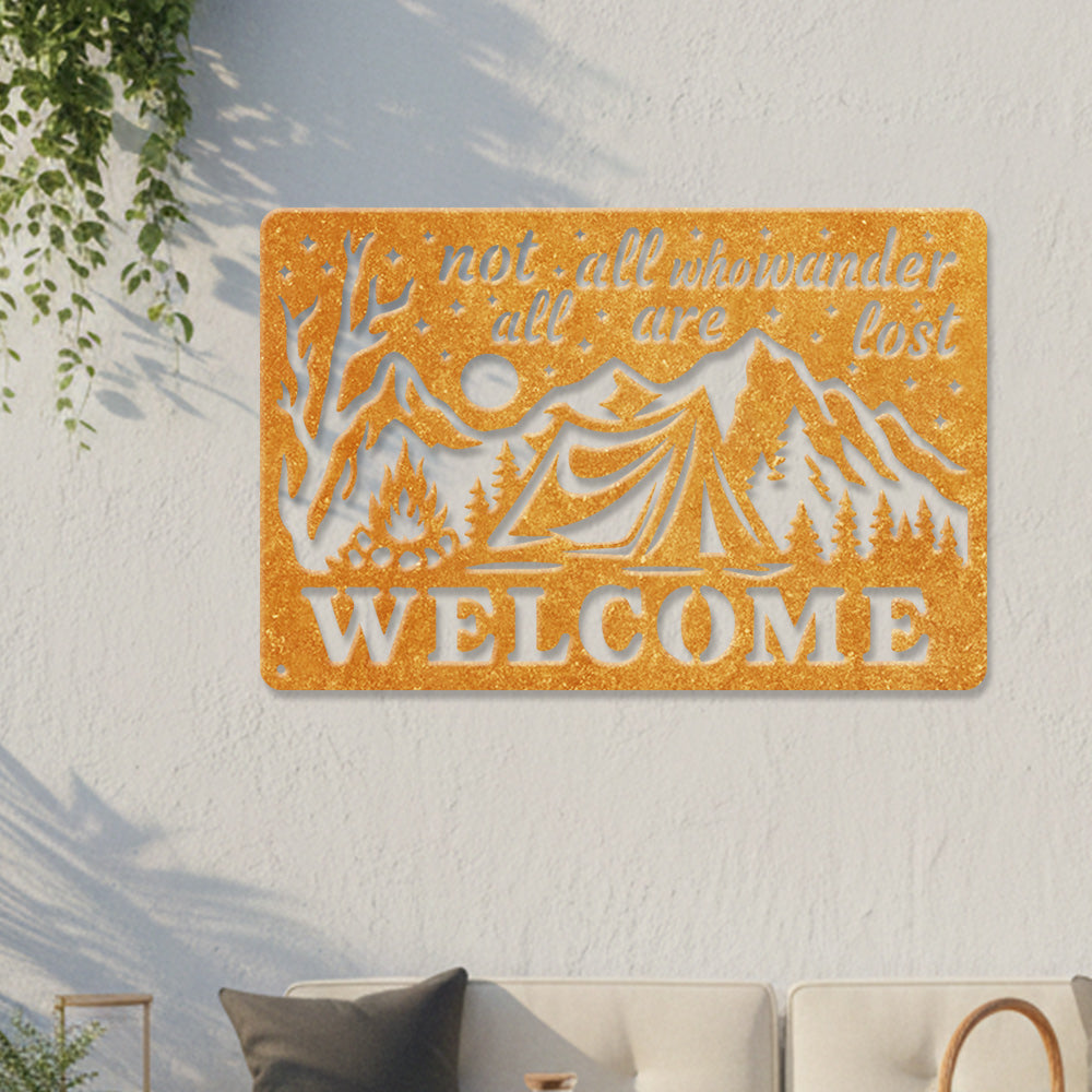 Wander Camping Welcome Metal Wall Art – Rustic Mountain Outdoor Decor Sign