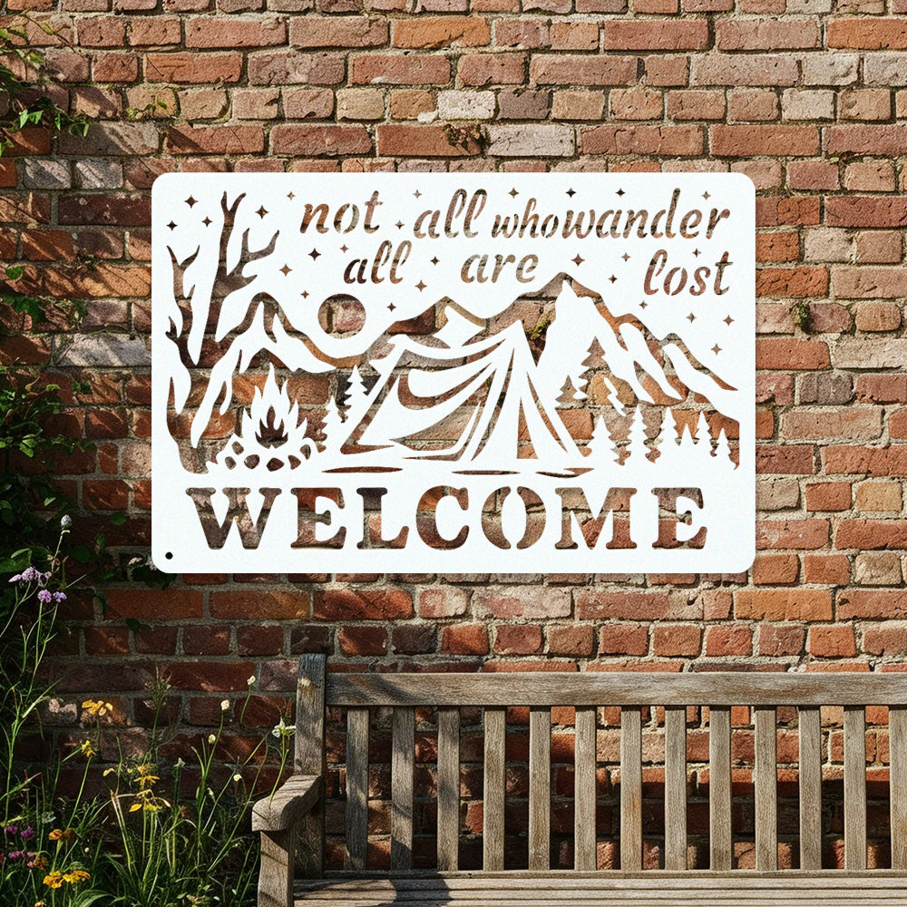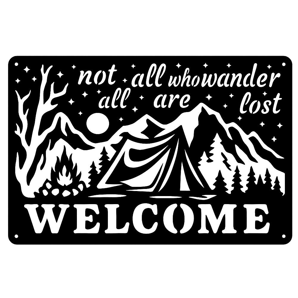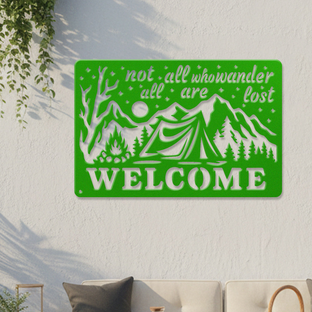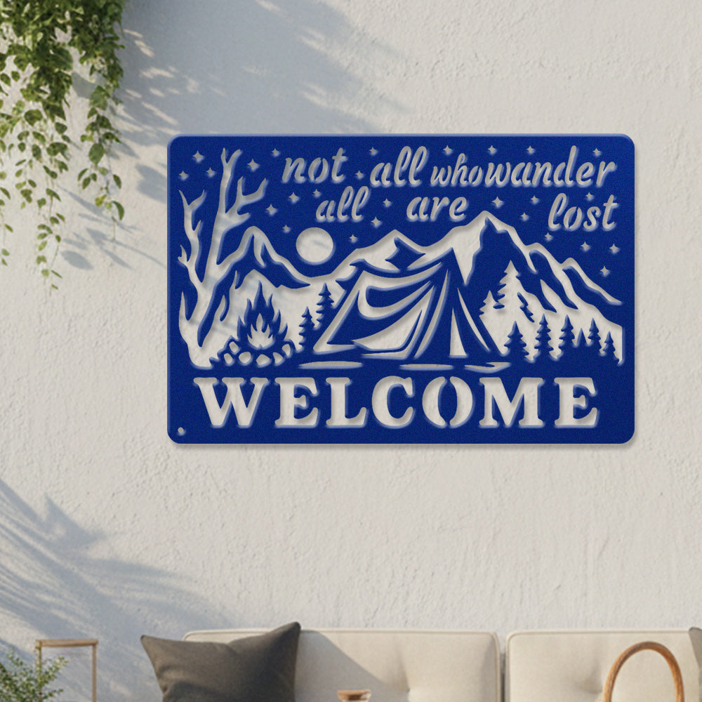 Wander Camping Welcome Metal Wall Art – Rustic Mountain Outdoor Decor Sign