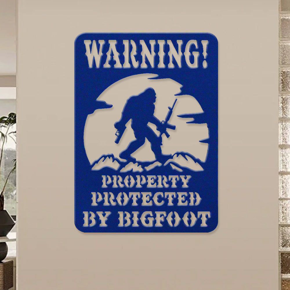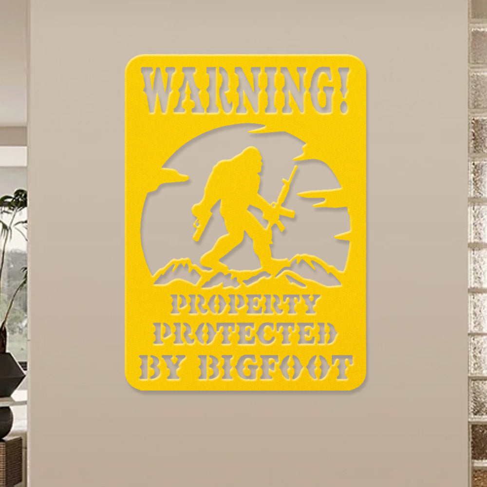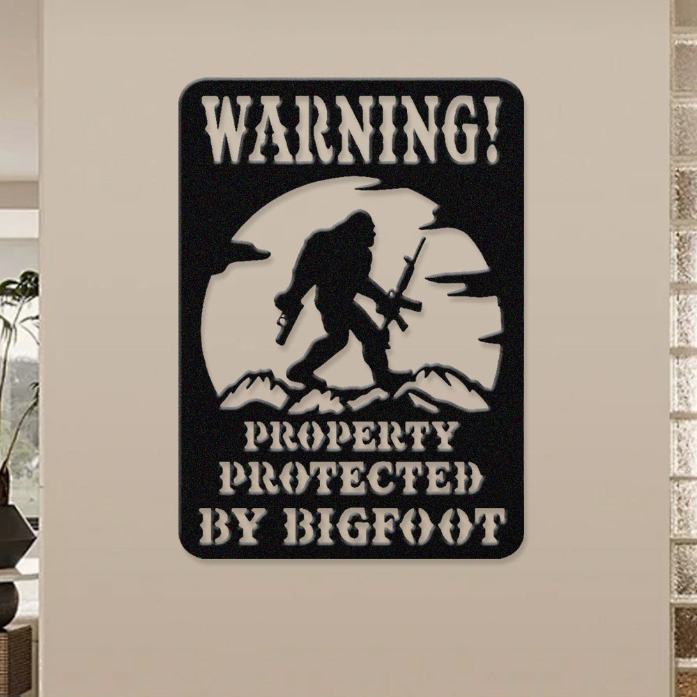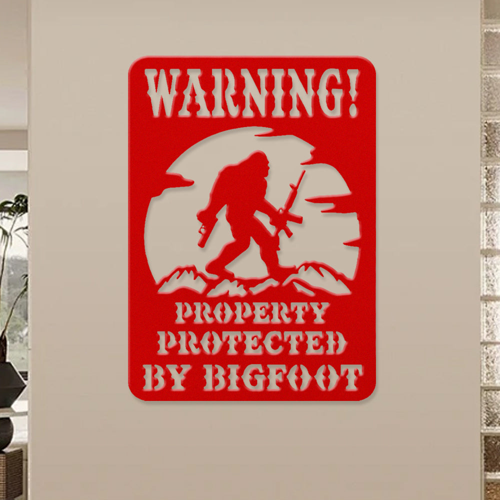 Warning Property Protected by Bigfoot Metal Wall Art Sign – Outdoor Funny Decor
