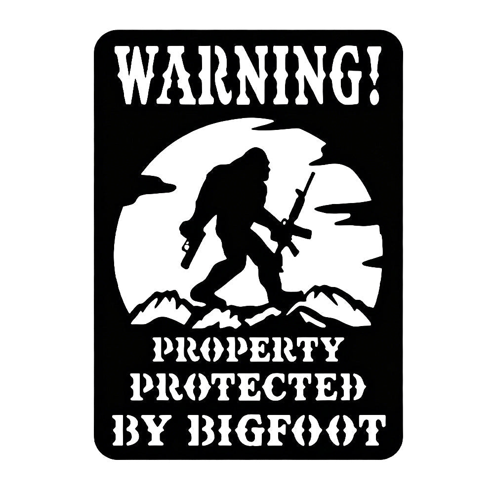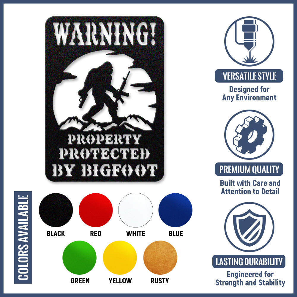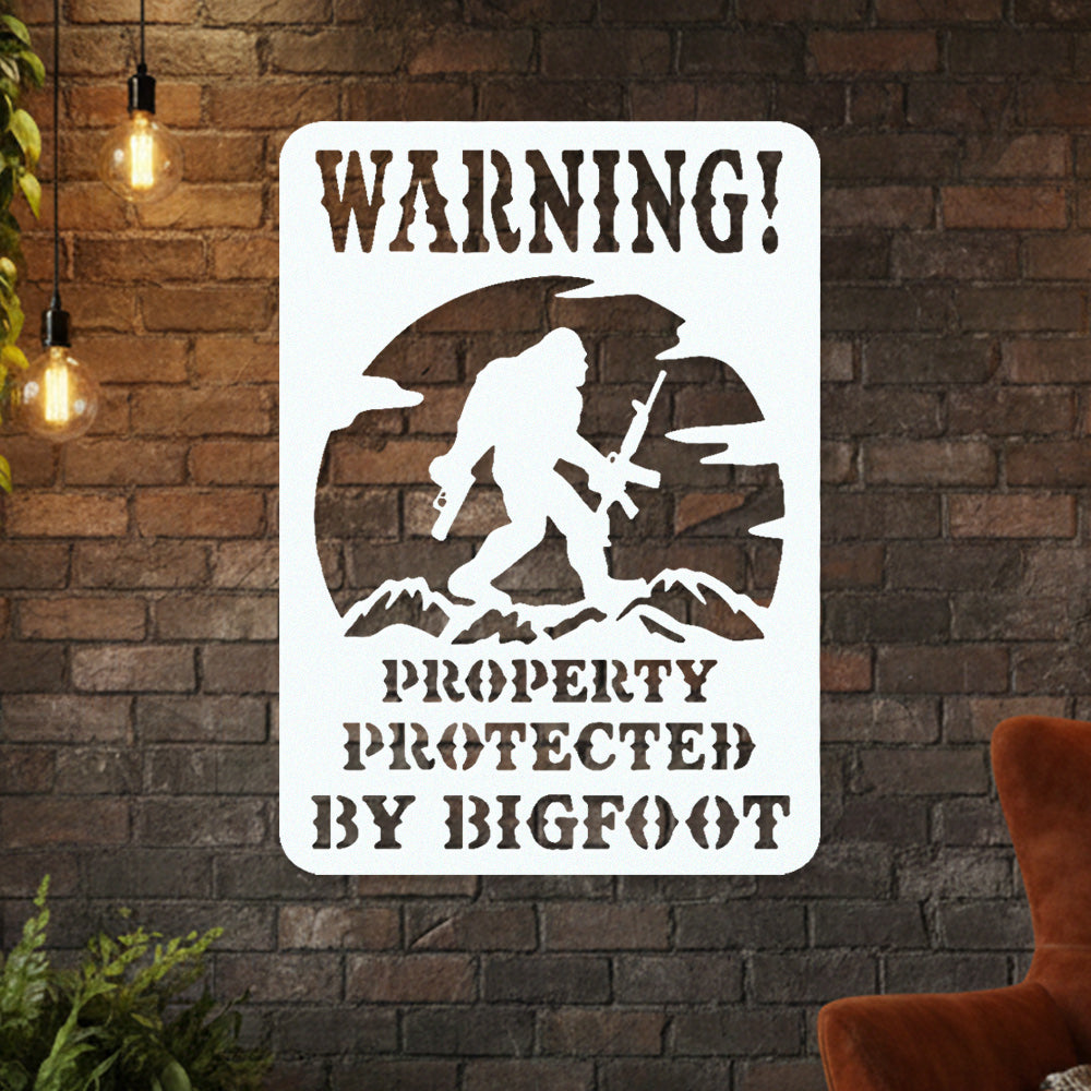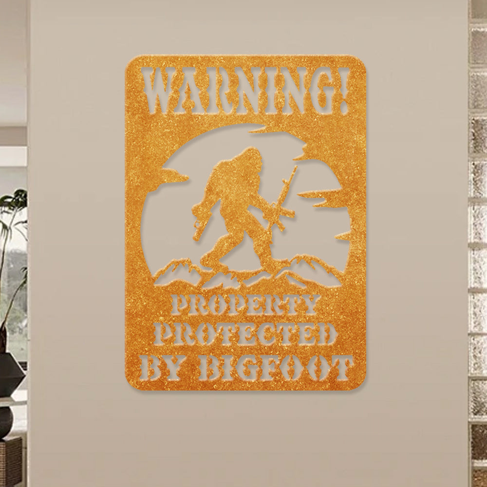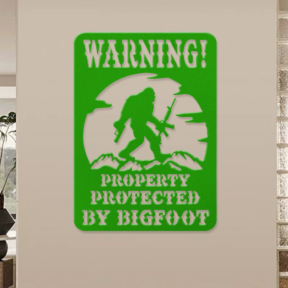 Warning Property Protected by Bigfoot Metal Wall Art Sign – Outdoor Funny Decor