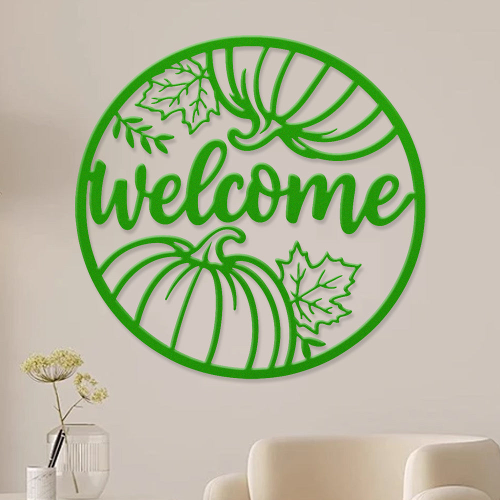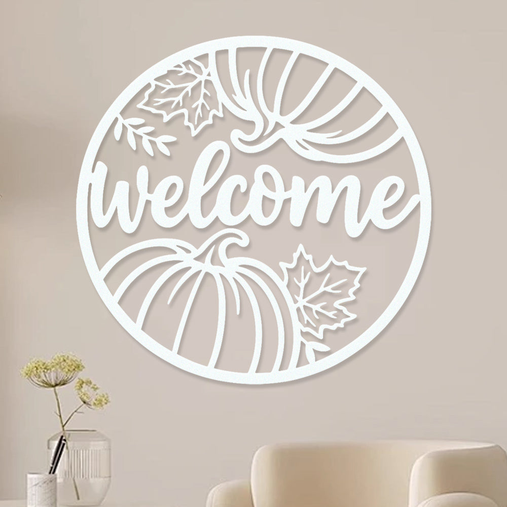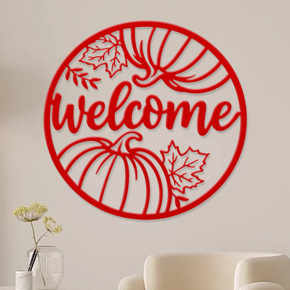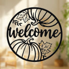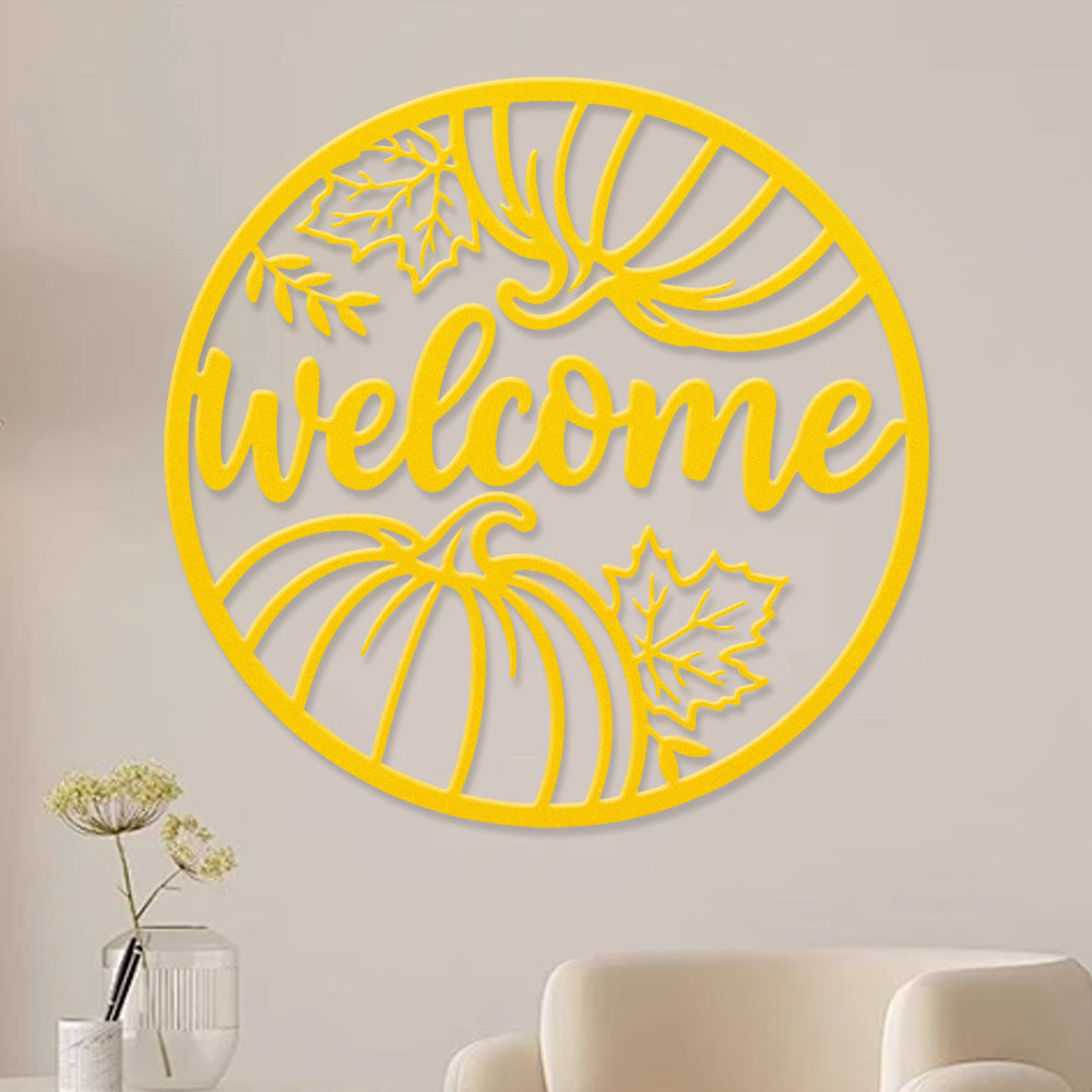 Welcome Pumpkin and Leaves Metal Wall Art - Autumn Iron Decor for Fall