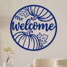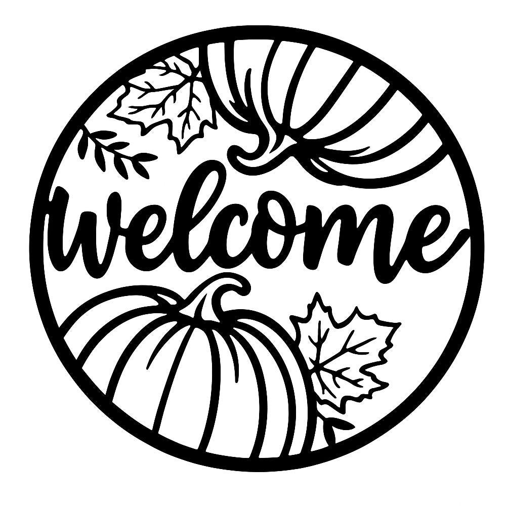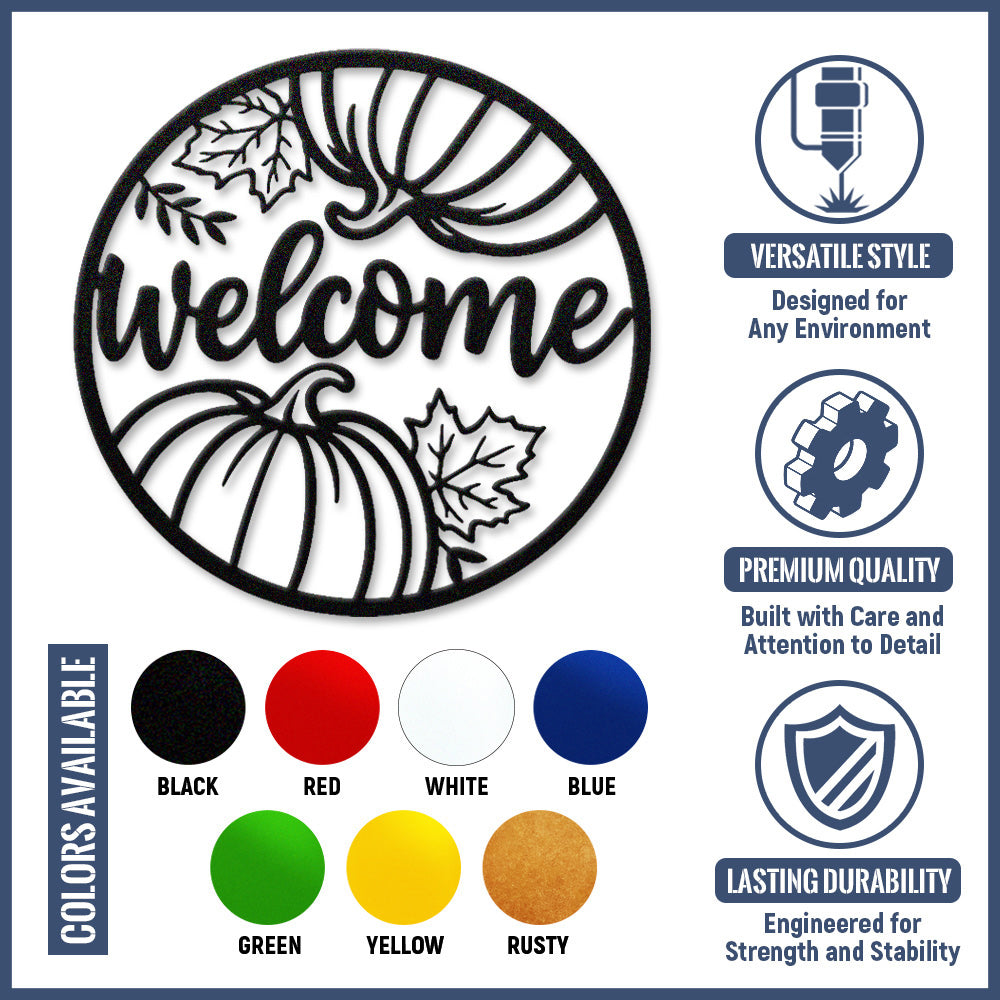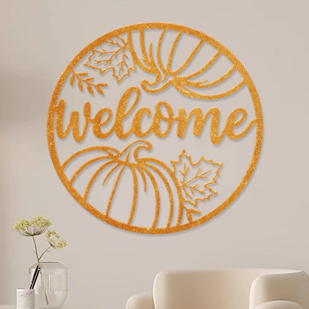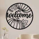 Welcome Pumpkin and Leaves Metal Wall Art - Autumn Iron Decor for Fall