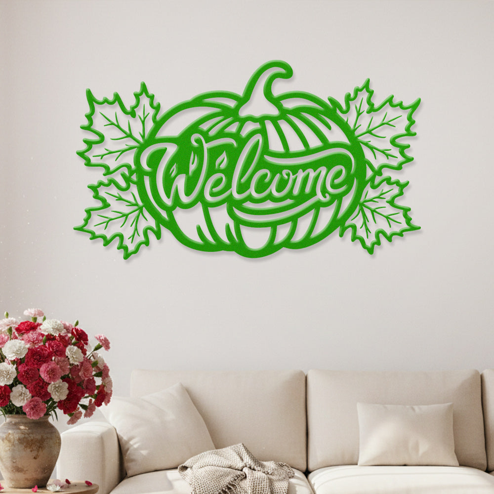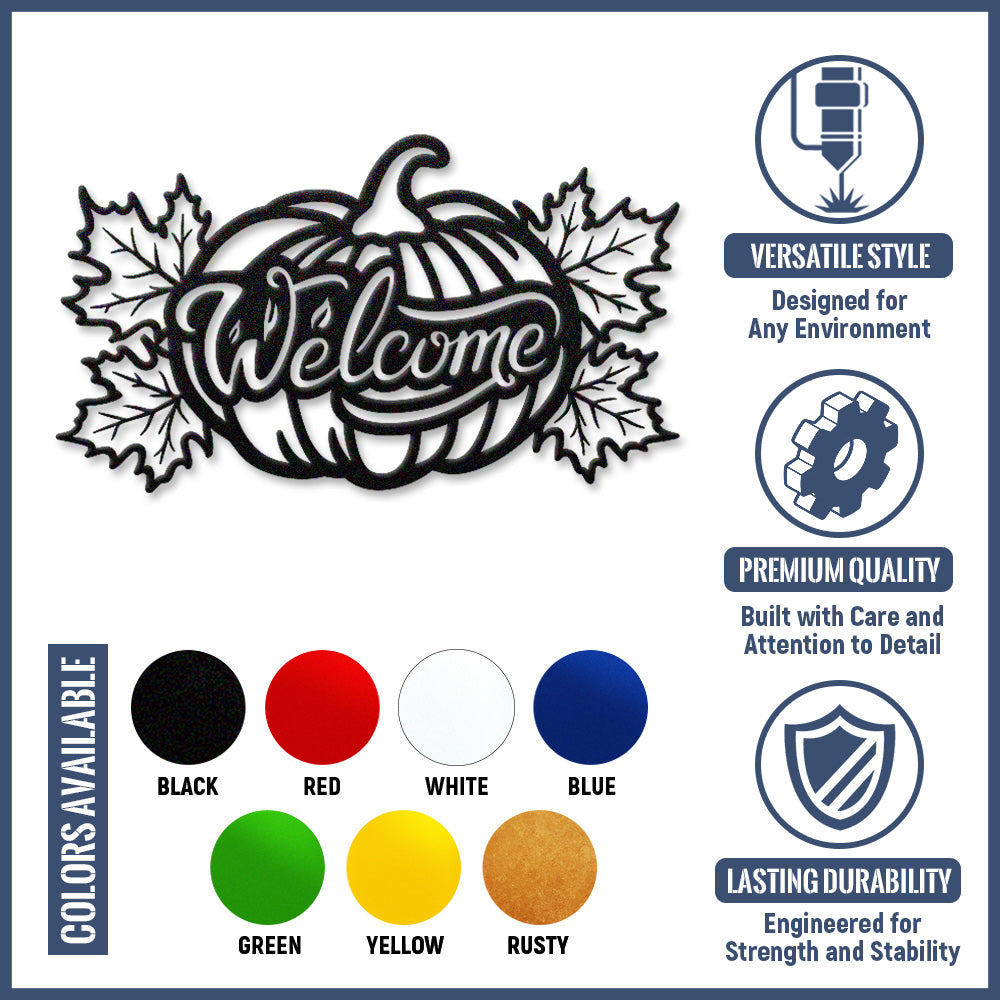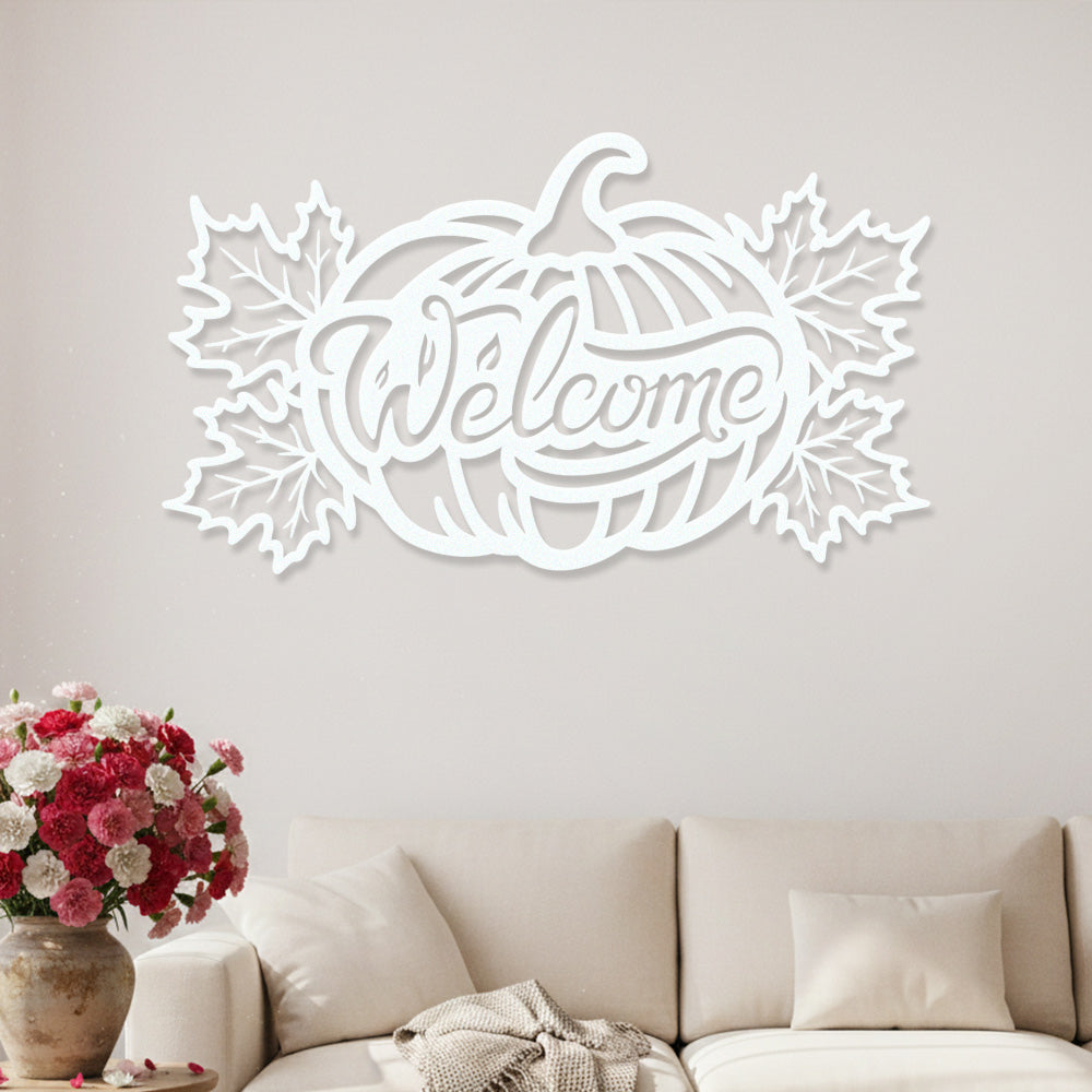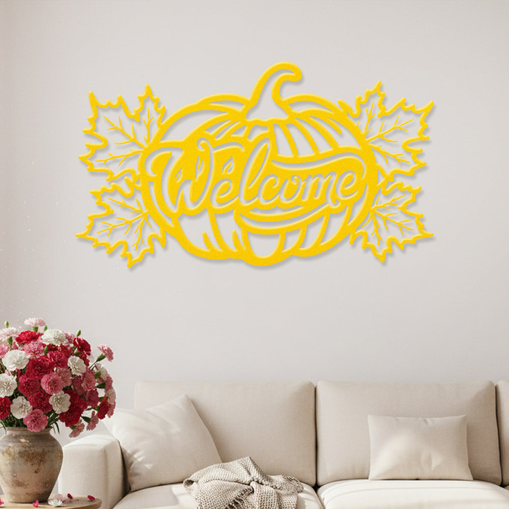 Welcome Pumpkin Metal Wall Art - Fall Iron Decor with Metal Welcome Sign
