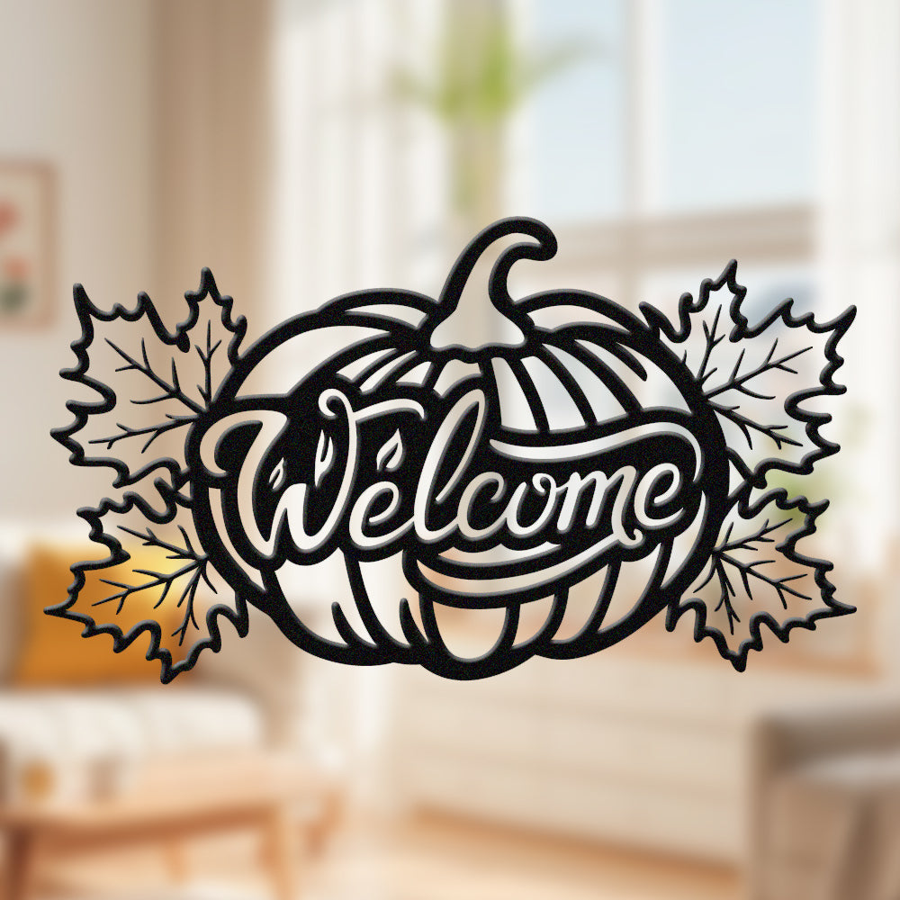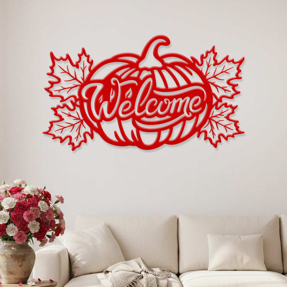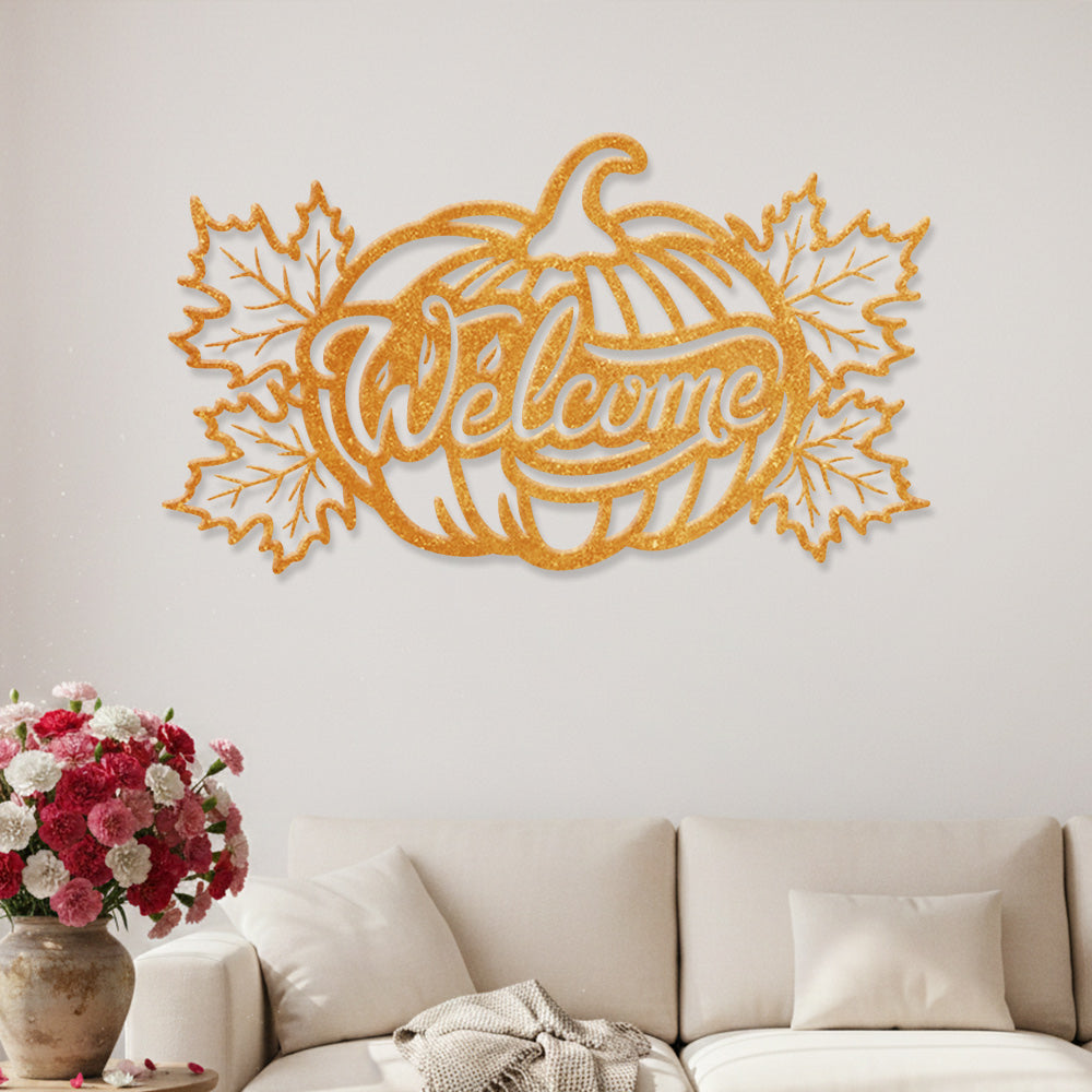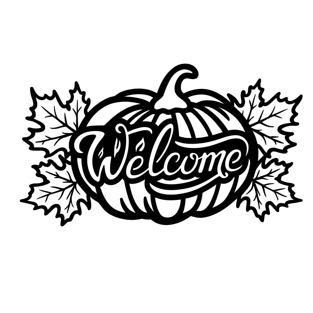 Welcome Pumpkin Metal Wall Art - Fall Iron Decor with Metal Welcome Sign