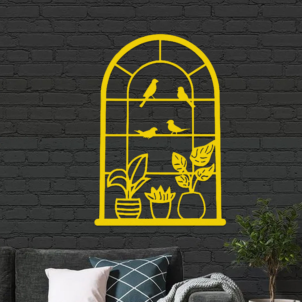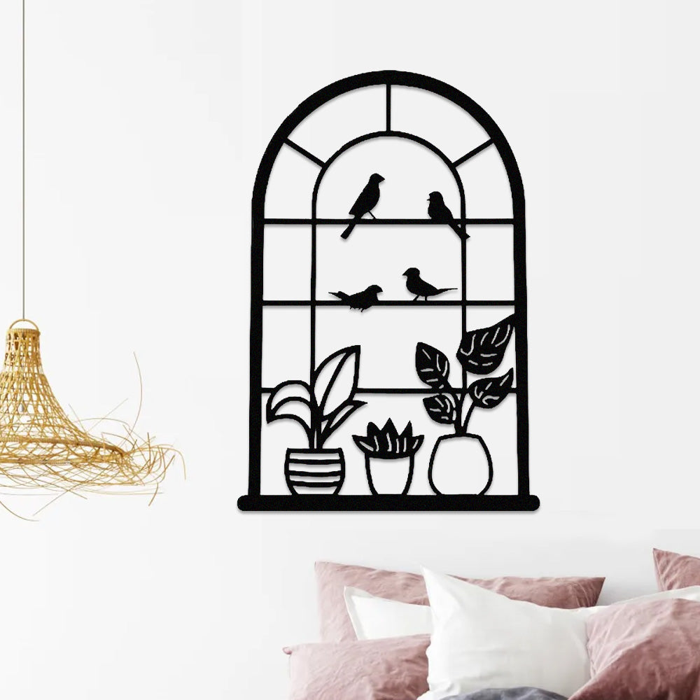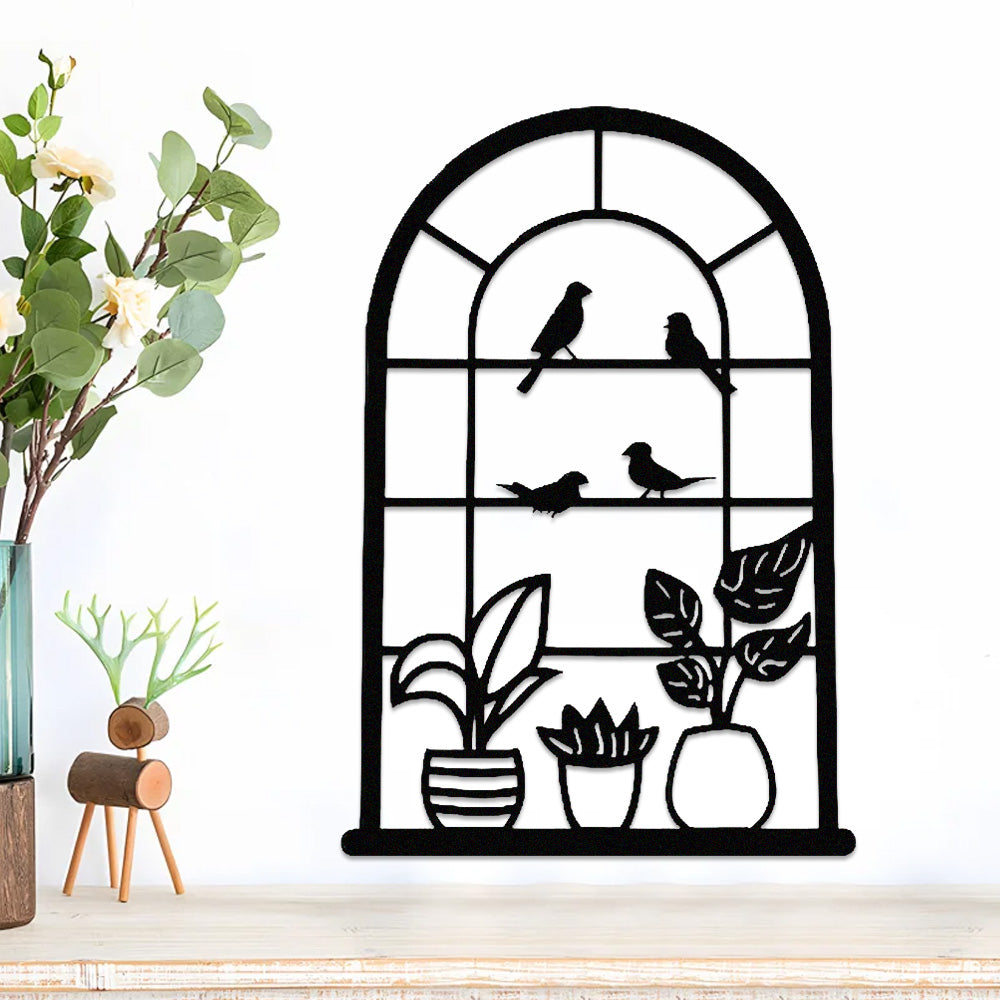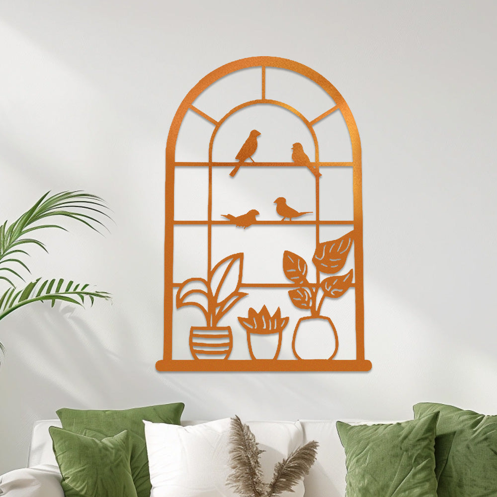Window Bird and Plant Metal Wall Art