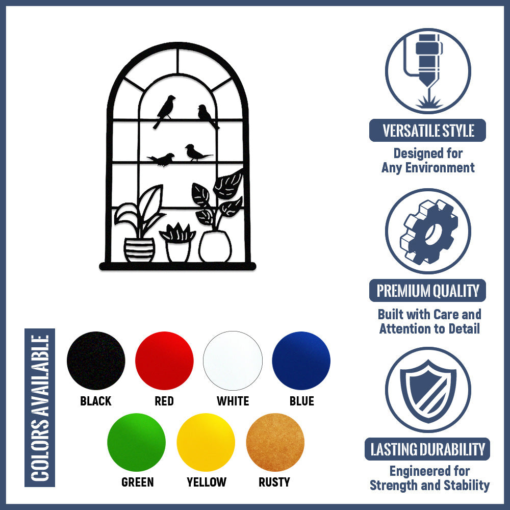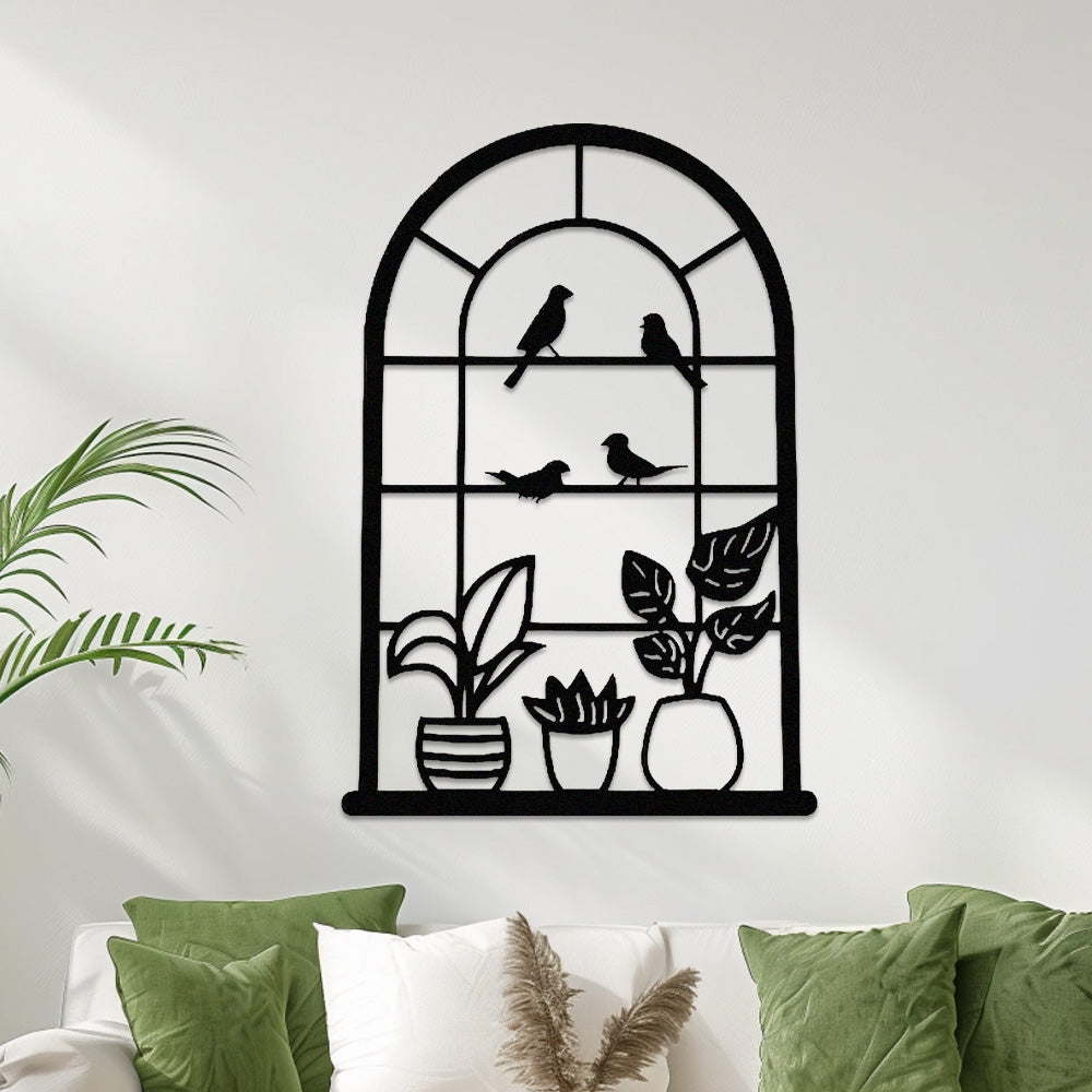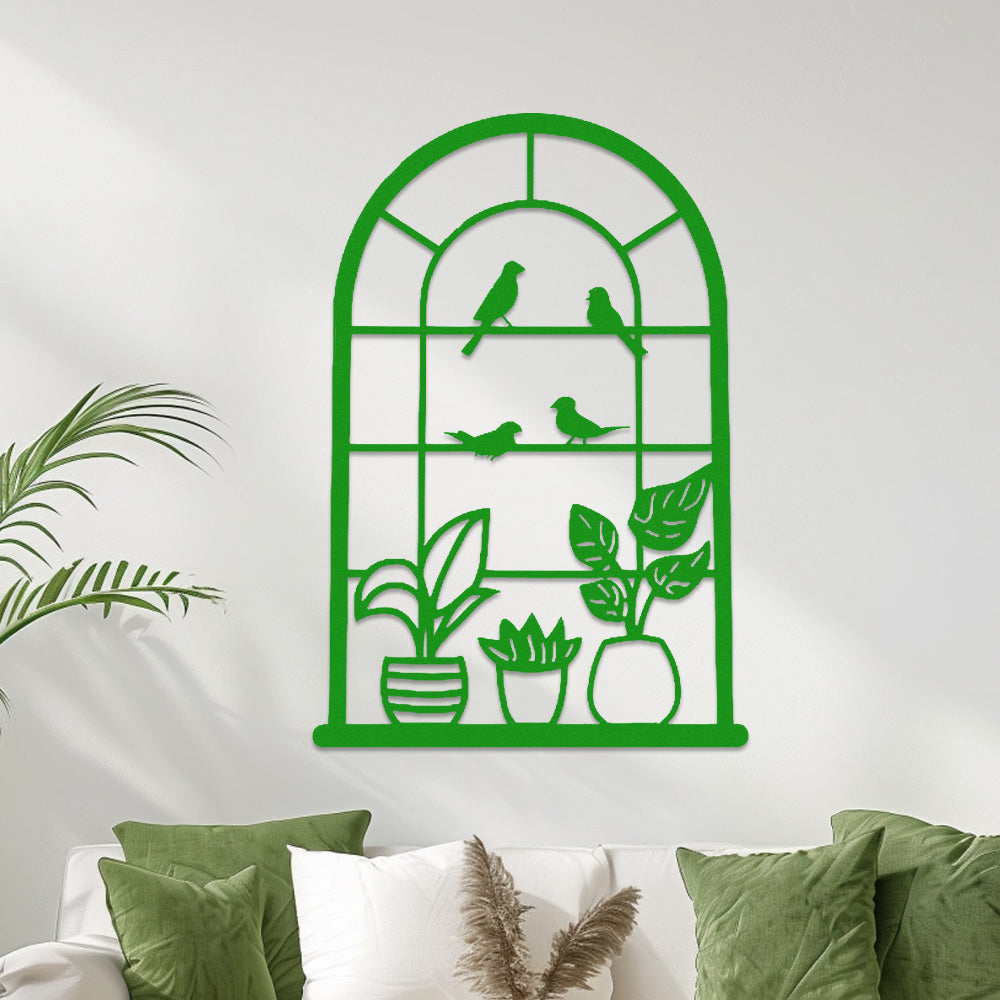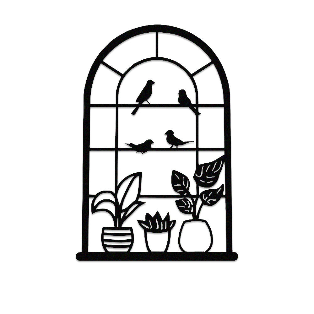 Window Bird and Plant Metal Wall Art