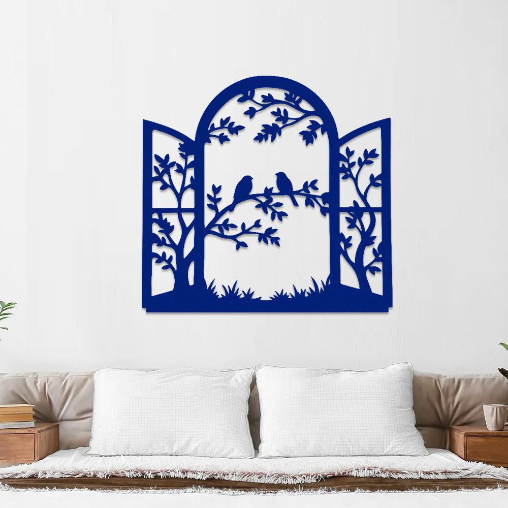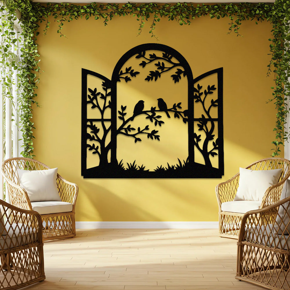 Window Bird and Tree Metal Wall Art