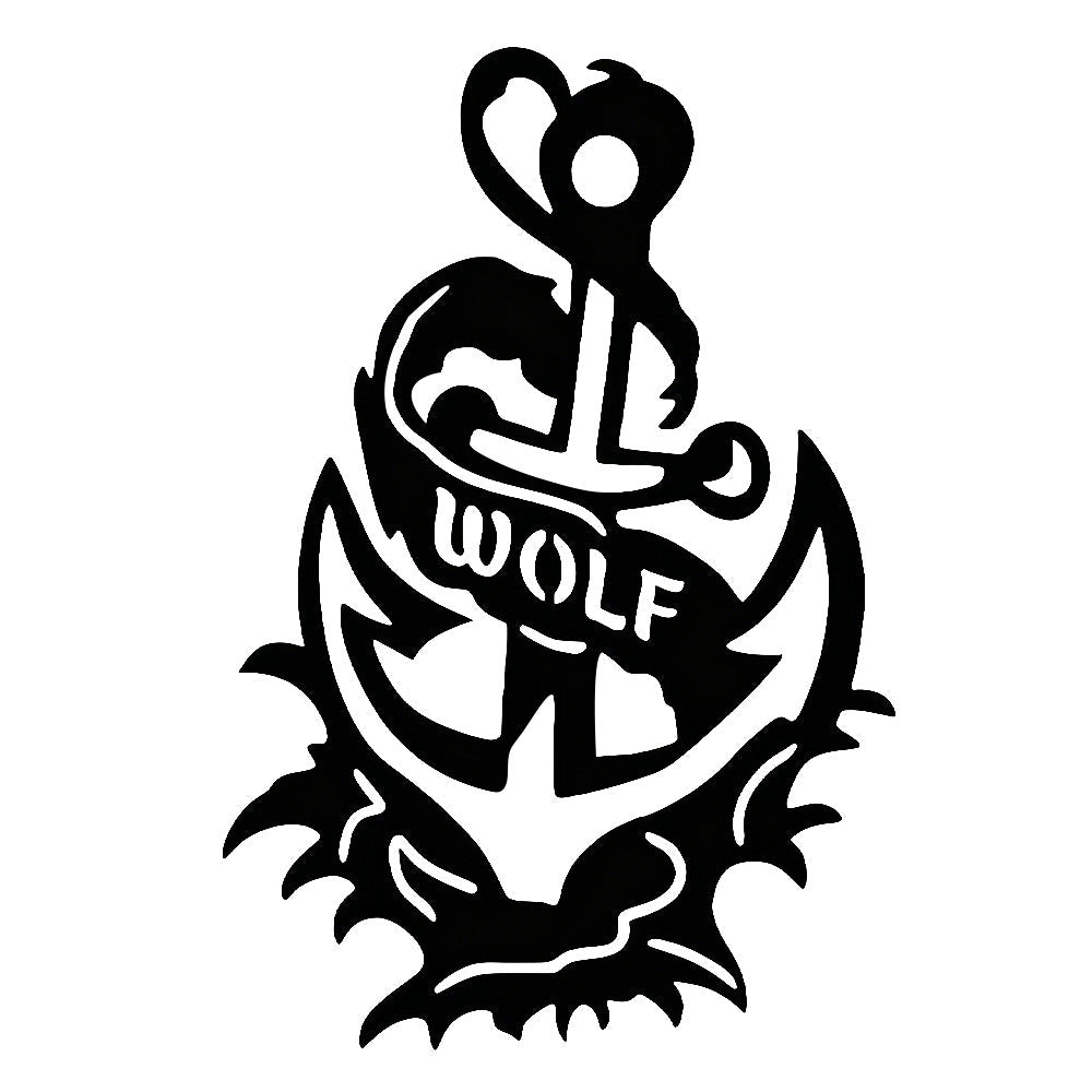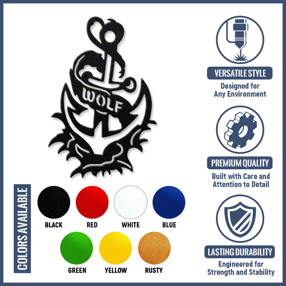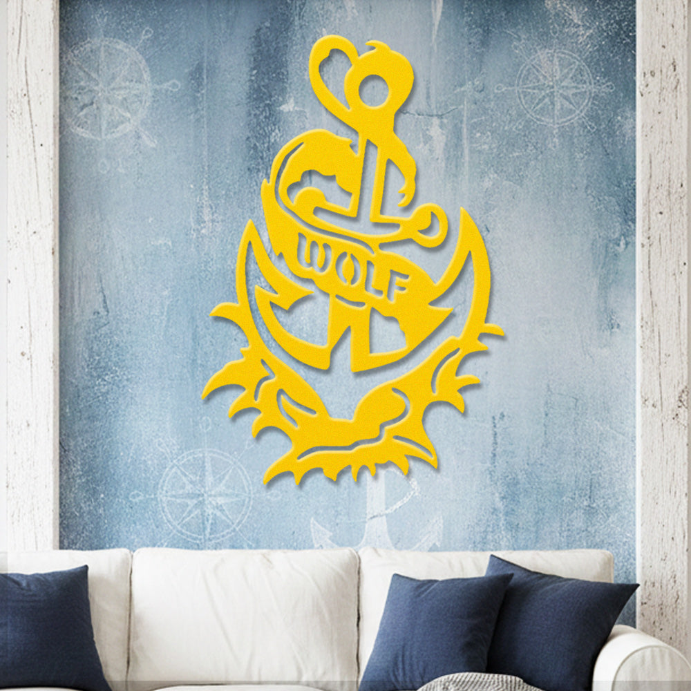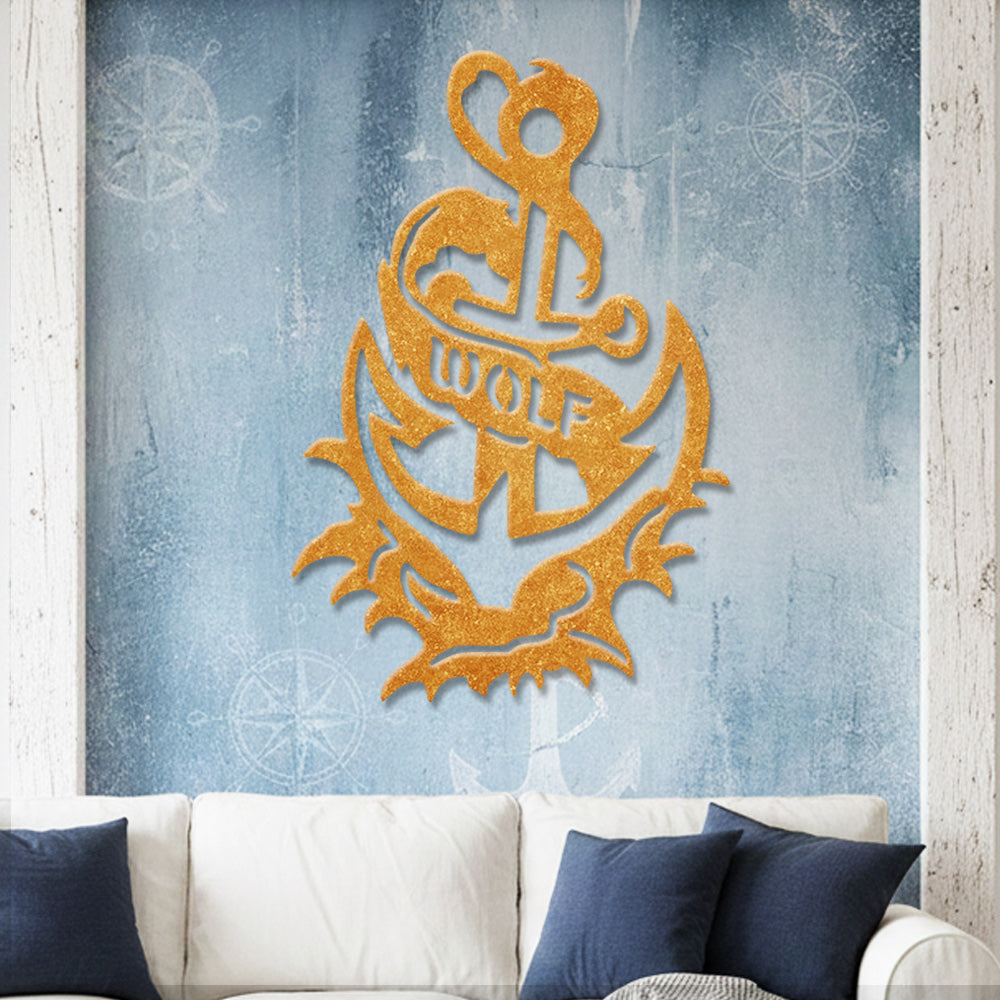 Wolf Metal Anchor Wall Art - Iron Sign with Rope and Flame Accents