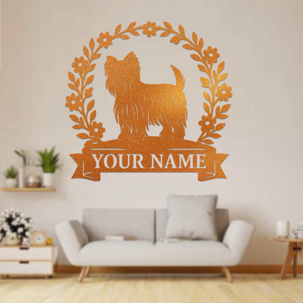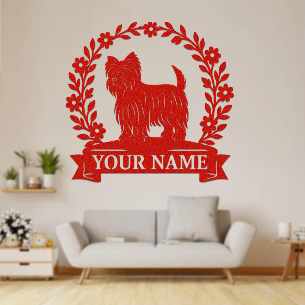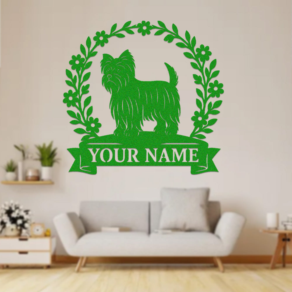 Yorkshire Terrier Wreath Metal Wall Art Dog Lover Personalized Memorial Metal Sign