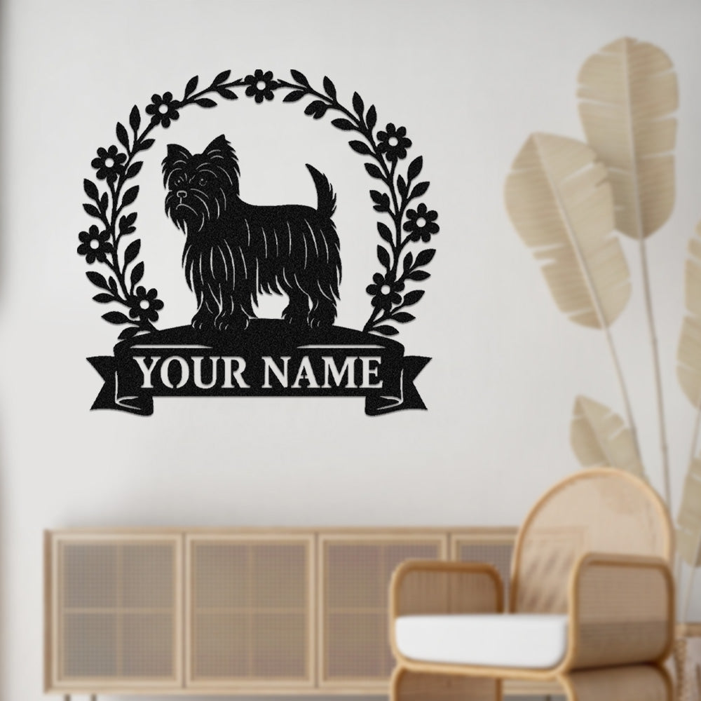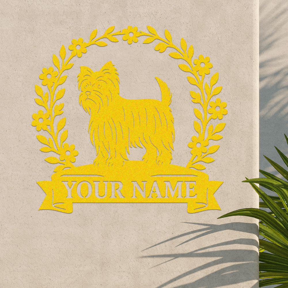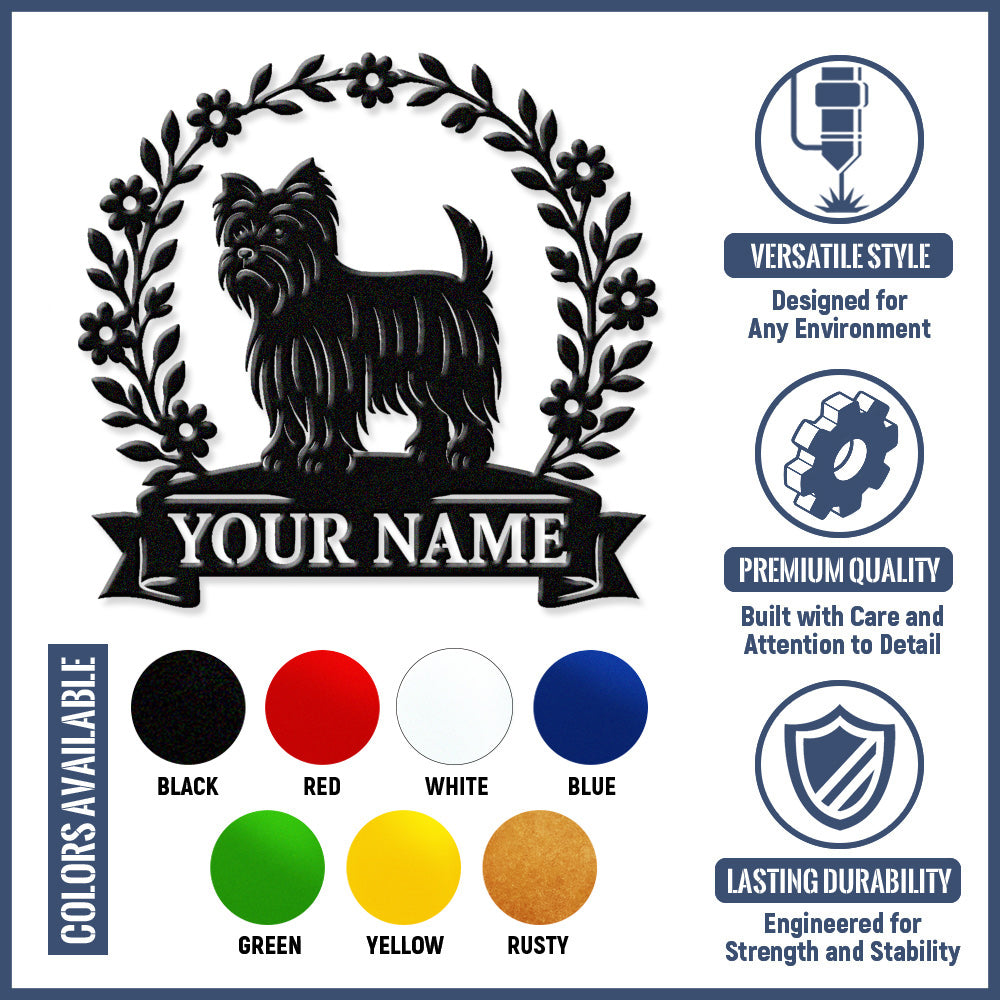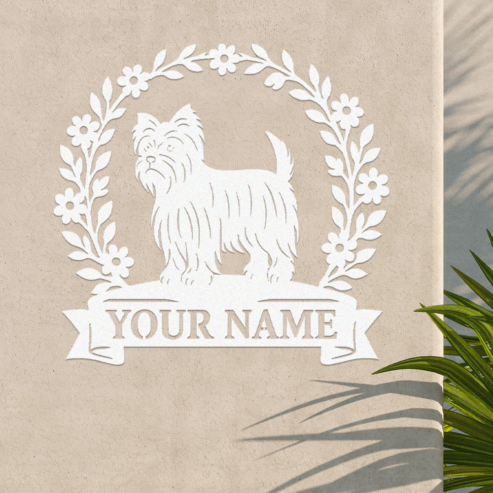 Yorkshire Terrier Wreath Metal Wall Art Dog Lover Personalized Memorial Metal Sign